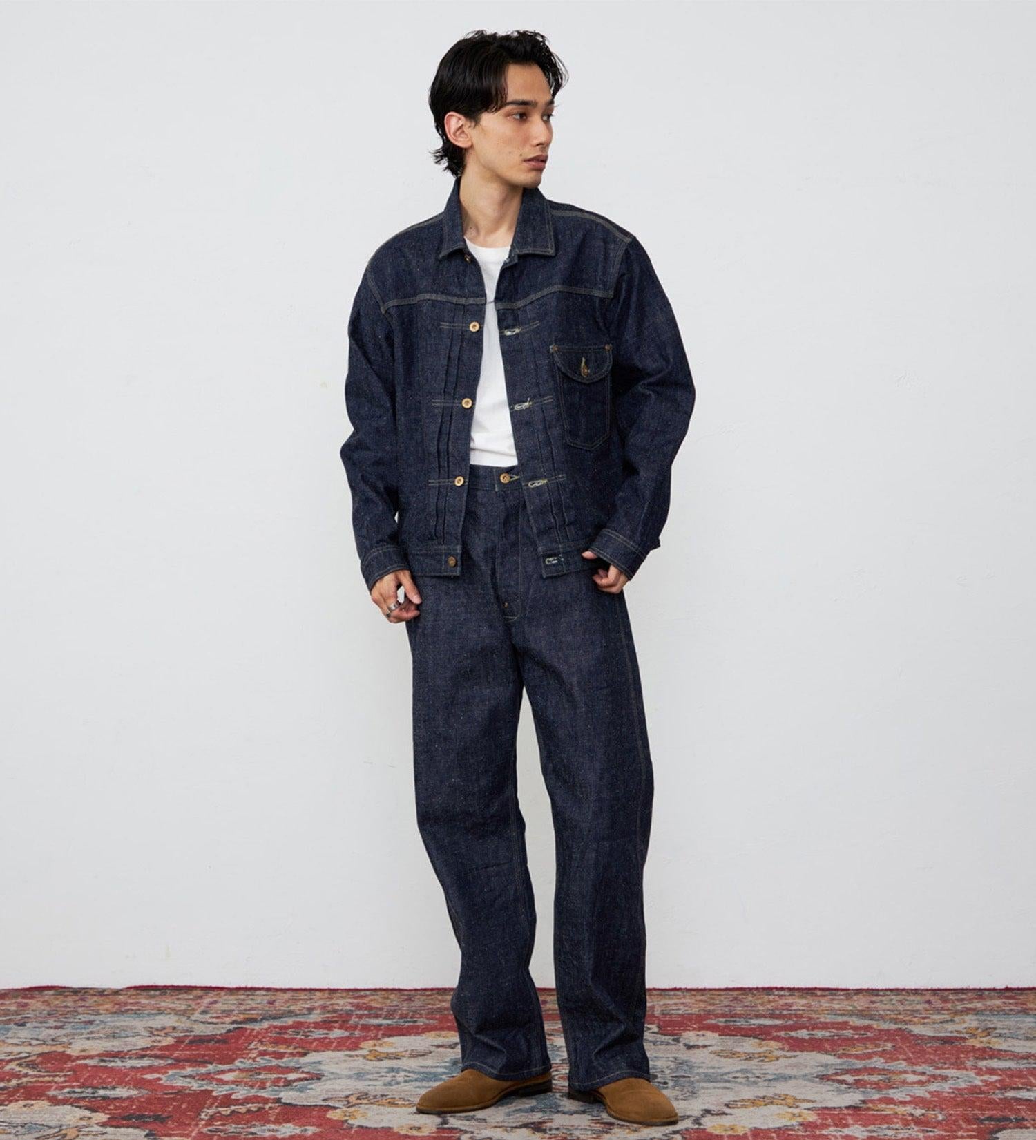 面料採用 13 盎司右斜紋牛仔布,具有綿羊皮的手感。