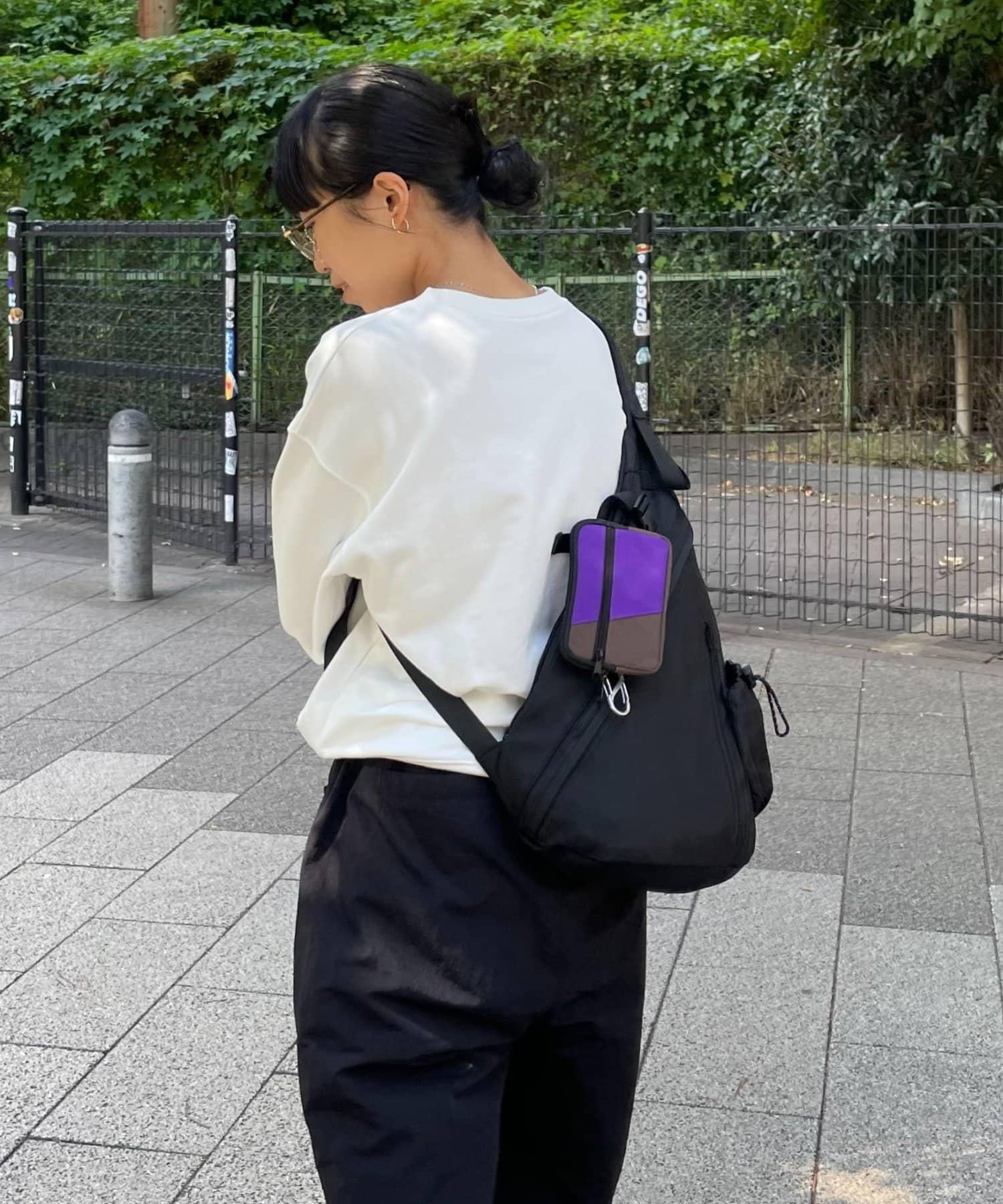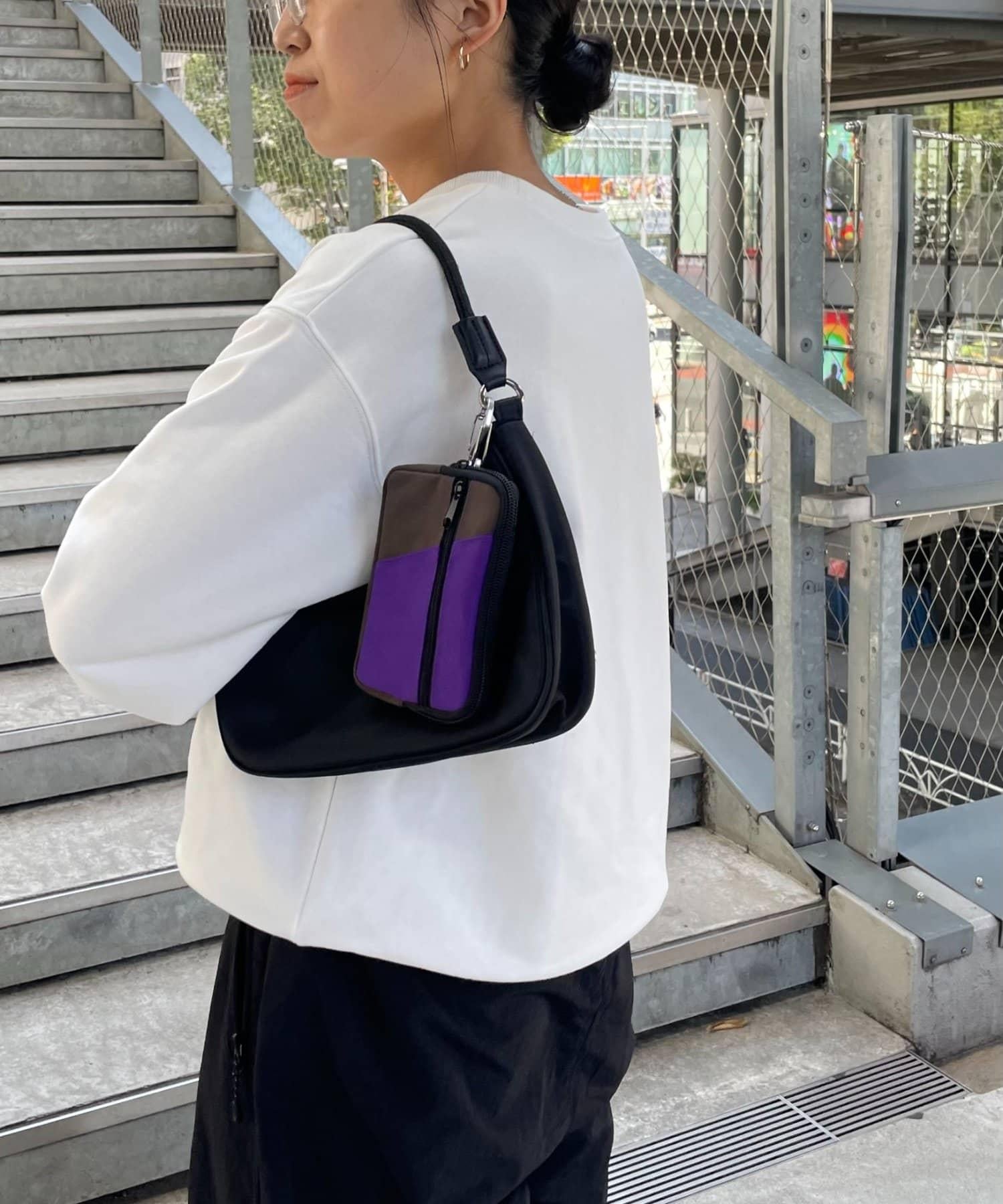 小袋背面附有腰帶,可將其掛在包上,也可單獨使用。