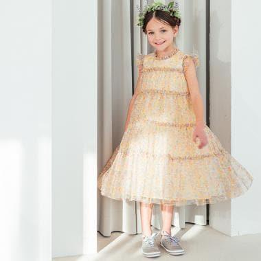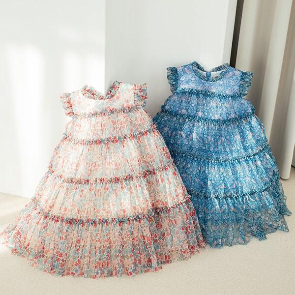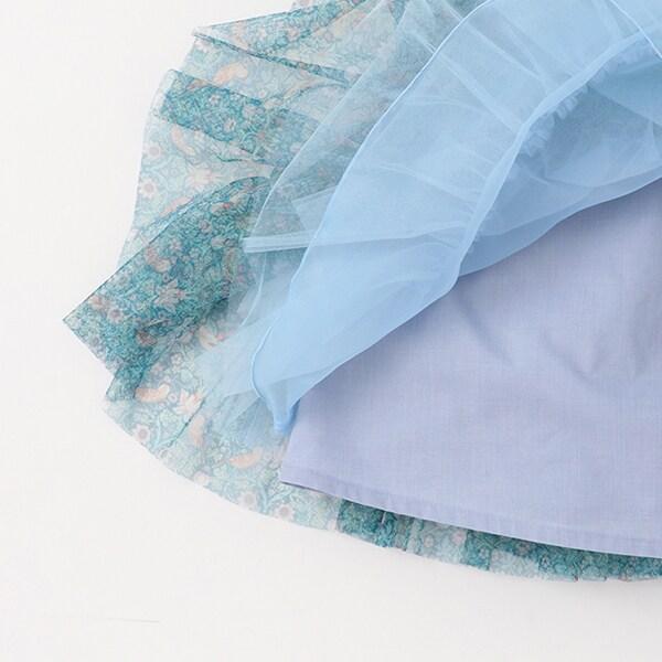 這款可愛的連衣裙有著豐滿的層疊過渡。自由織物印花薄紗材質營造出迷人的氛圍。背後的拉鍊方便您穿脫。內側有標籤,可以寫上自己的名字。建議春夏季節穿著。