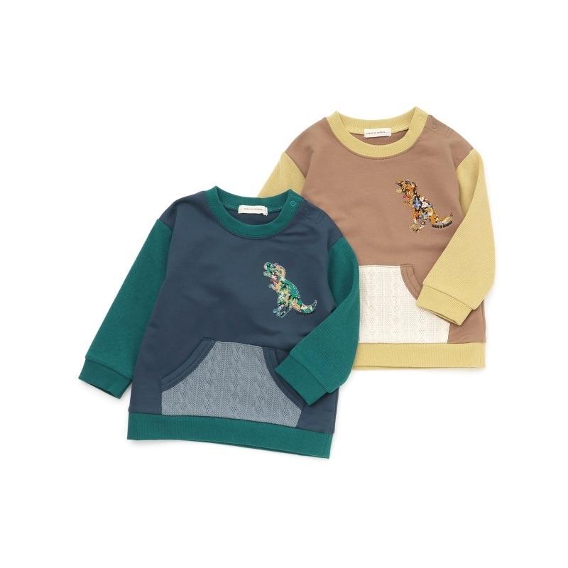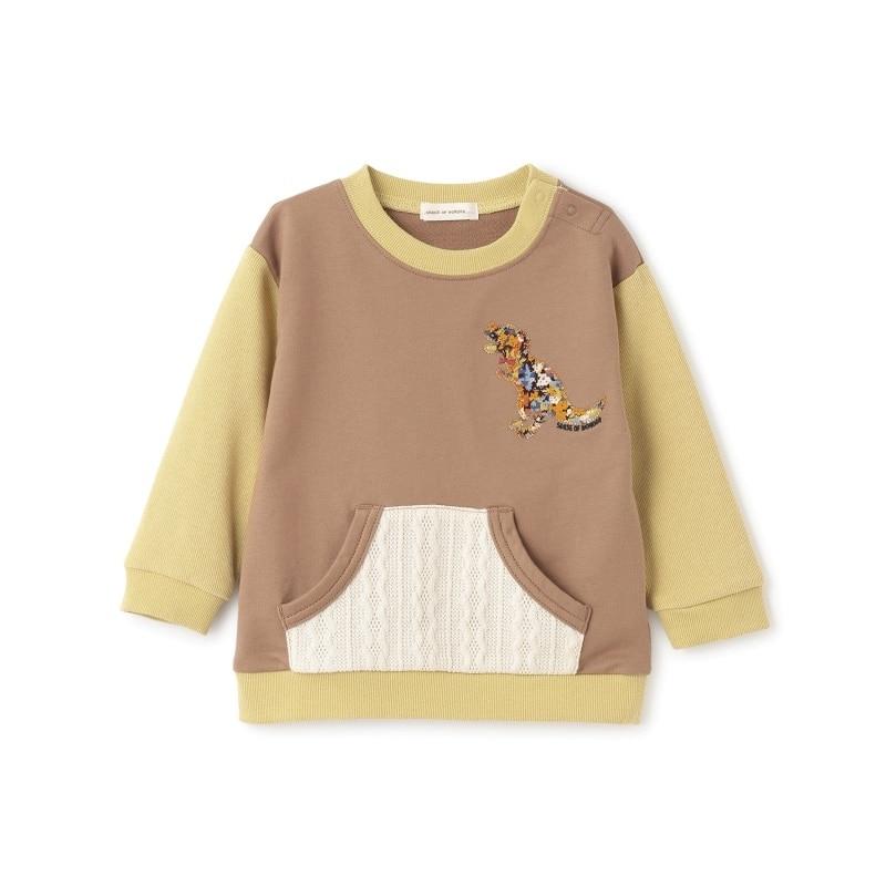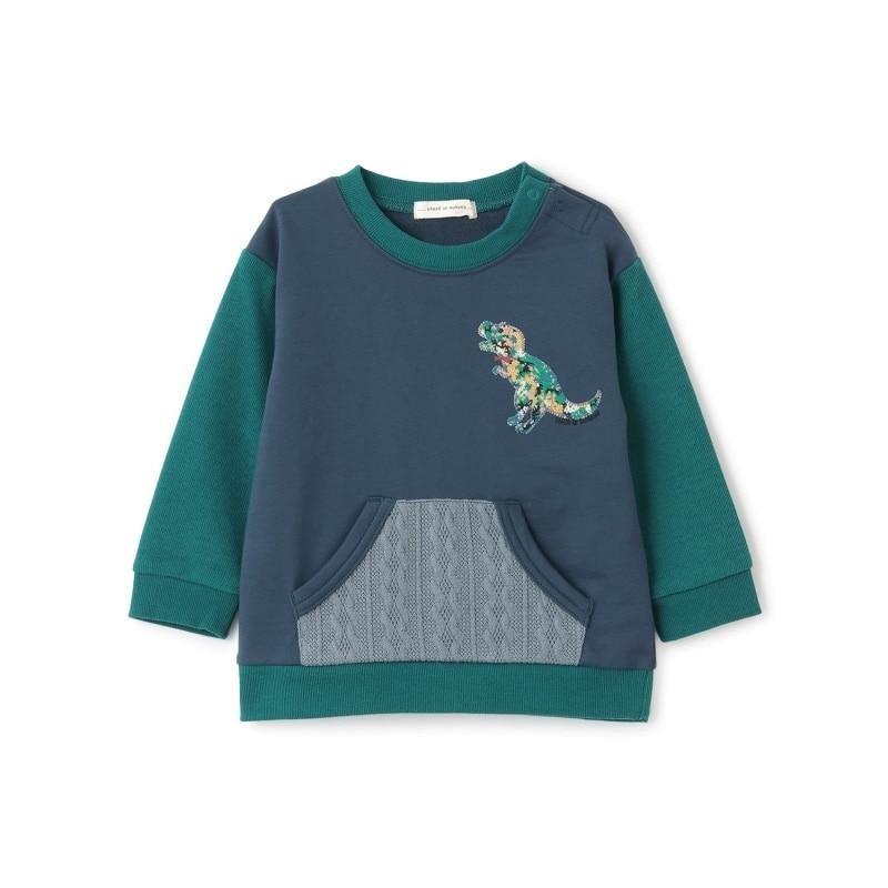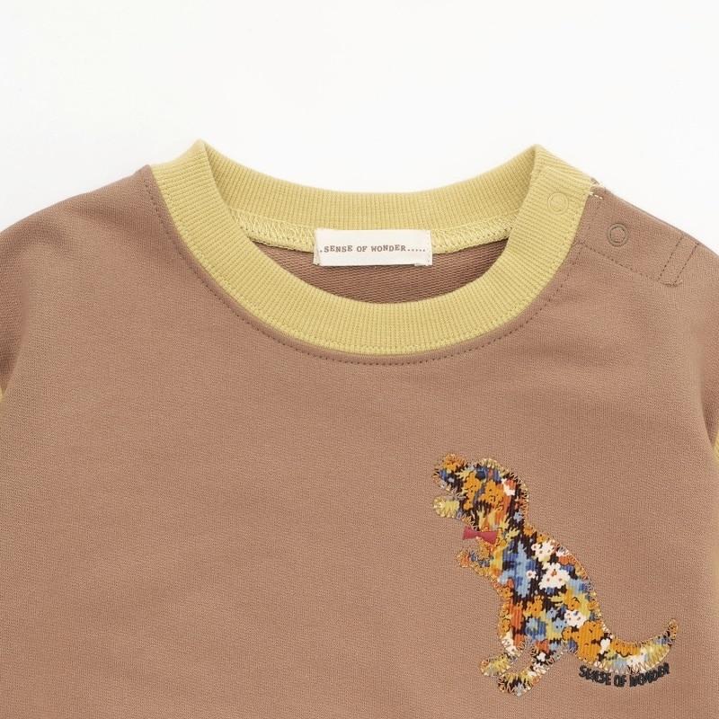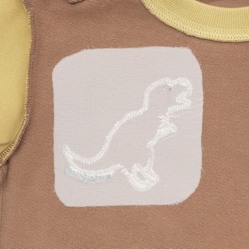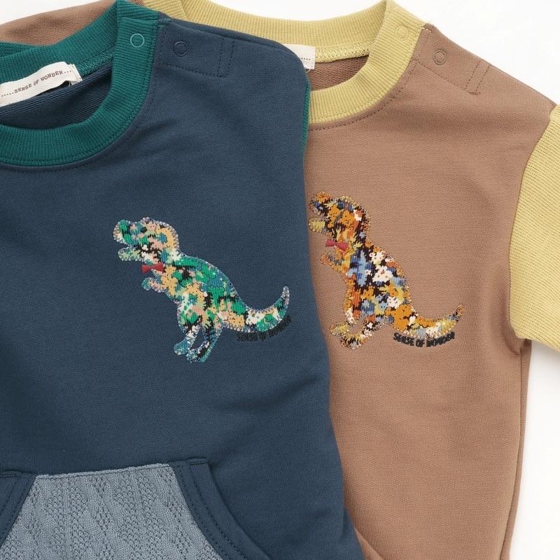 左胸飾有自由織物 "Coriander "圖案的恐龍貼花。