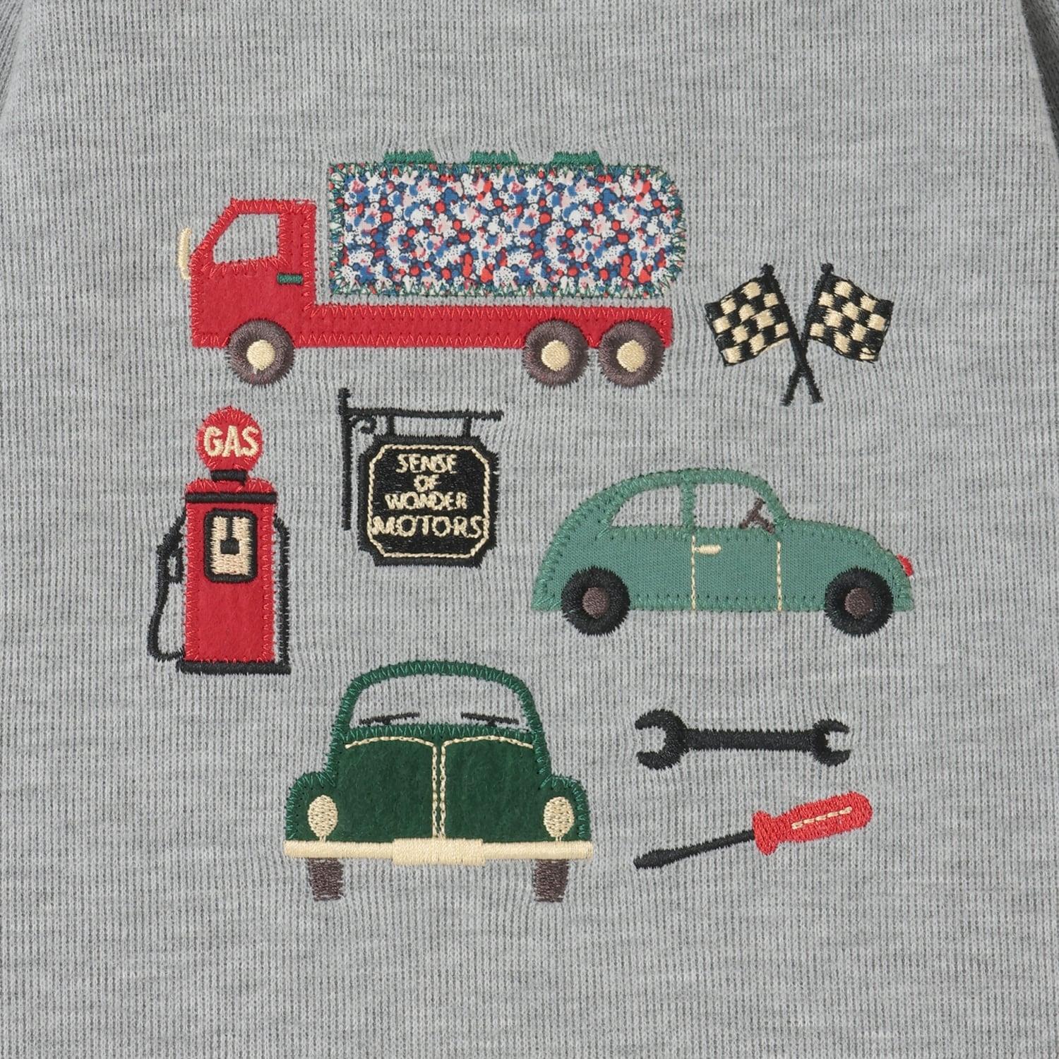 這款運動鞋有一個可愛的貼花汽車圖案。