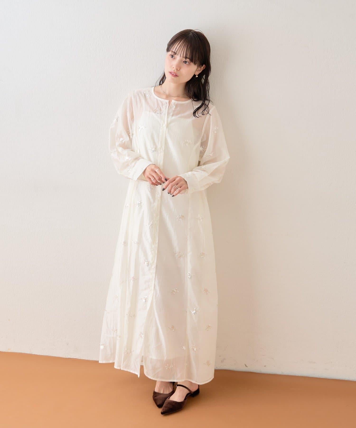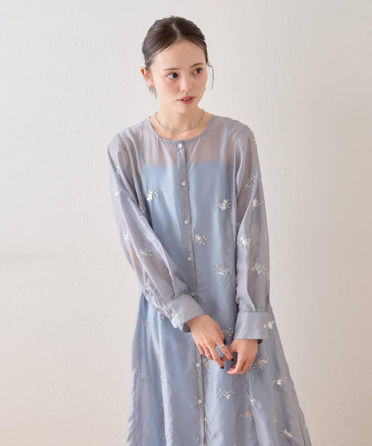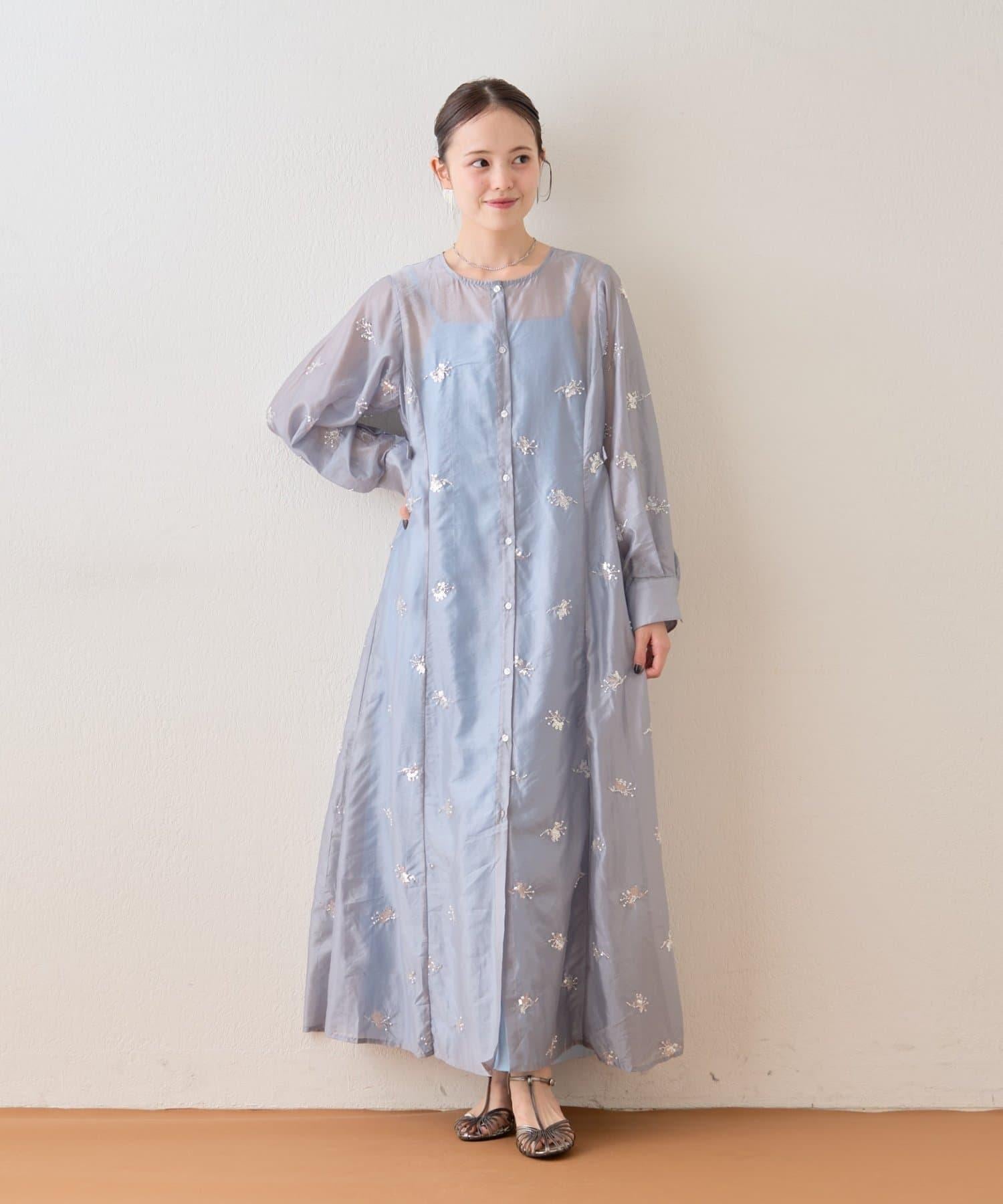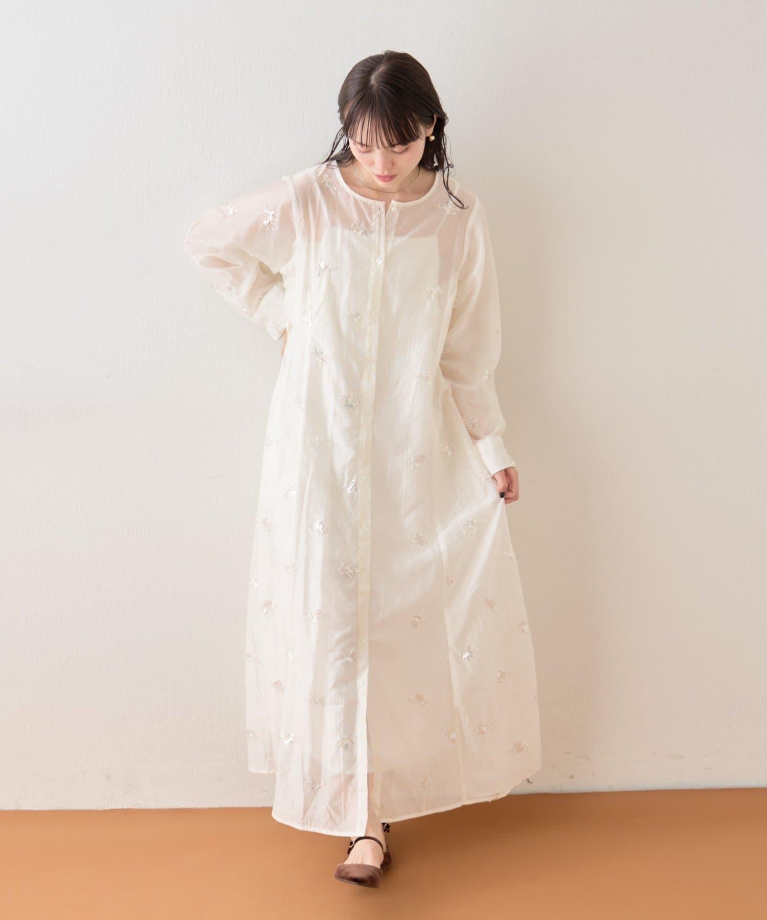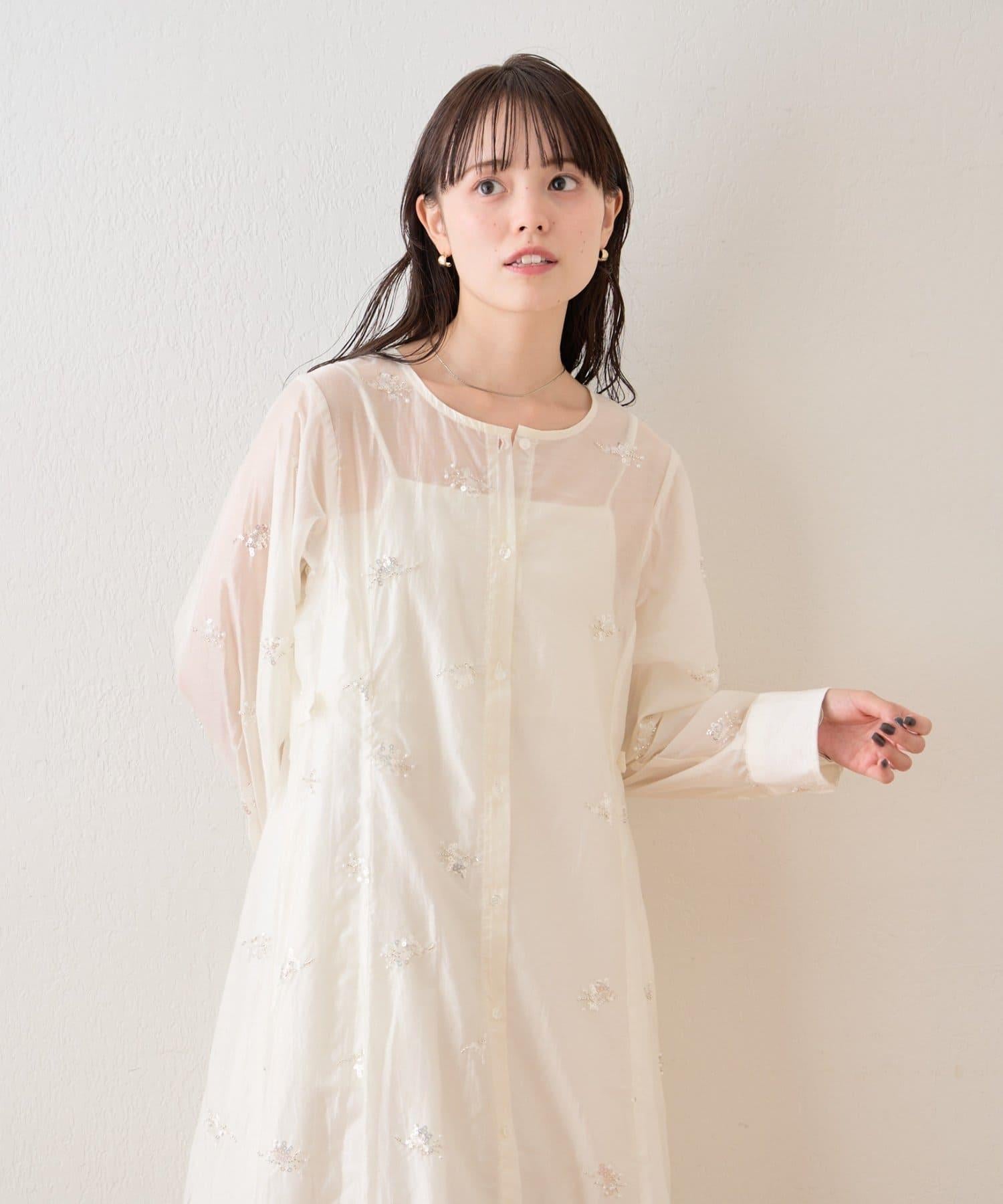 薄紗材質的連衣裙上附帶的小飾品恰到好處地閃耀著光芒,是一款可愛的連衣裙!