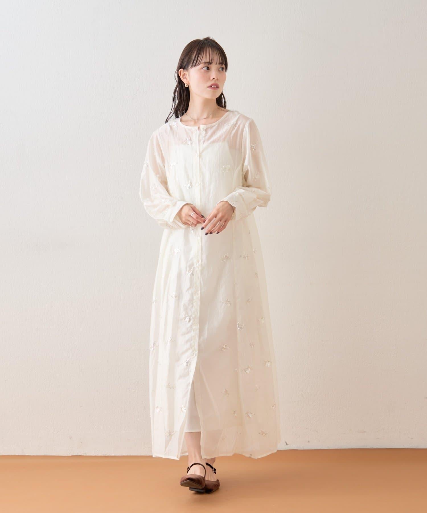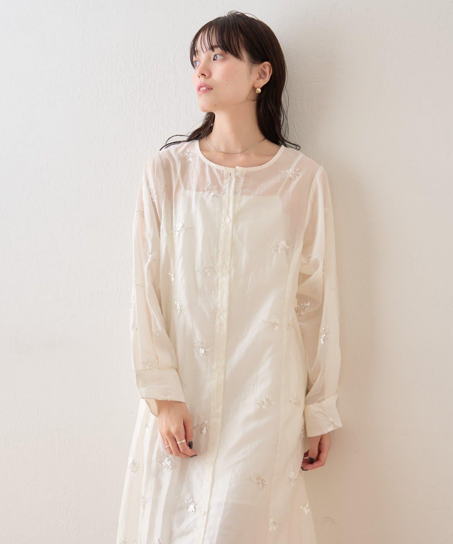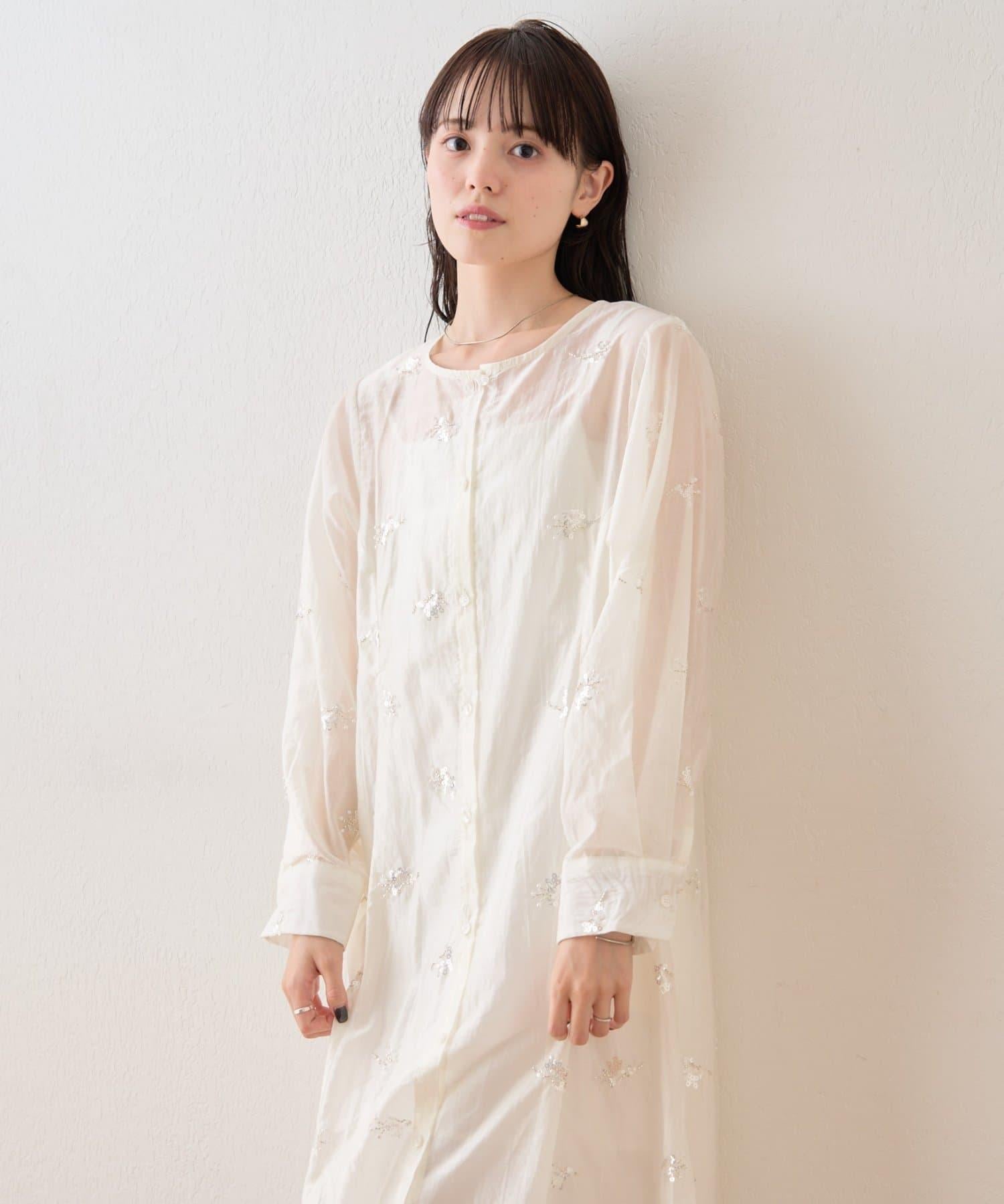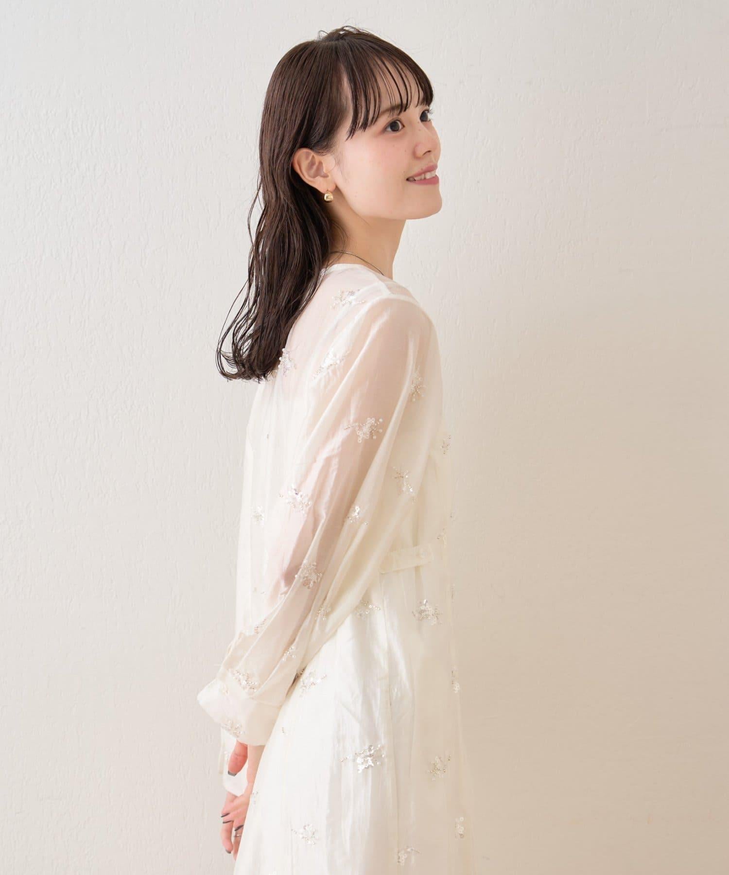 薄紗材質的連衣裙上附帶的小飾品恰到好處地閃耀著光芒,是一款可愛的連衣裙!