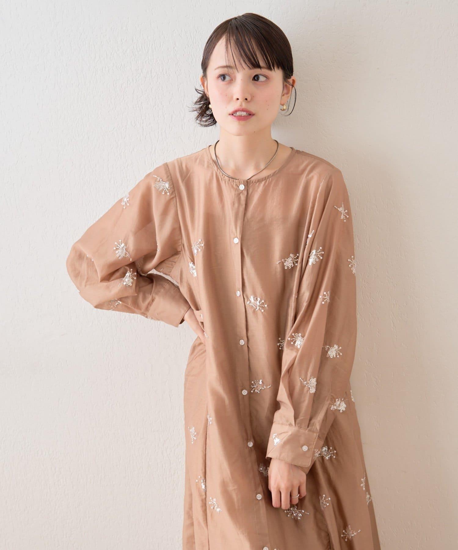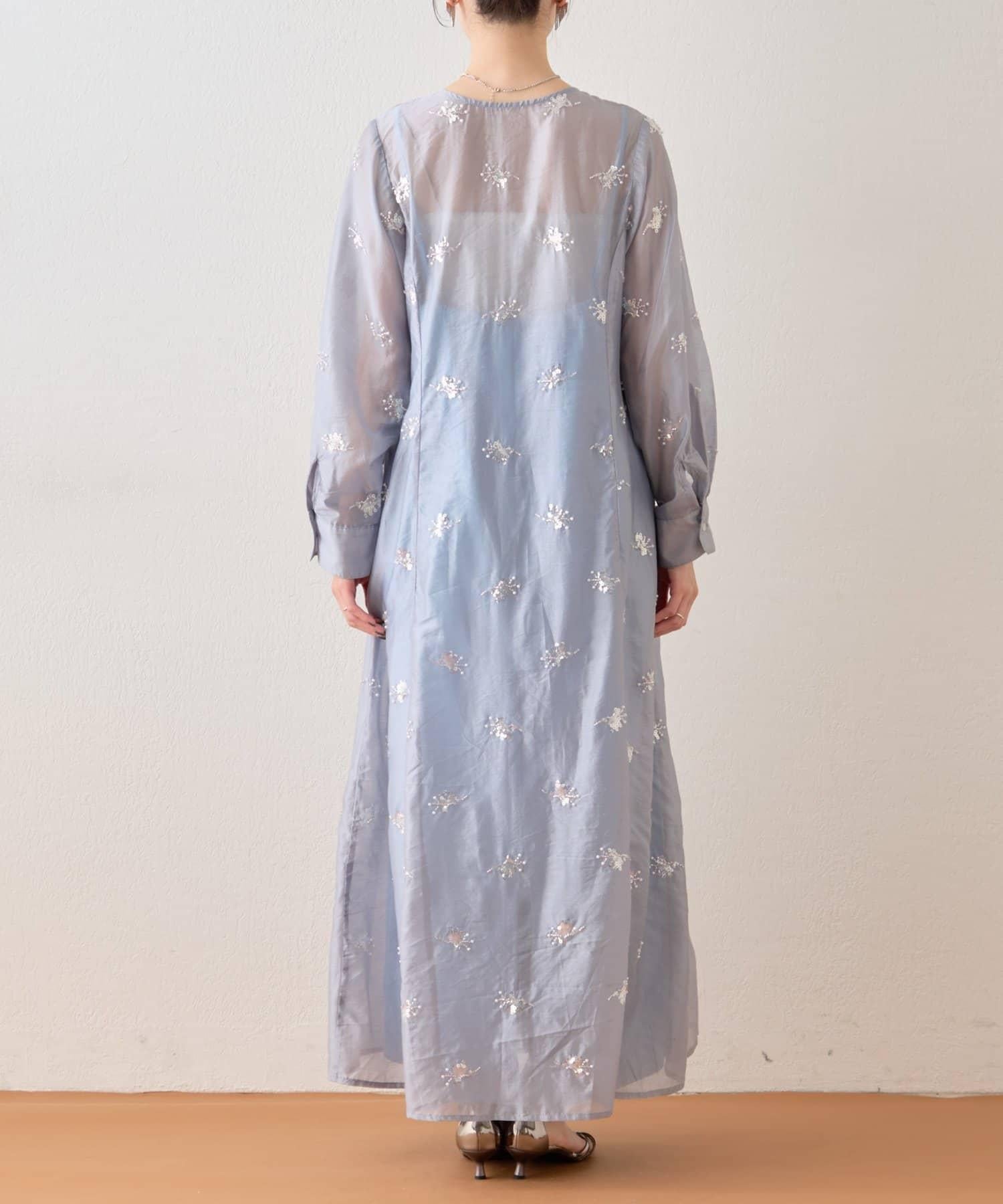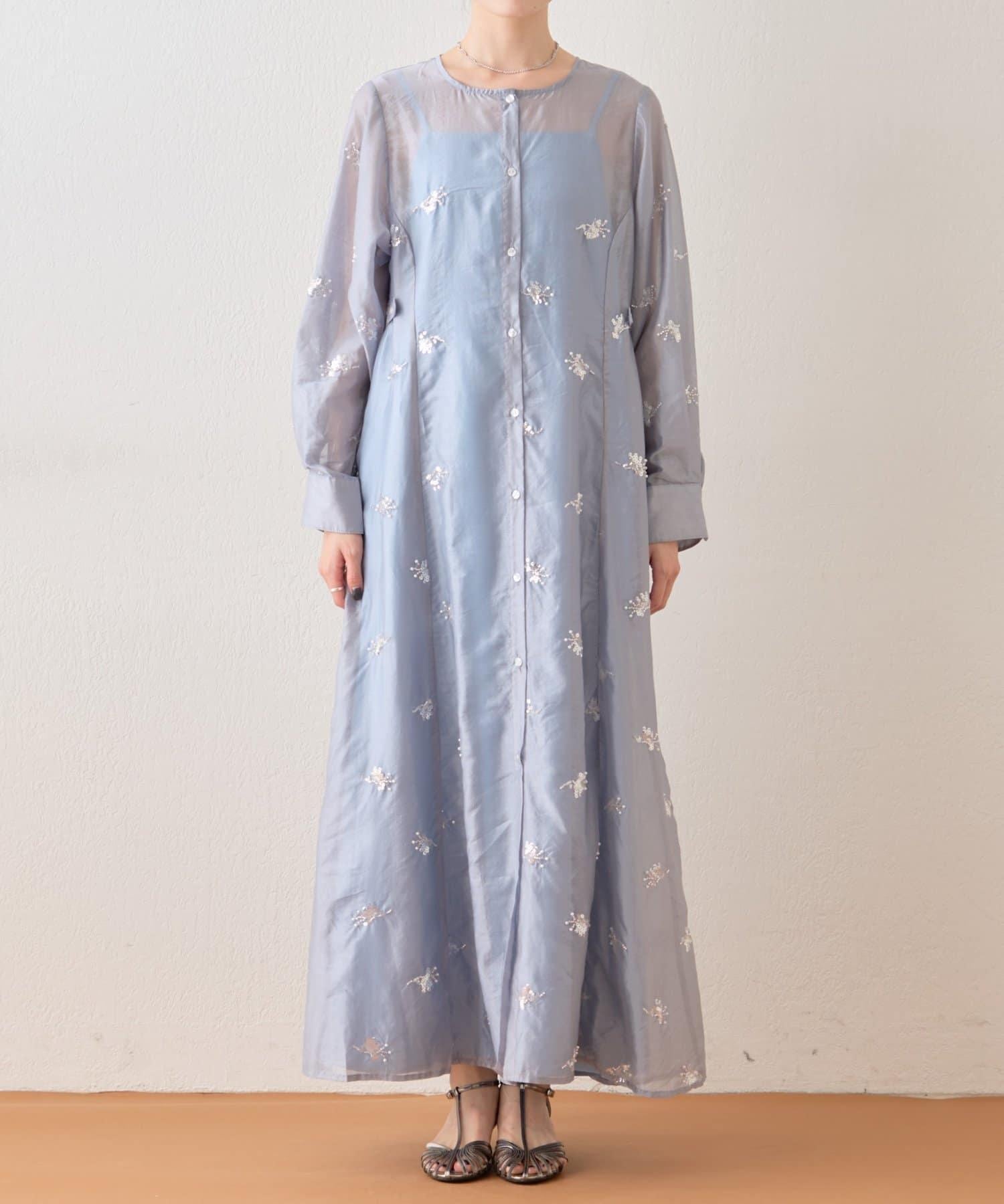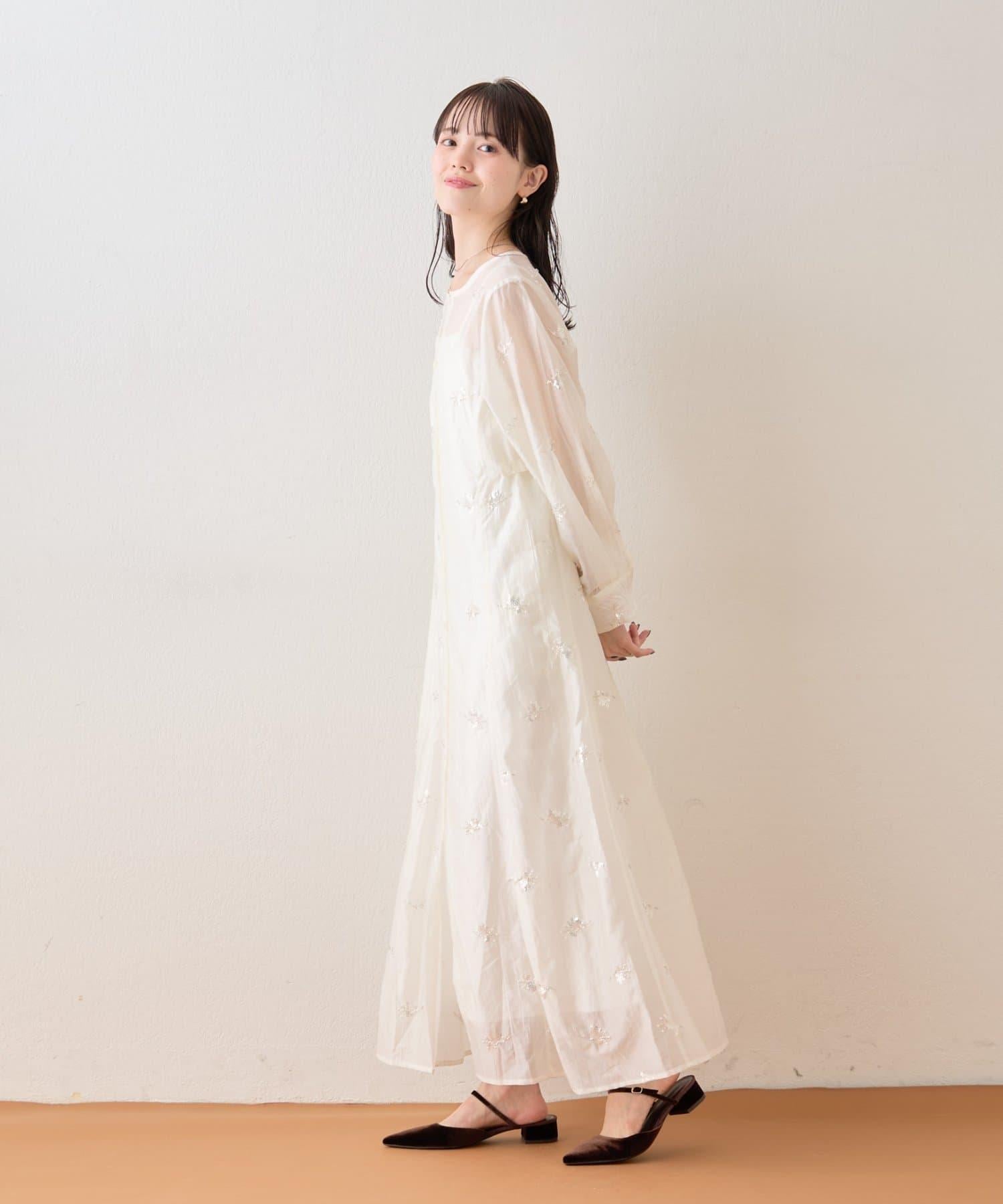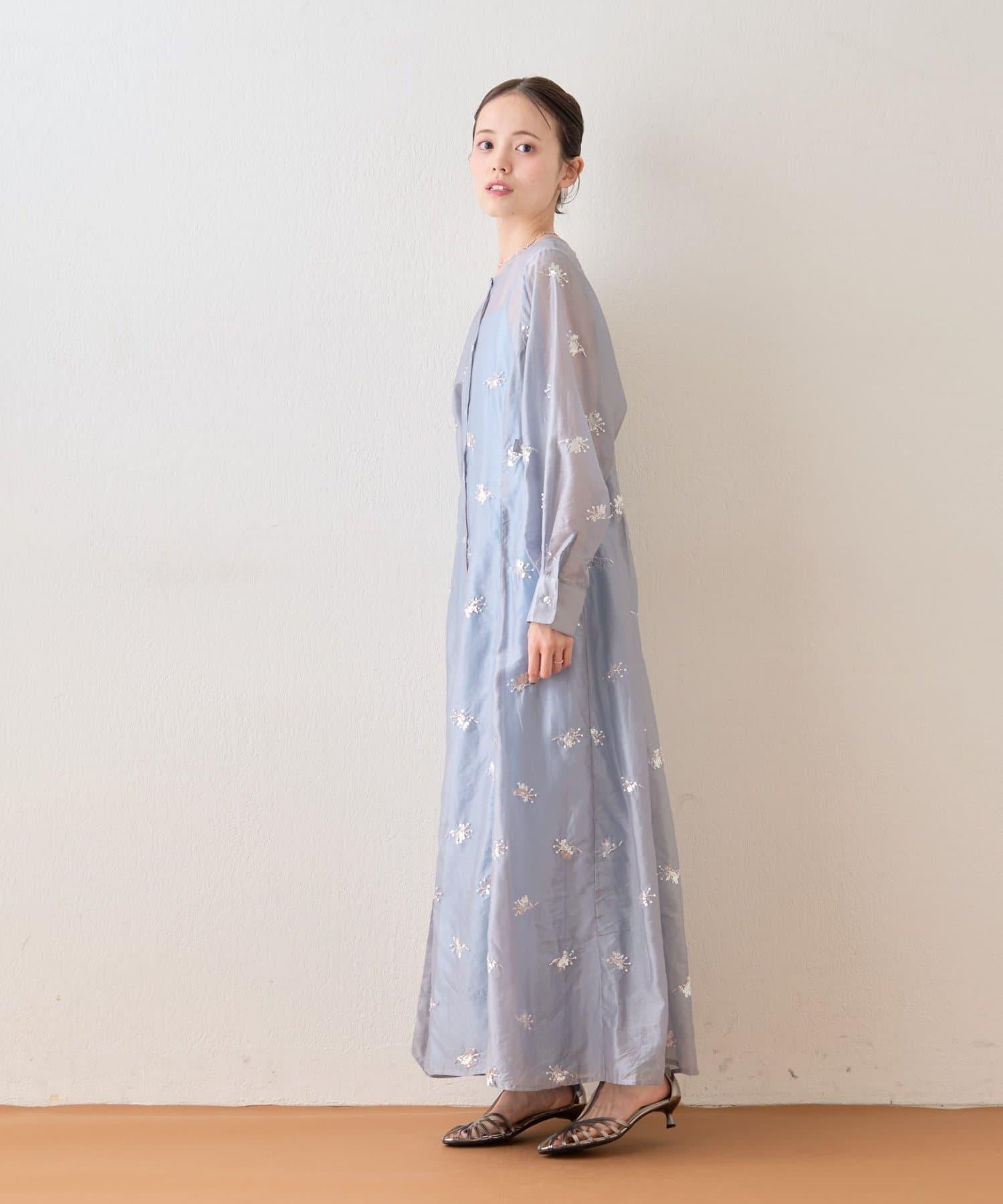 薄紗材質的連衣裙上附帶的小飾品恰到好處地閃耀著光芒,是一款可愛的連衣裙!