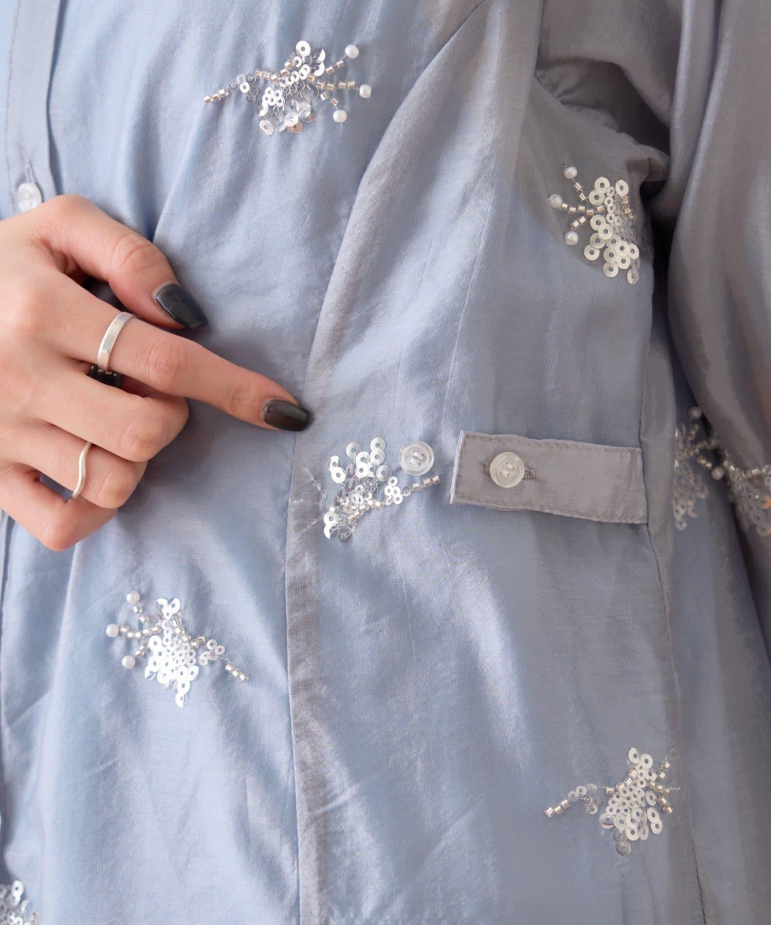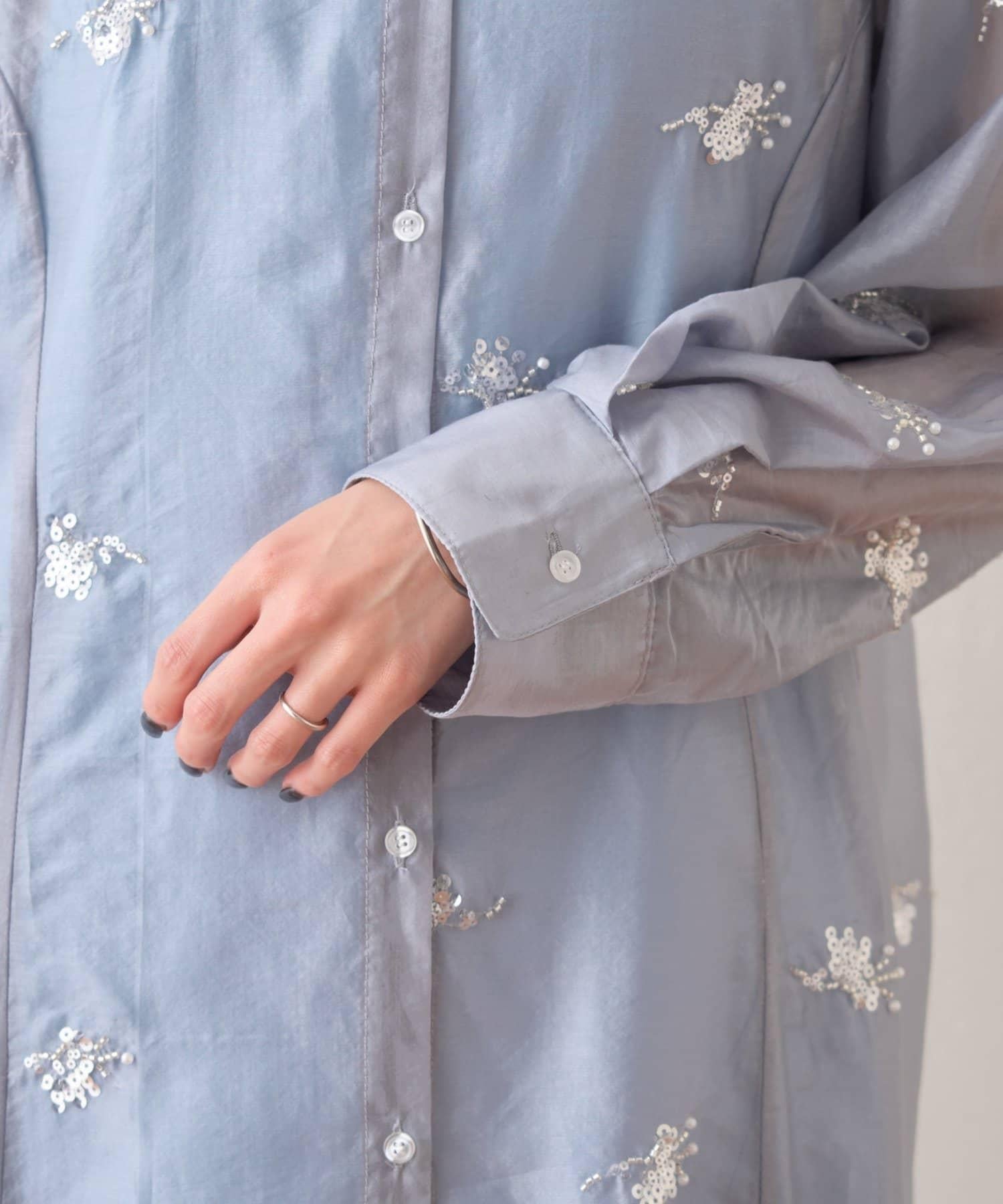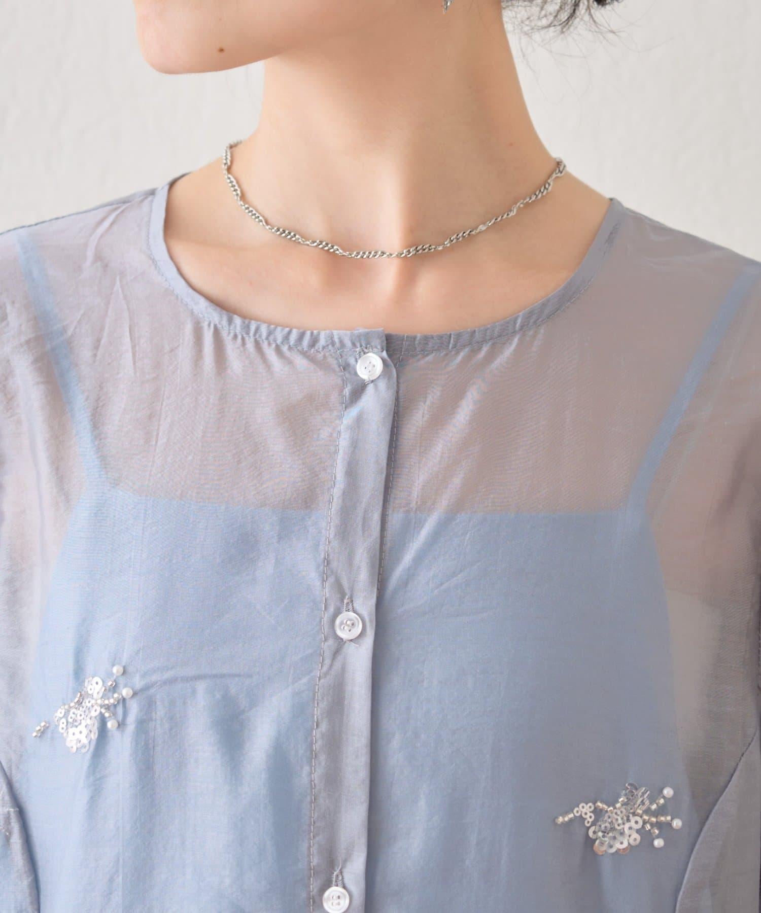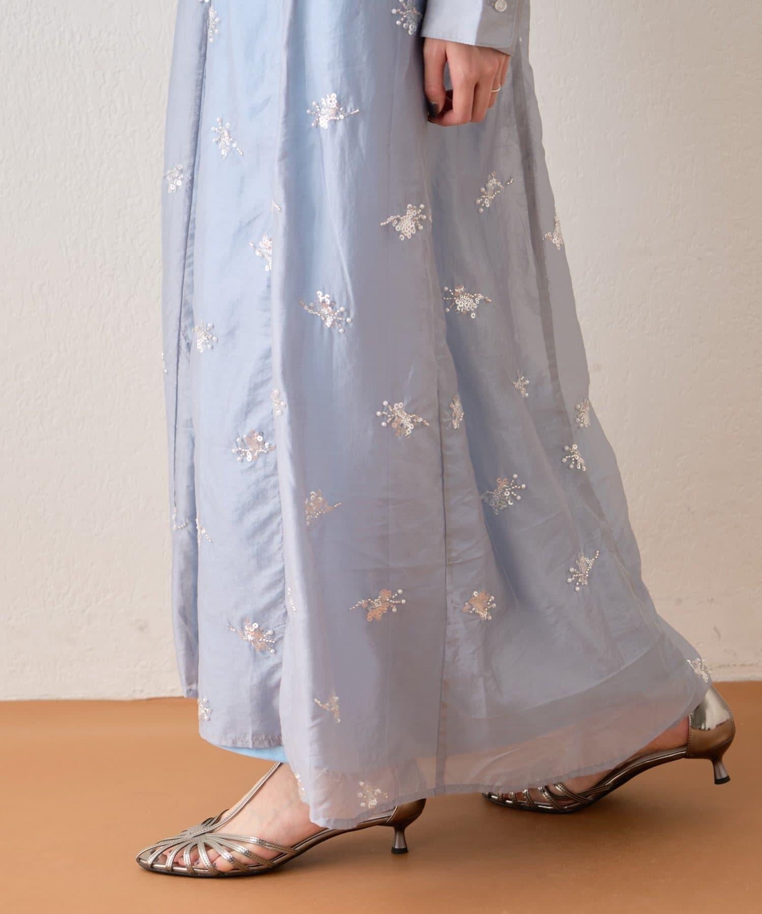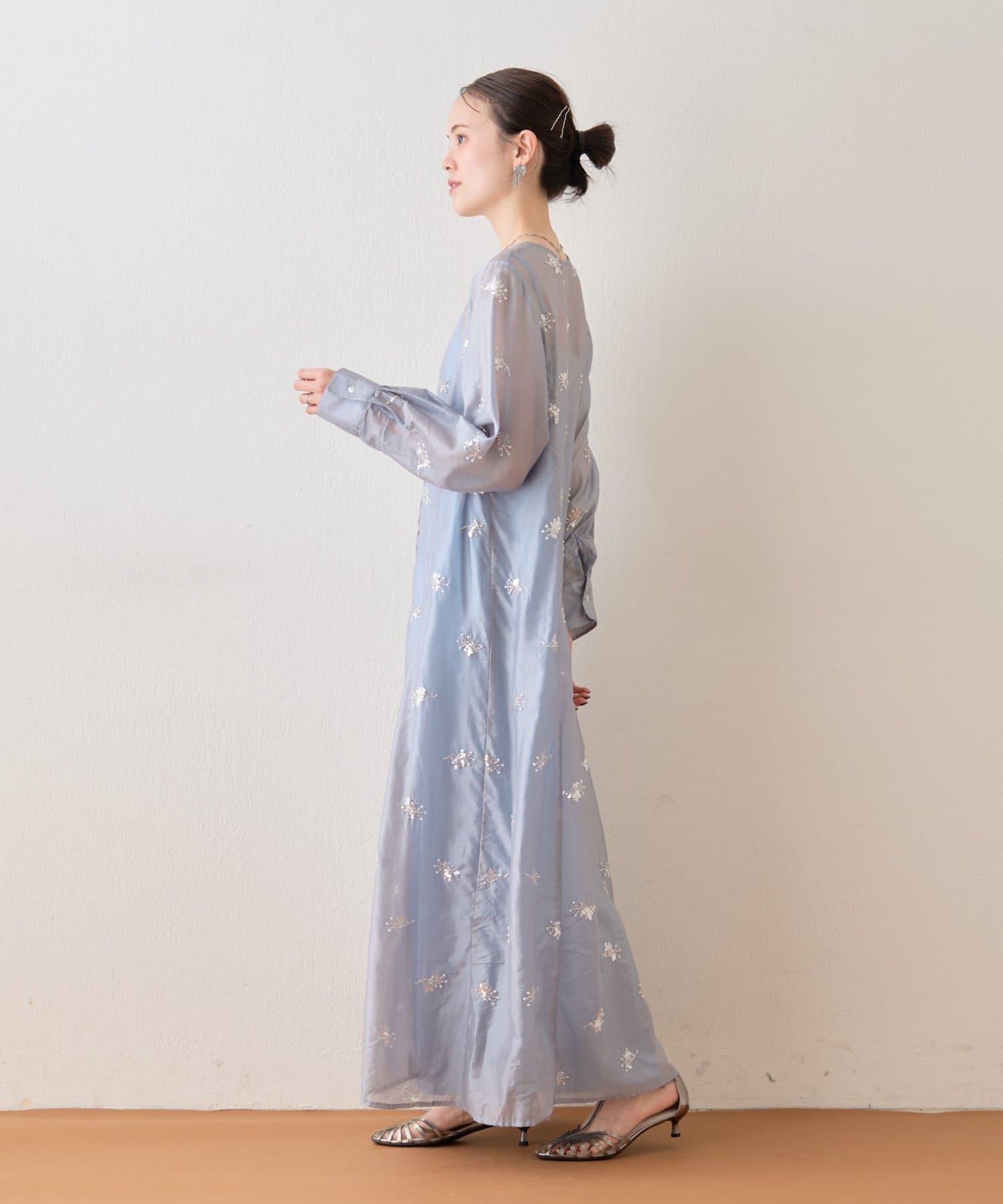 薄紗材質的連衣裙上附帶的小飾品恰到好處地閃耀著光芒,是一款可愛的連衣裙!