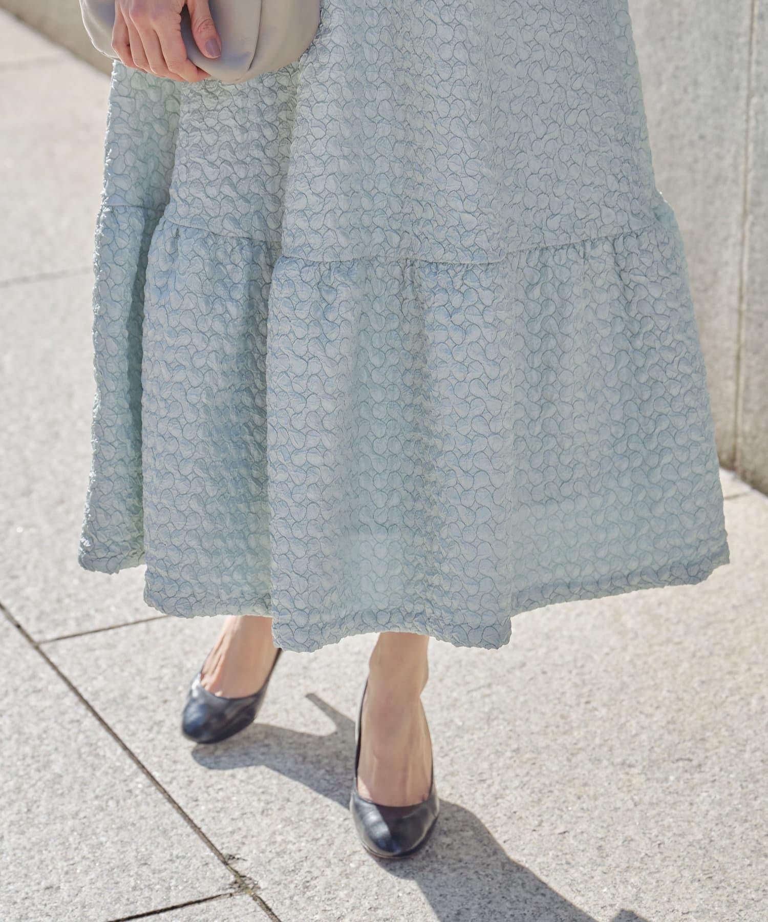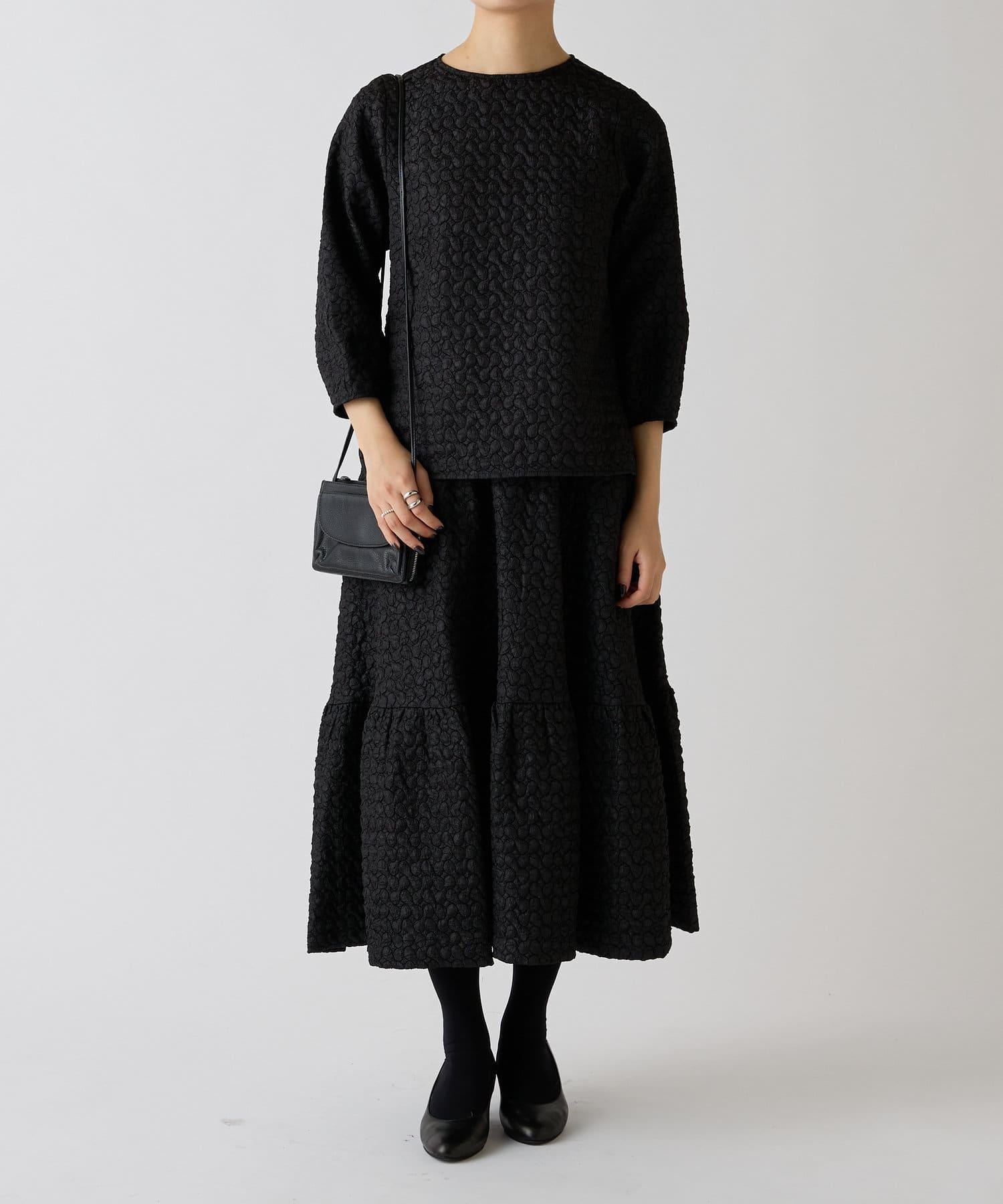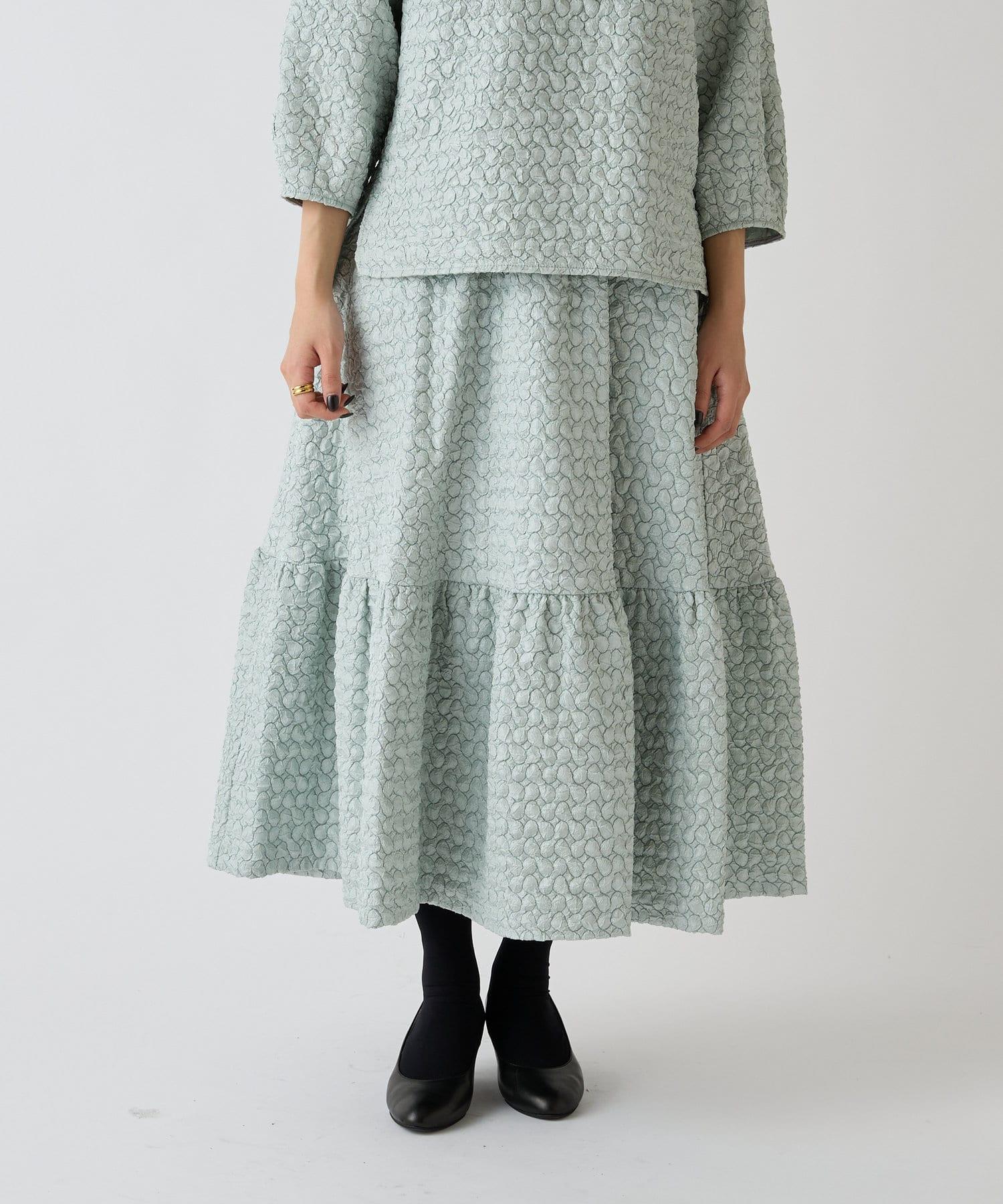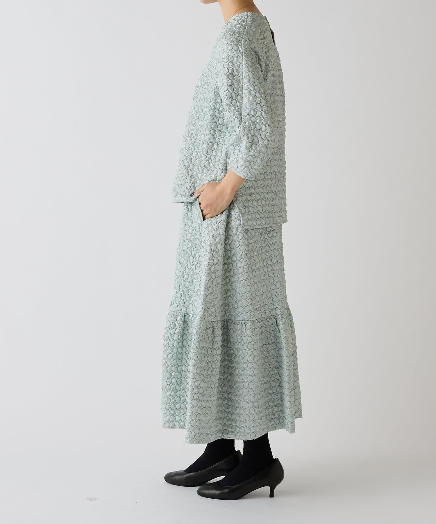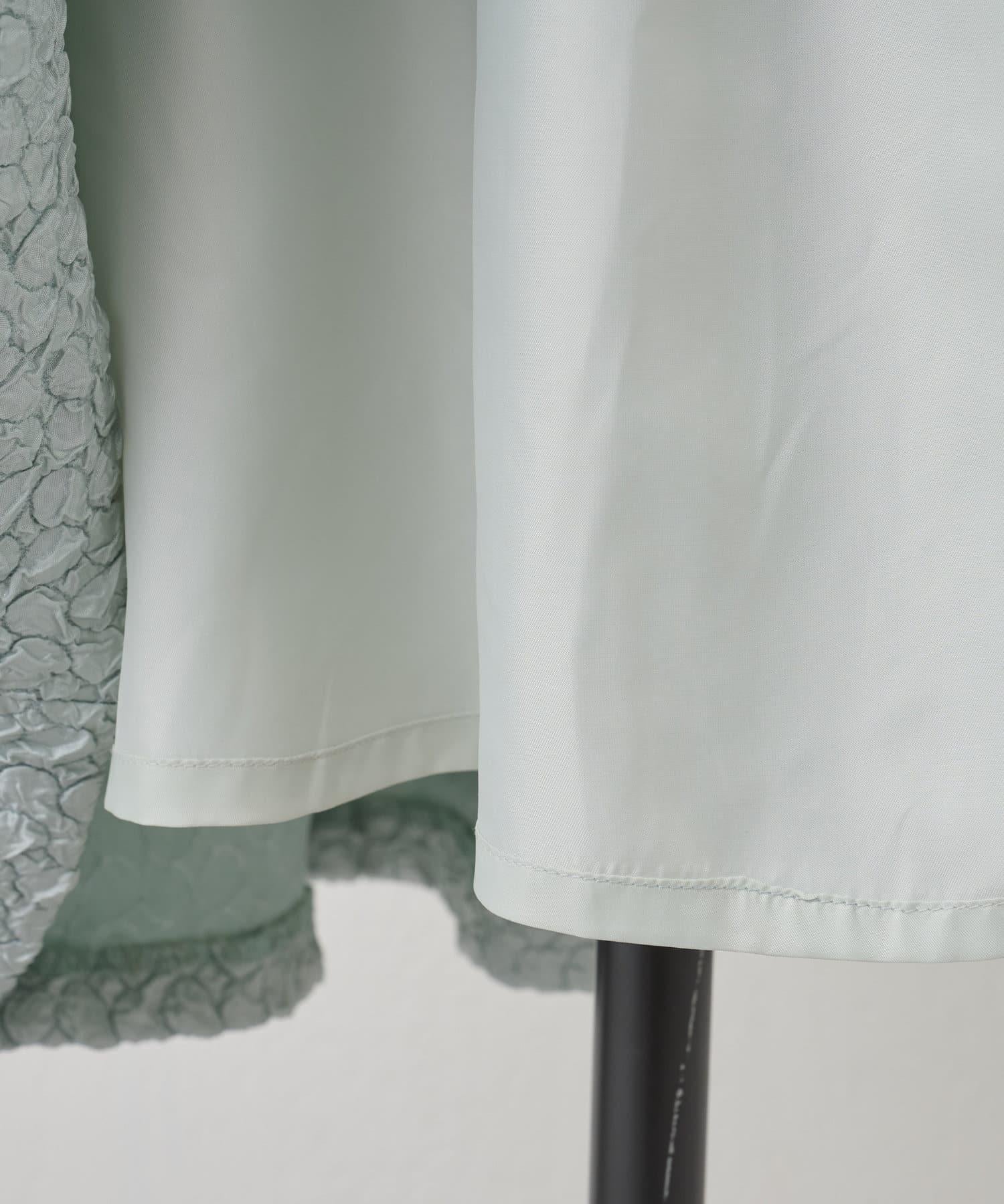 裙子採用具有令人印象深刻的 pokopoko 和凹凸紋理的面料製成。