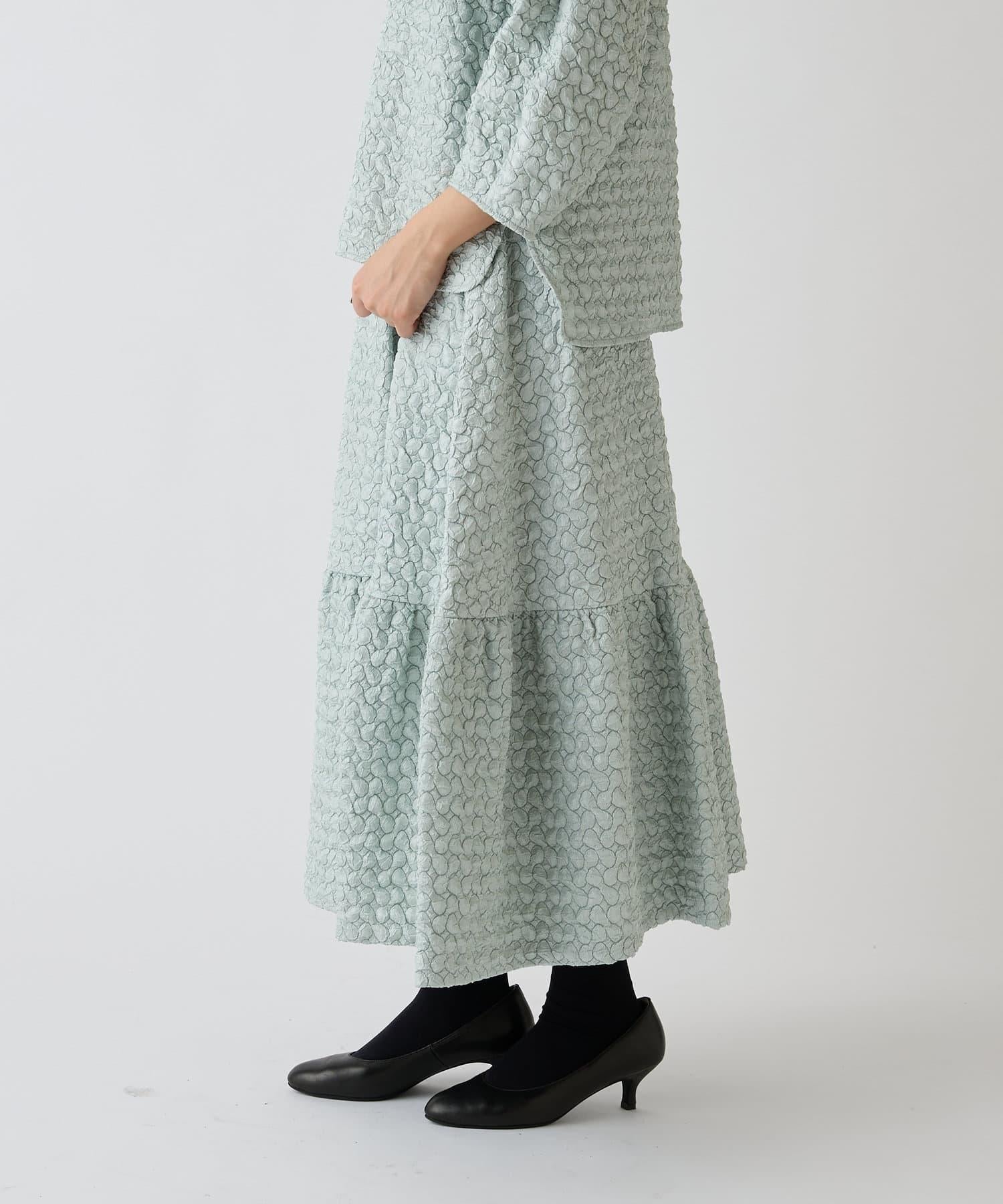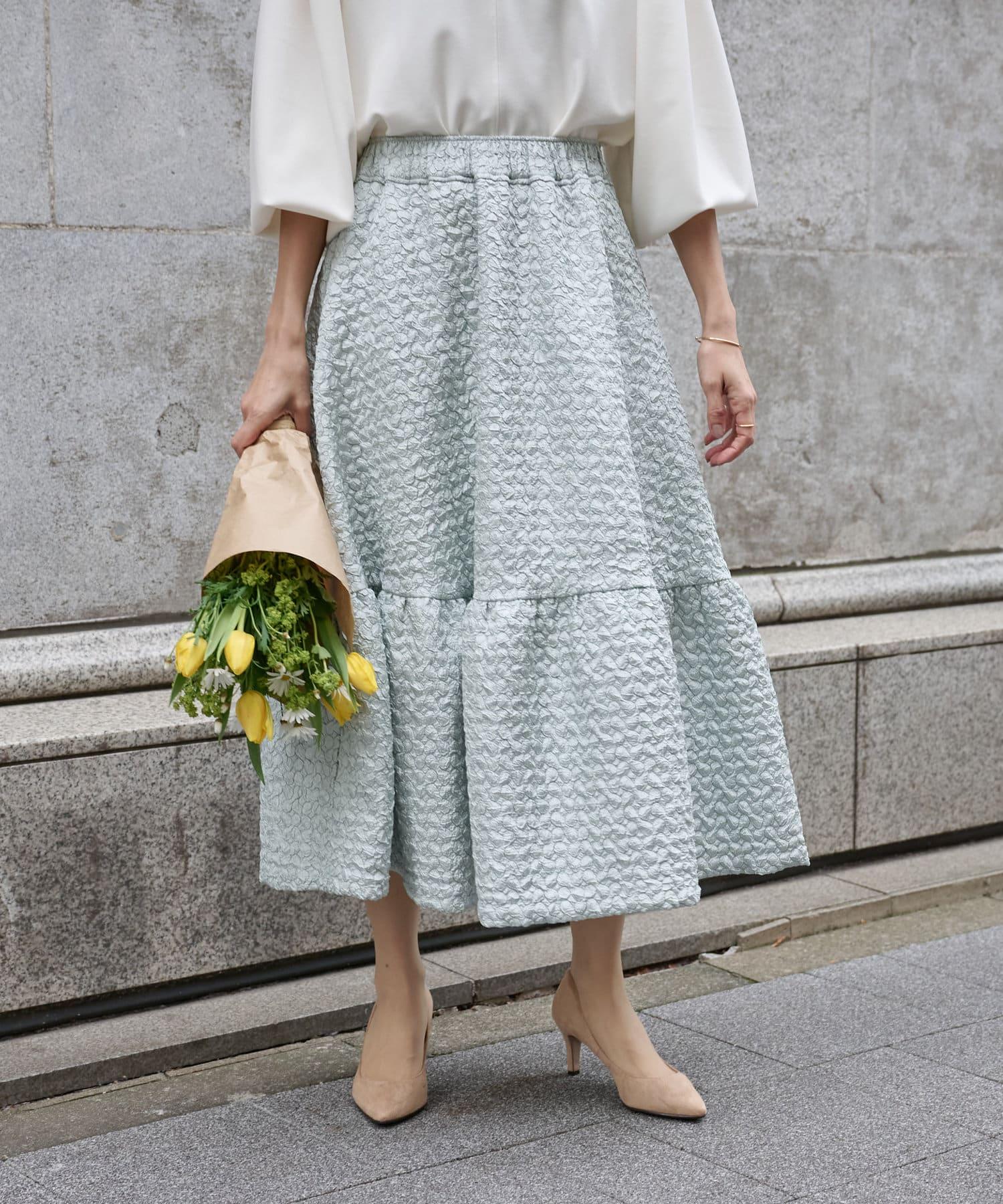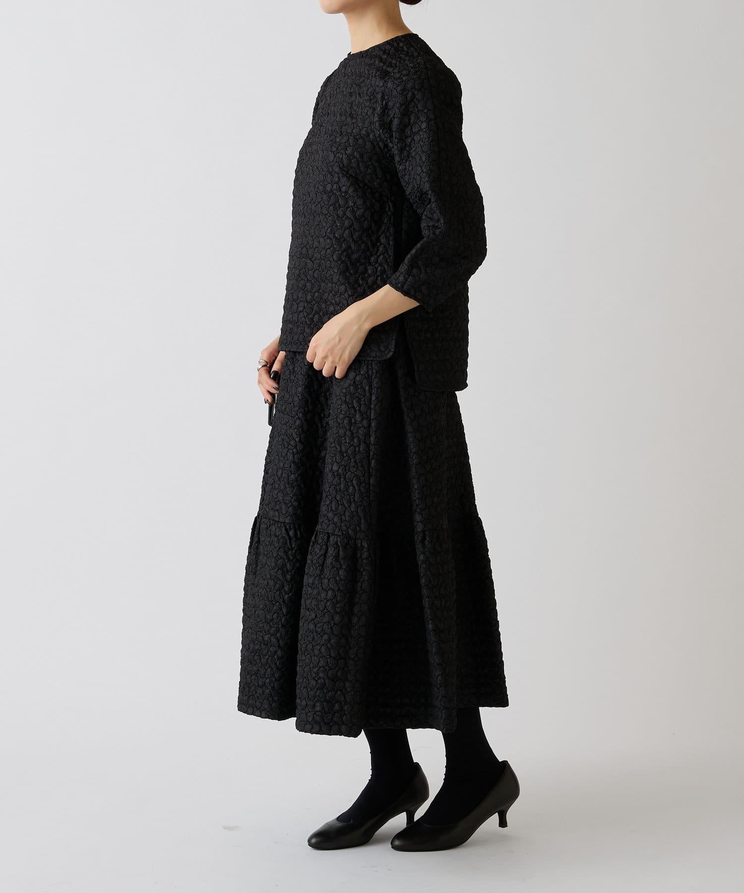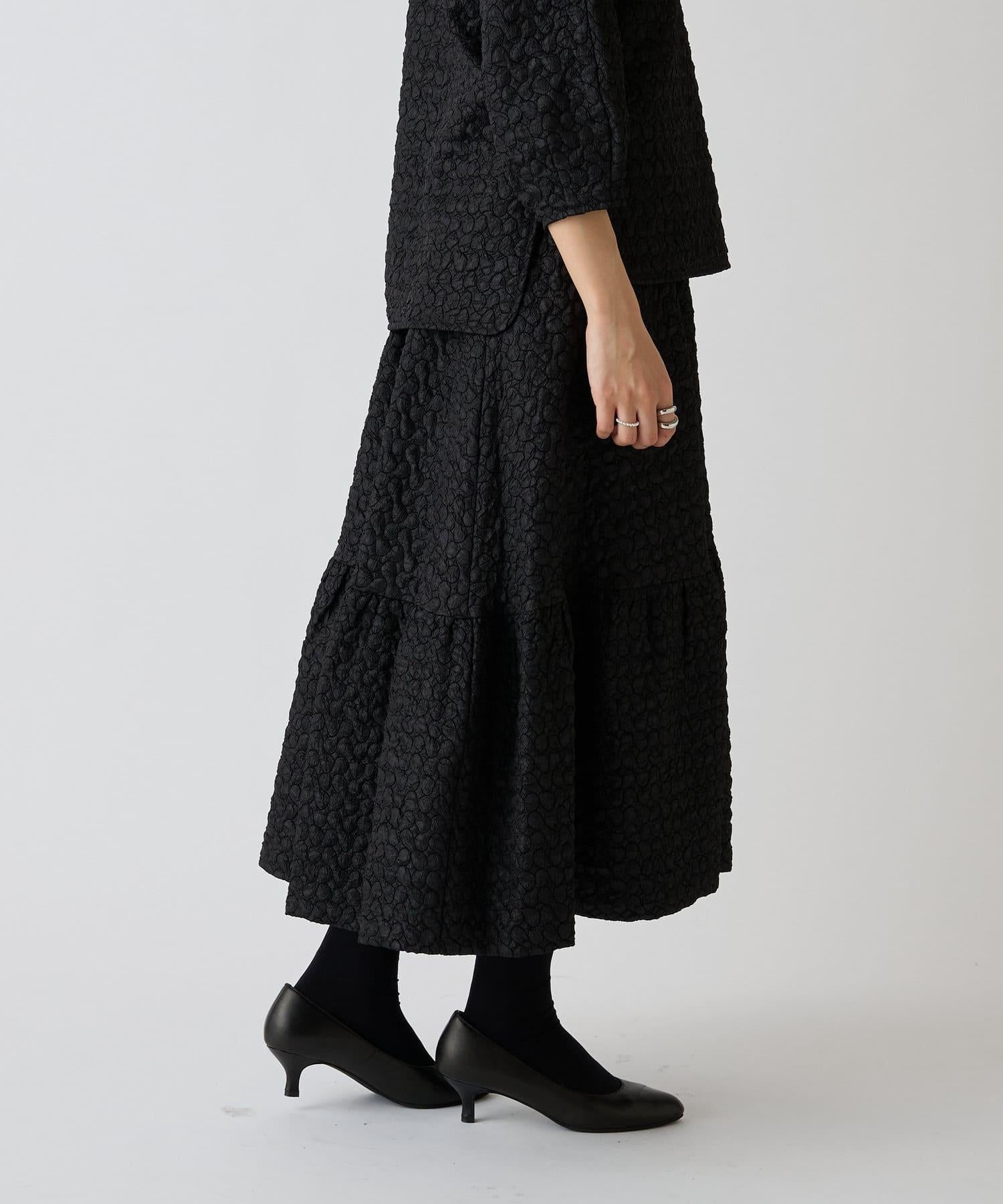 裙子採用具有令人印象深刻的 pokopoko 和凹凸紋理的面料製成。
