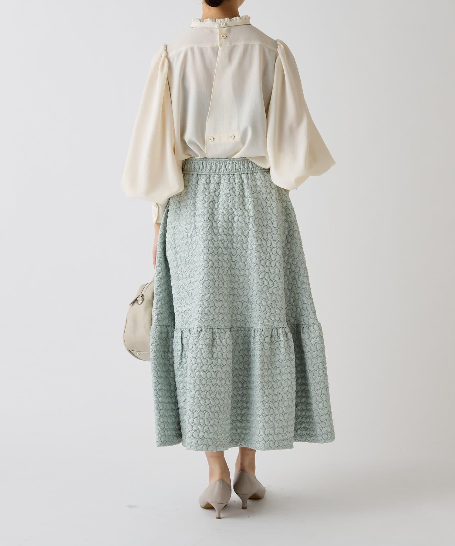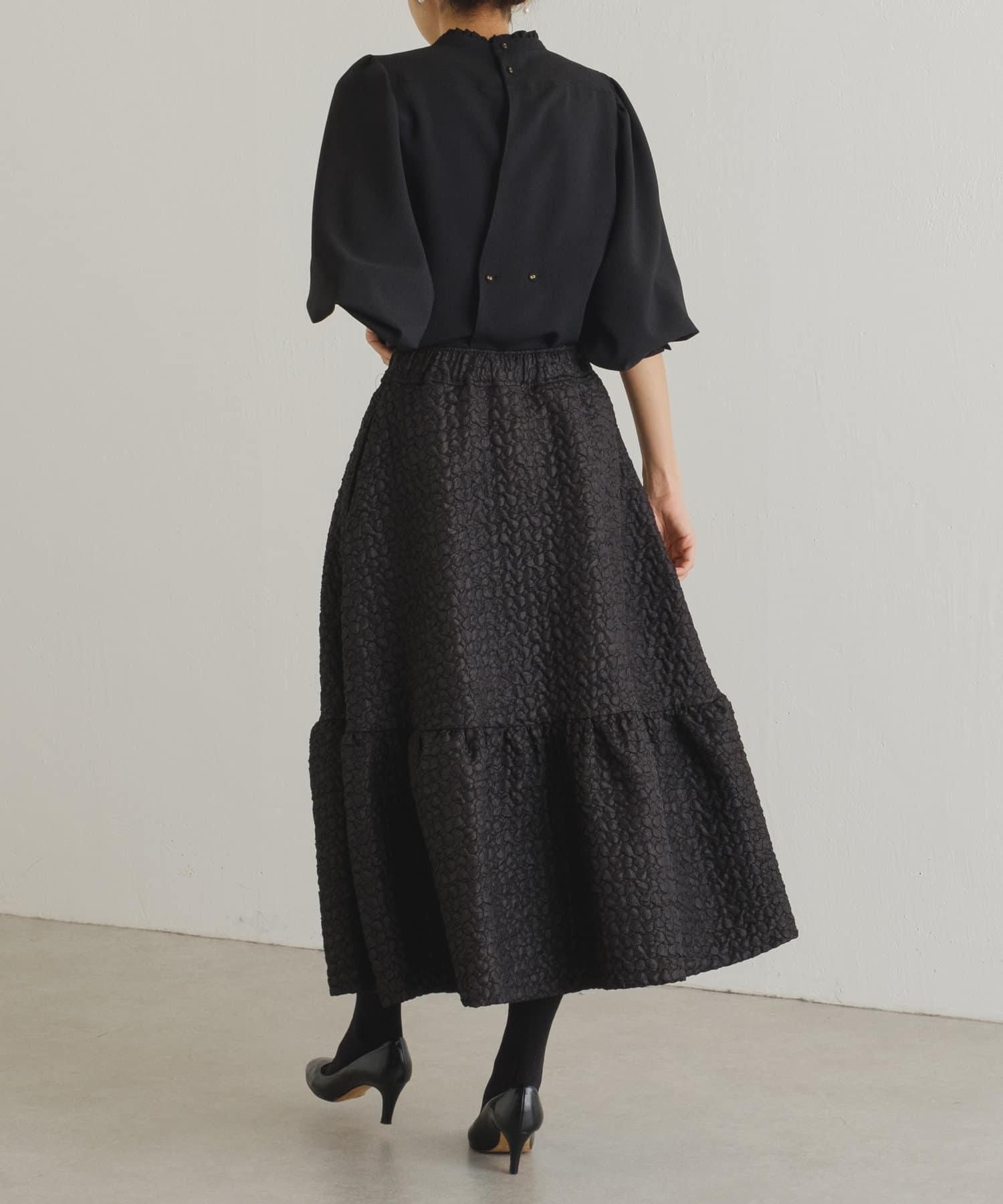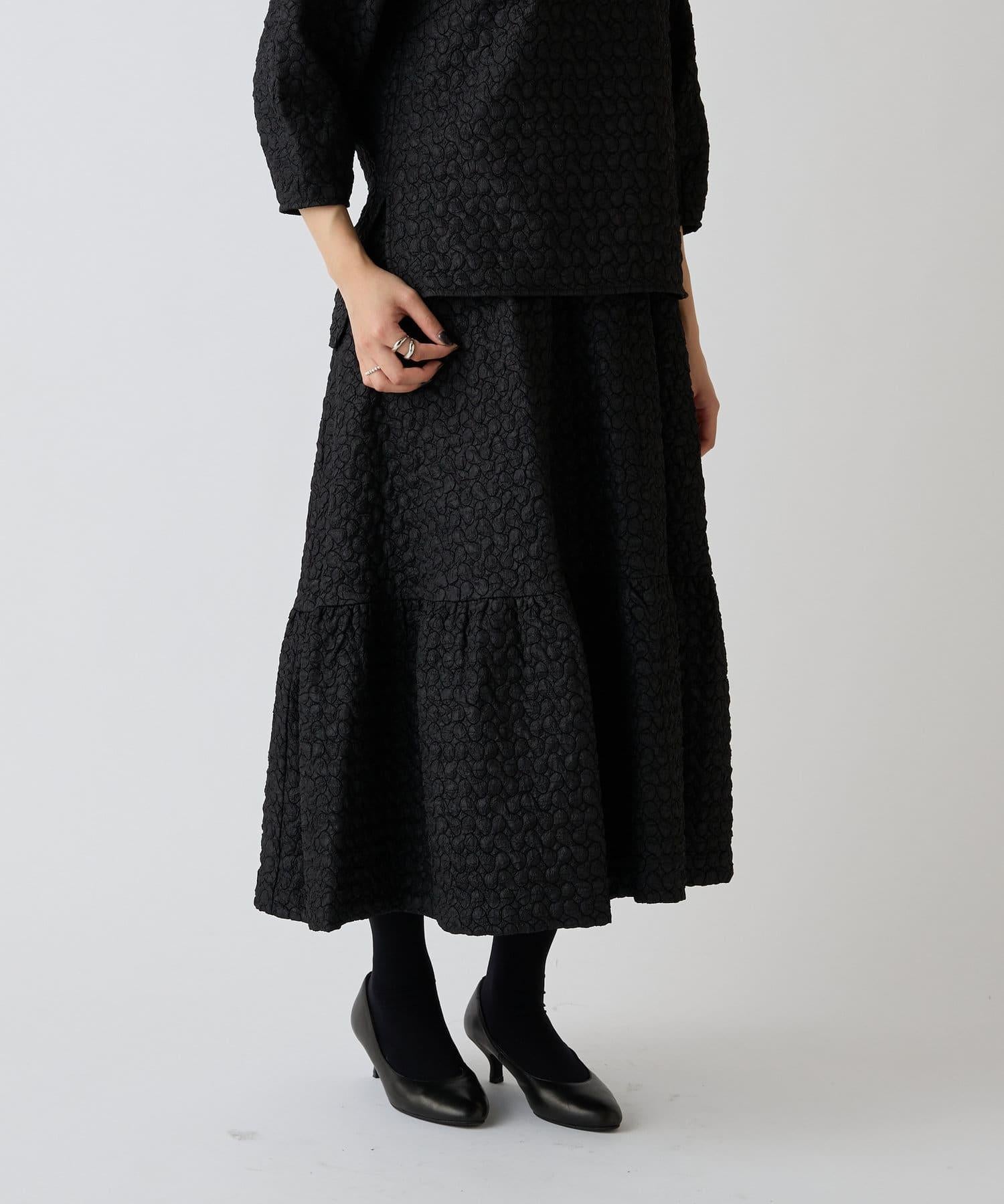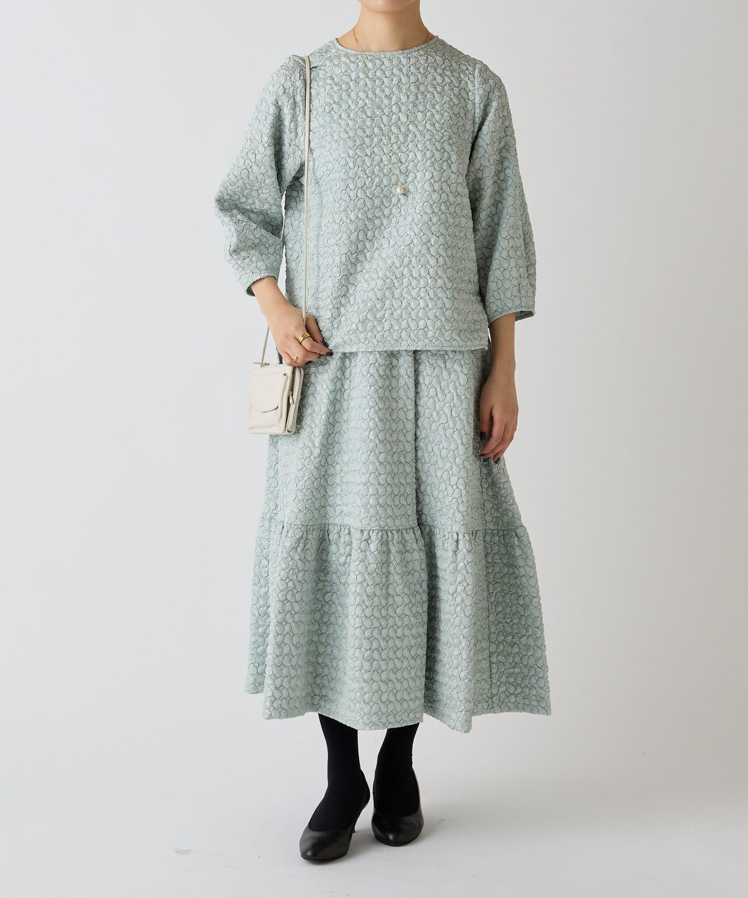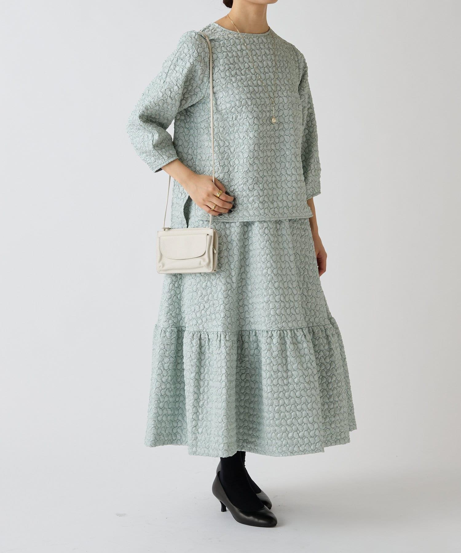 裙子採用具有令人印象深刻的 pokopoko 和凹凸紋理的面料製成。