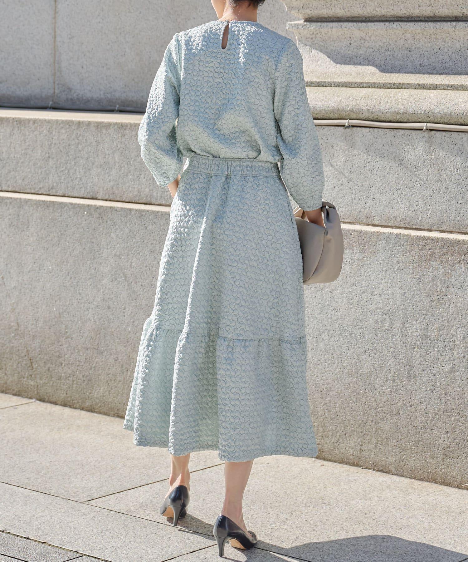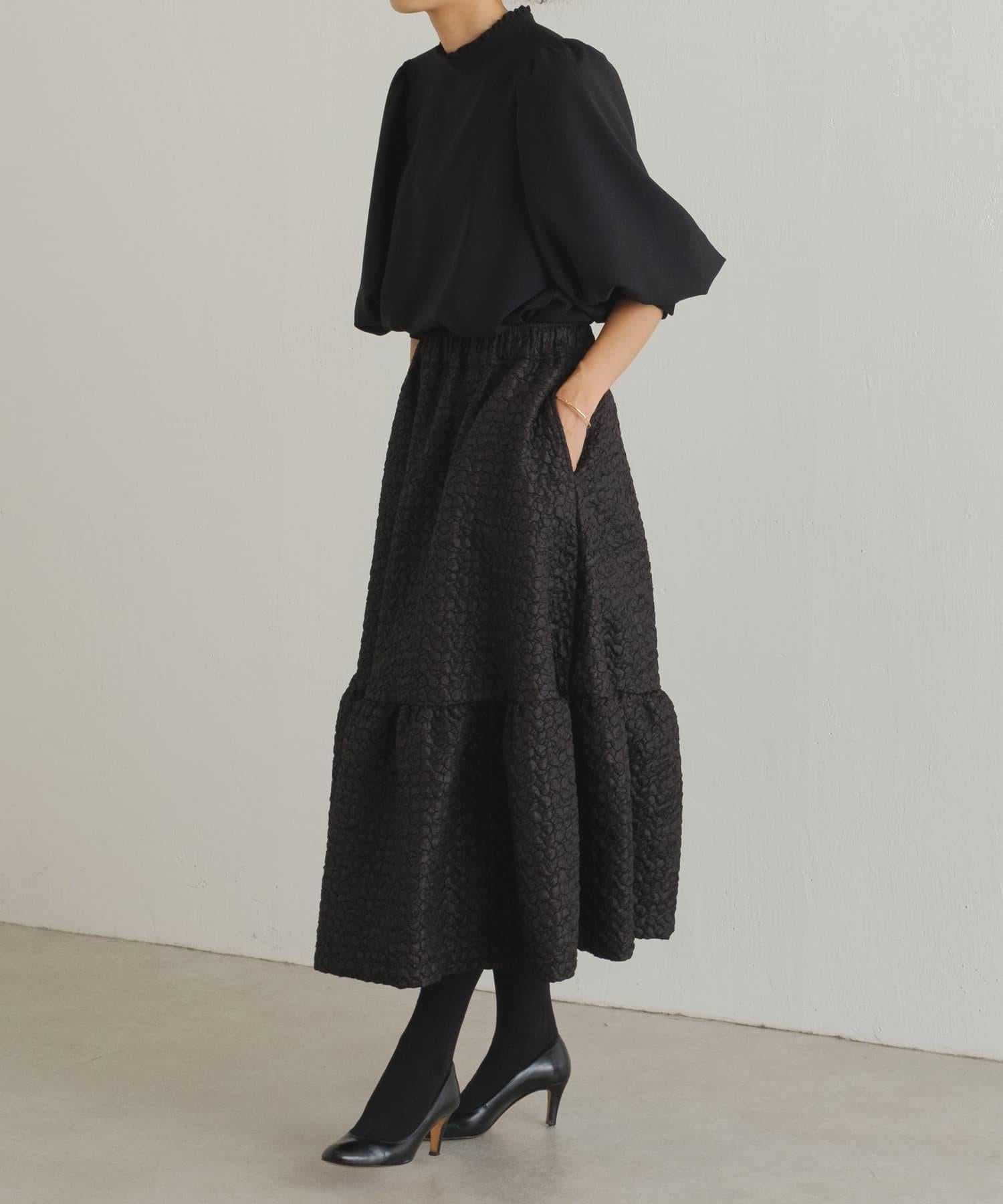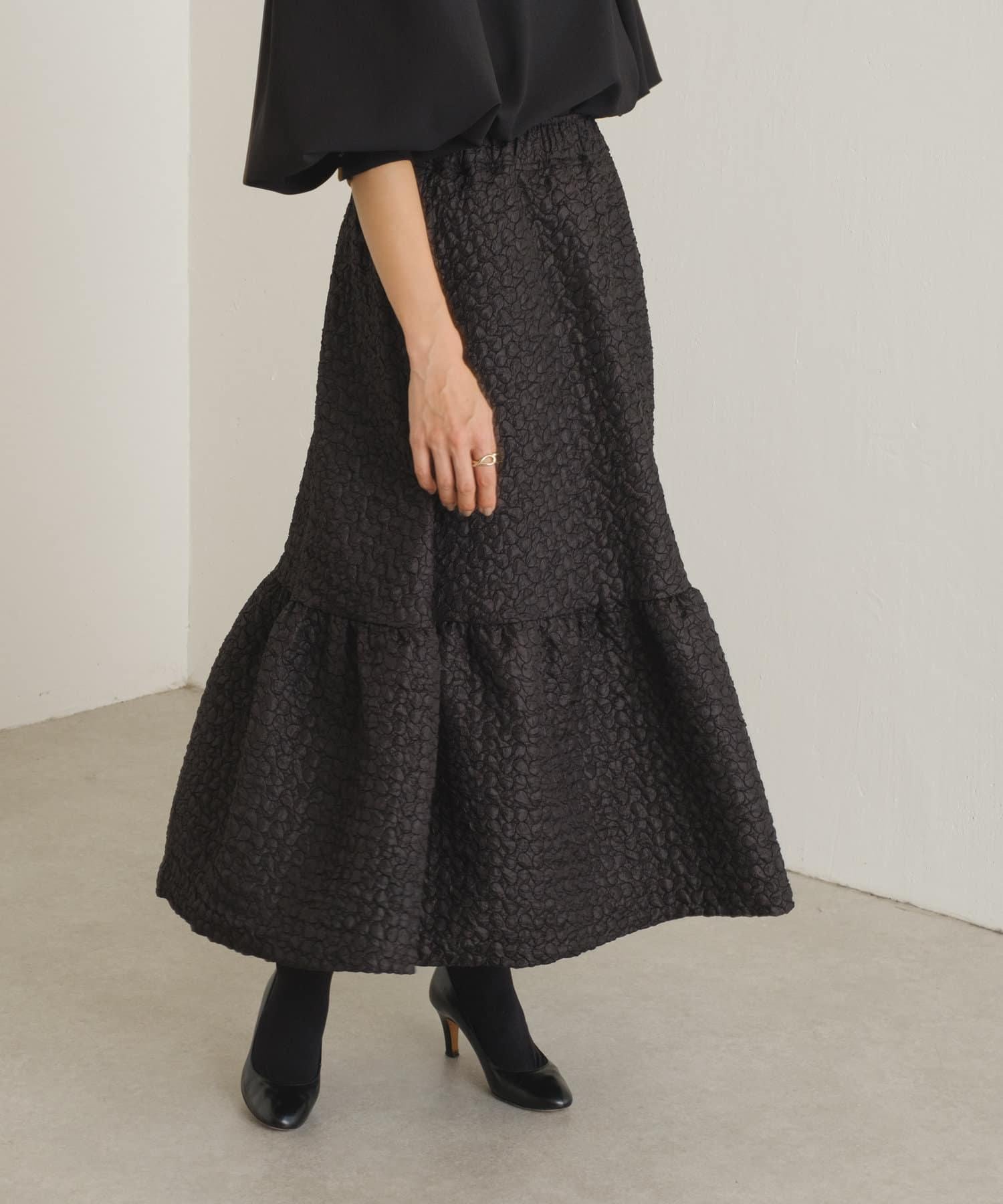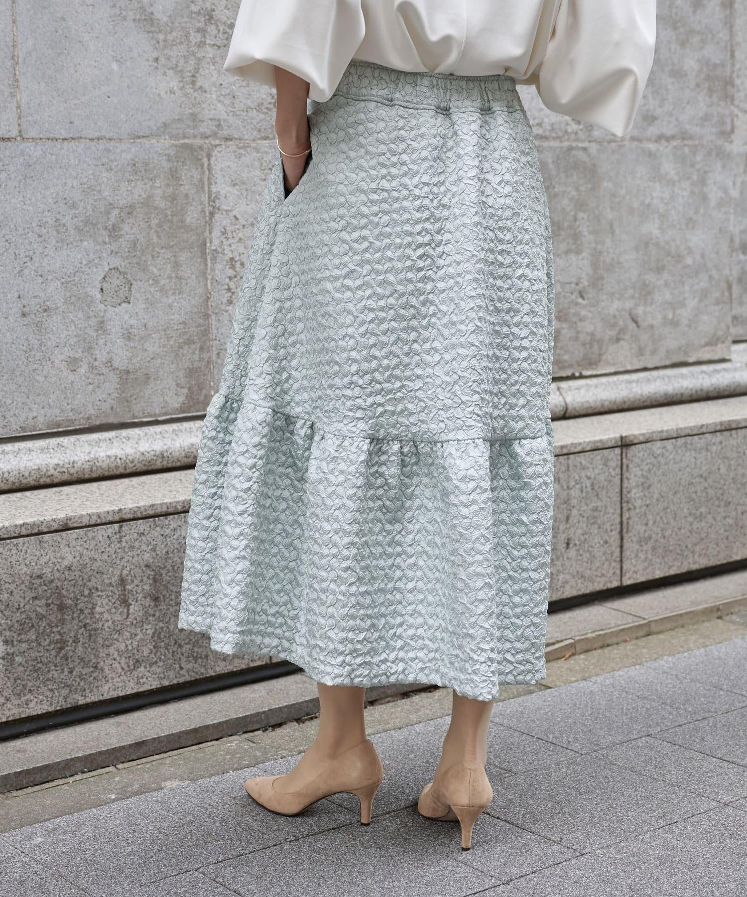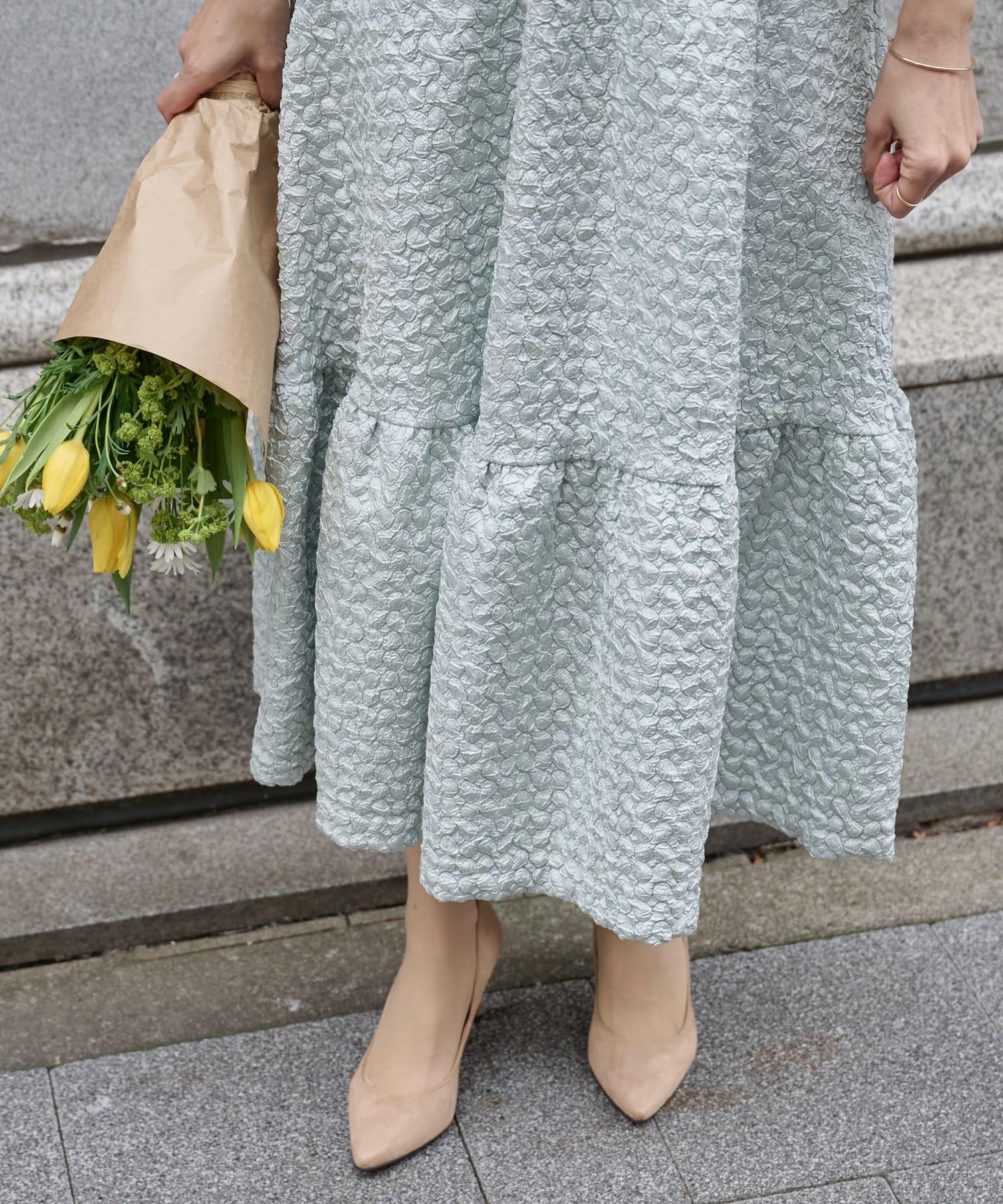 裙子採用具有令人印象深刻的 pokopoko 和凹凸紋理的面料製成。