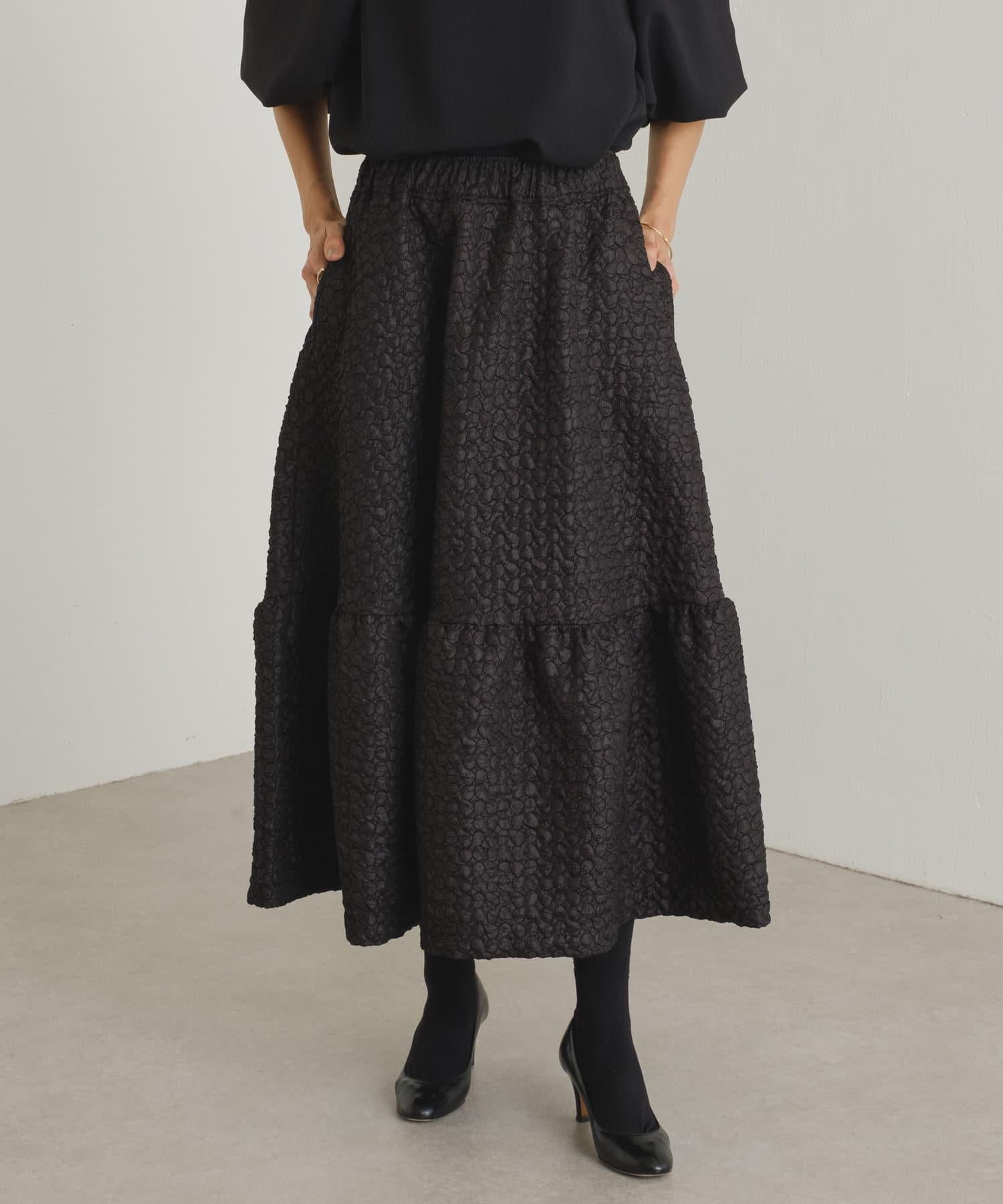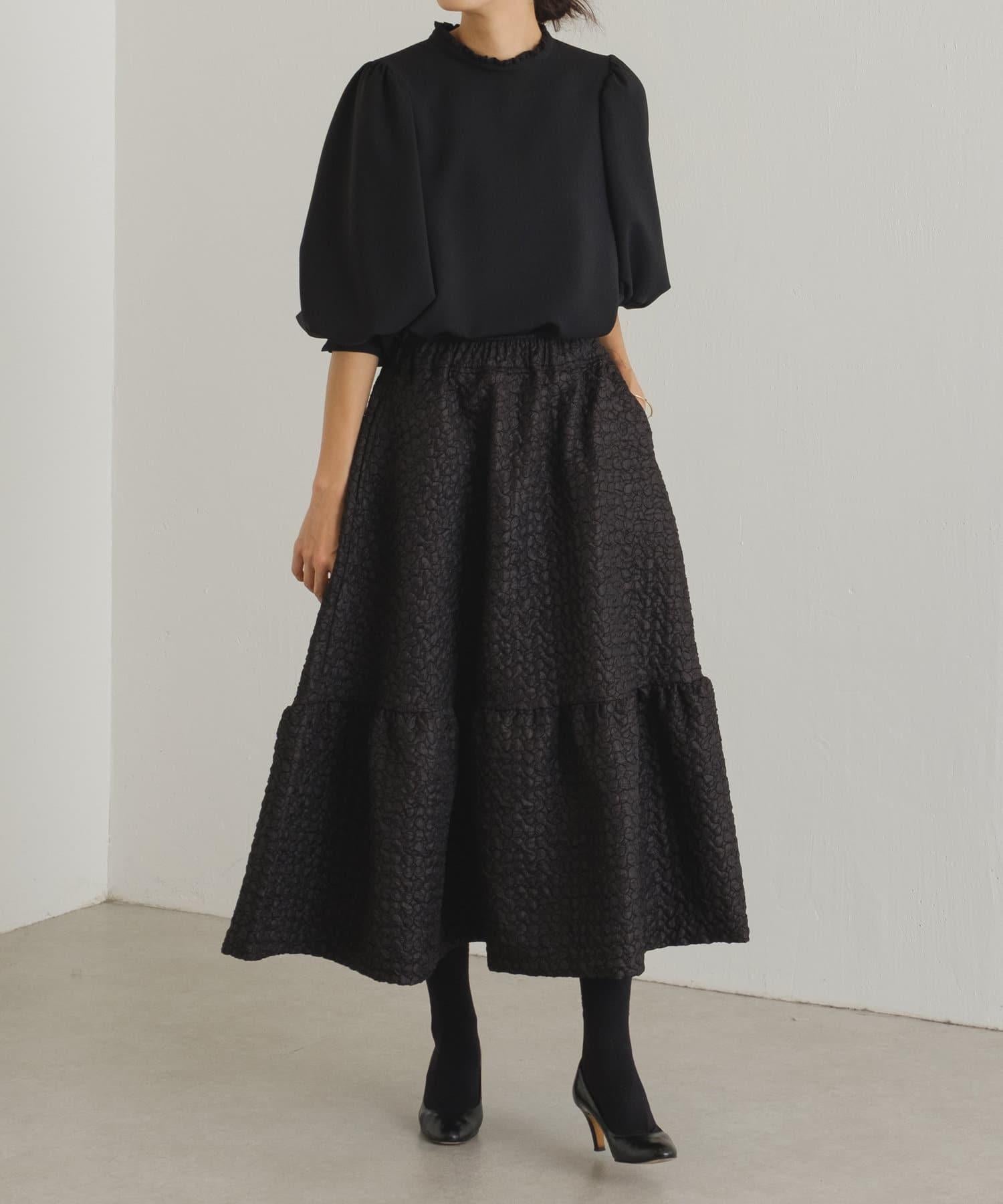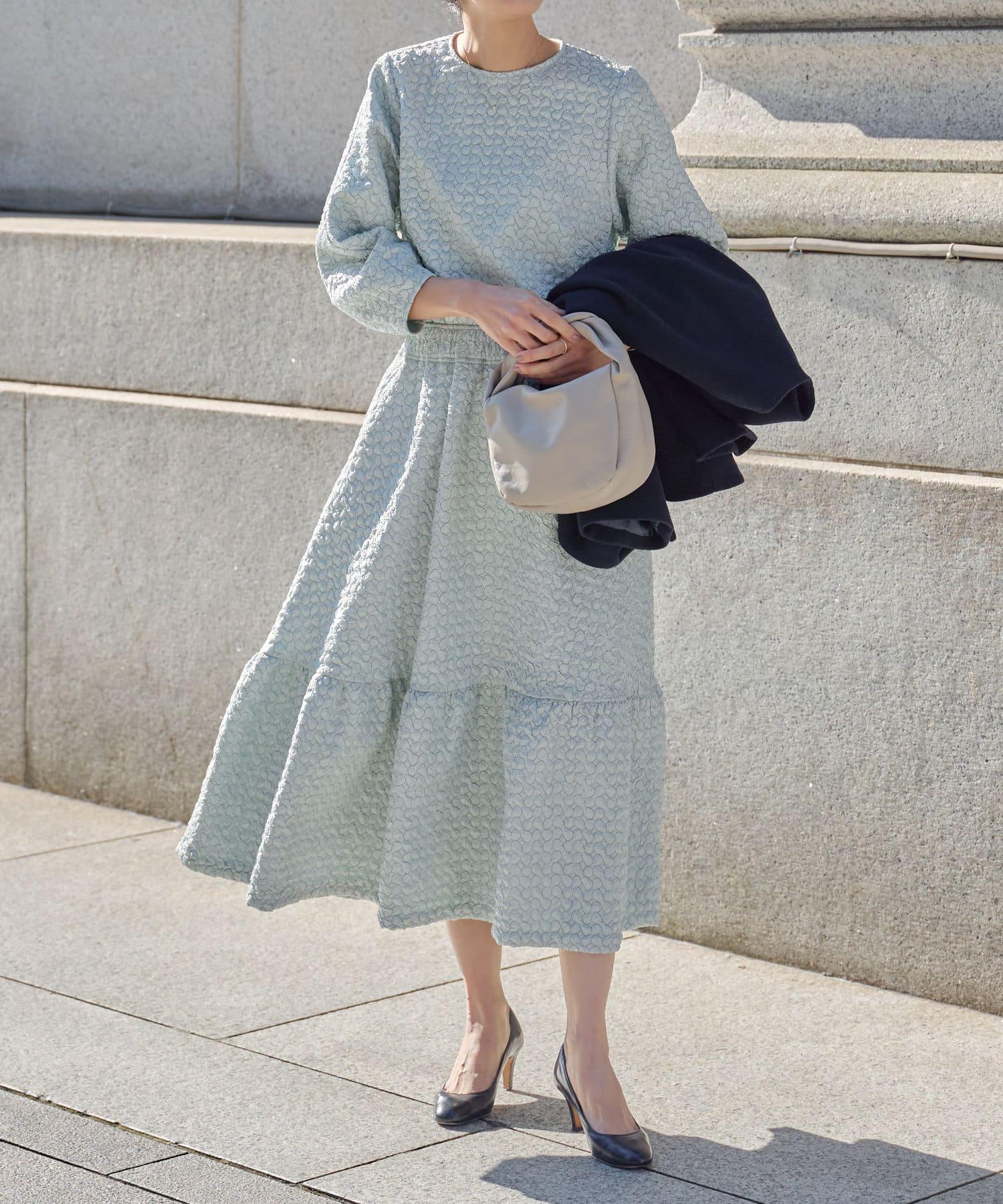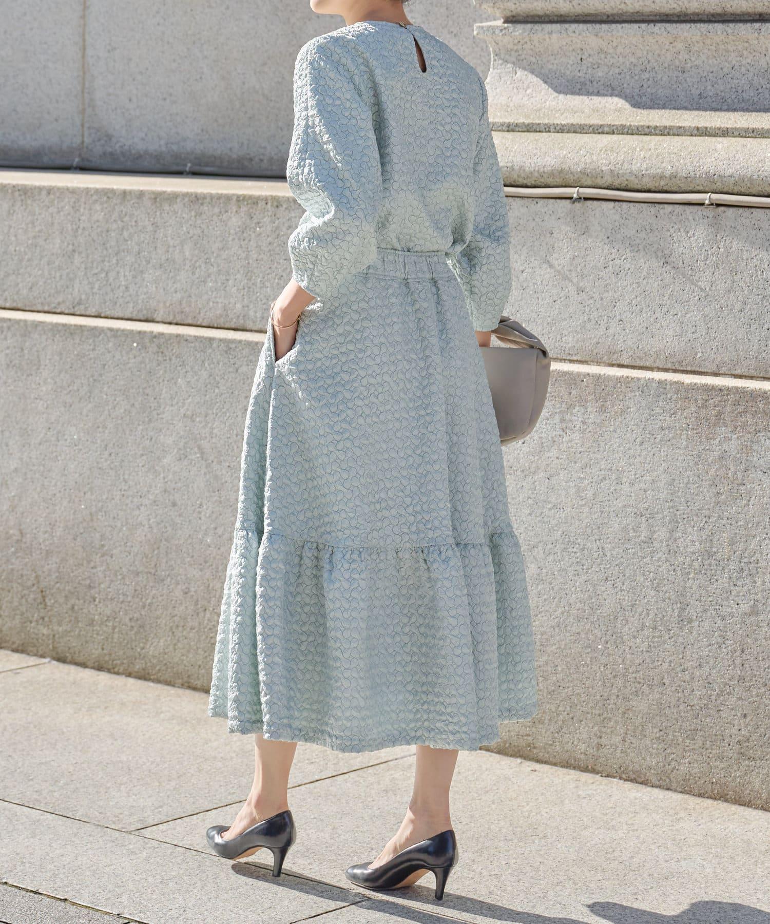 裙子採用具有令人印象深刻的 pokopoko 和凹凸紋理的面料製成。