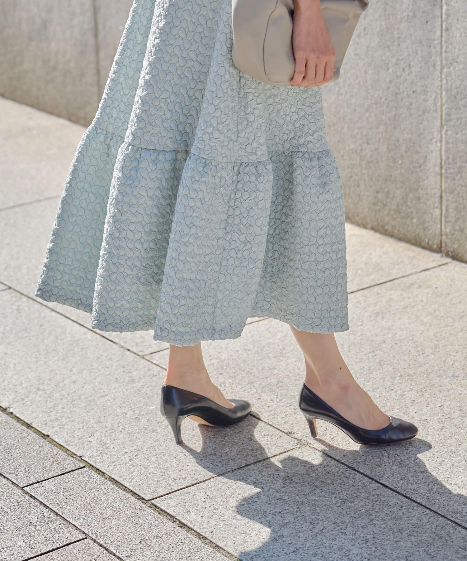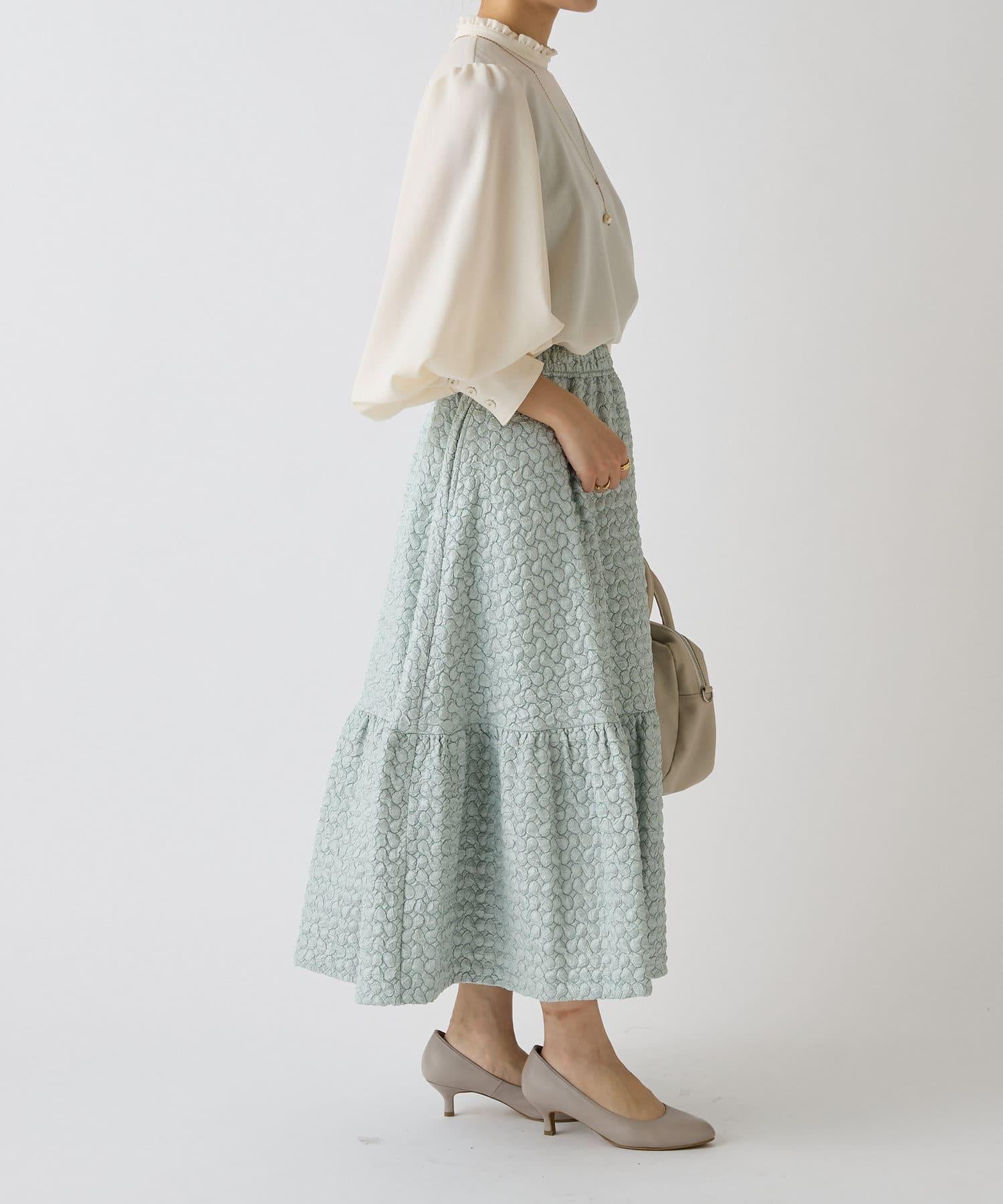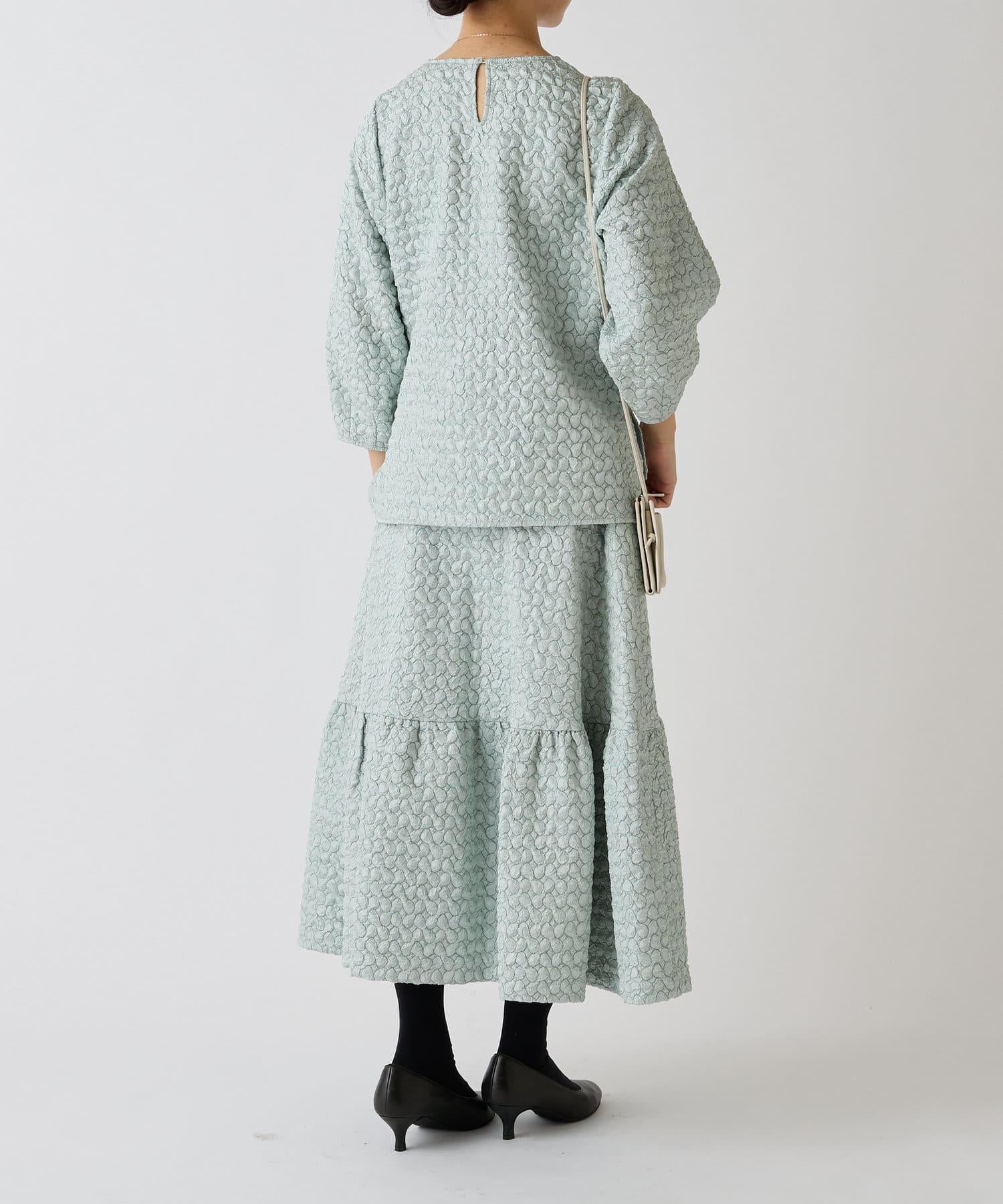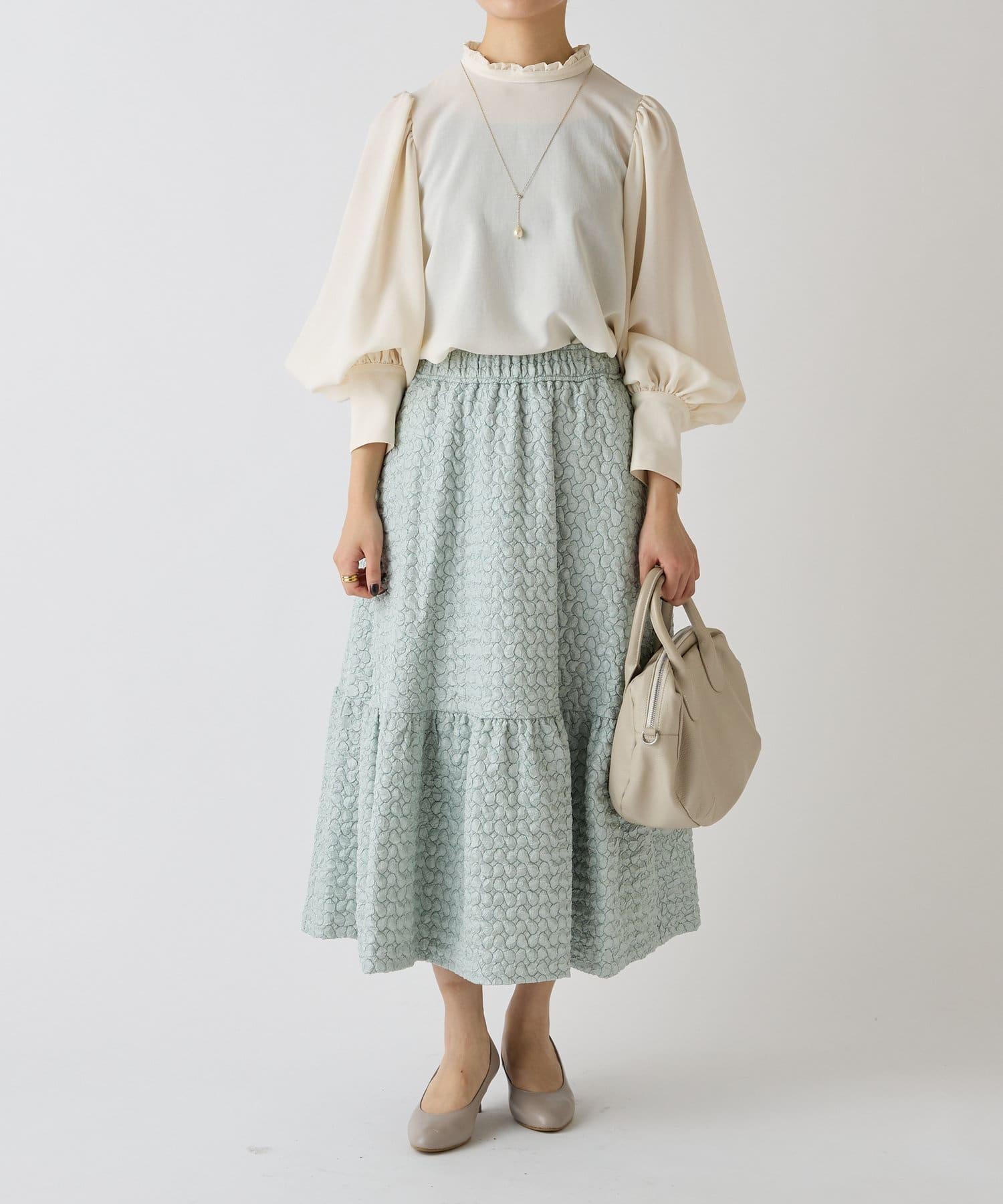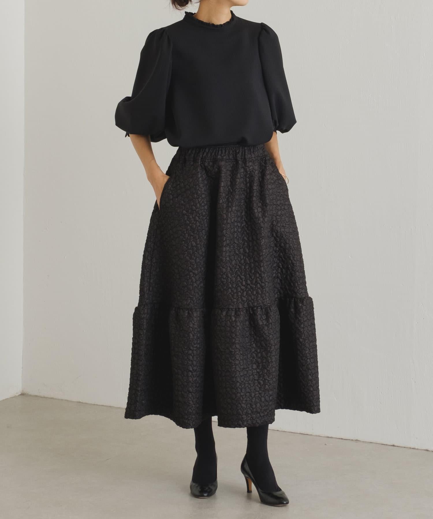 裙子採用具有令人印象深刻的 pokopoko 和凹凸紋理的面料製成。