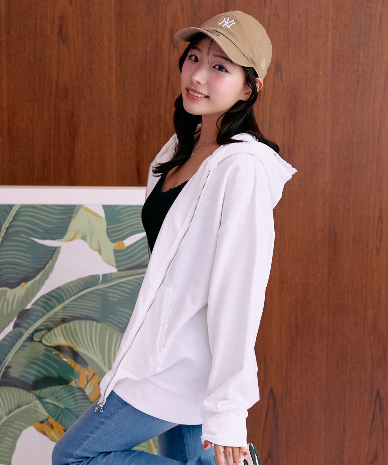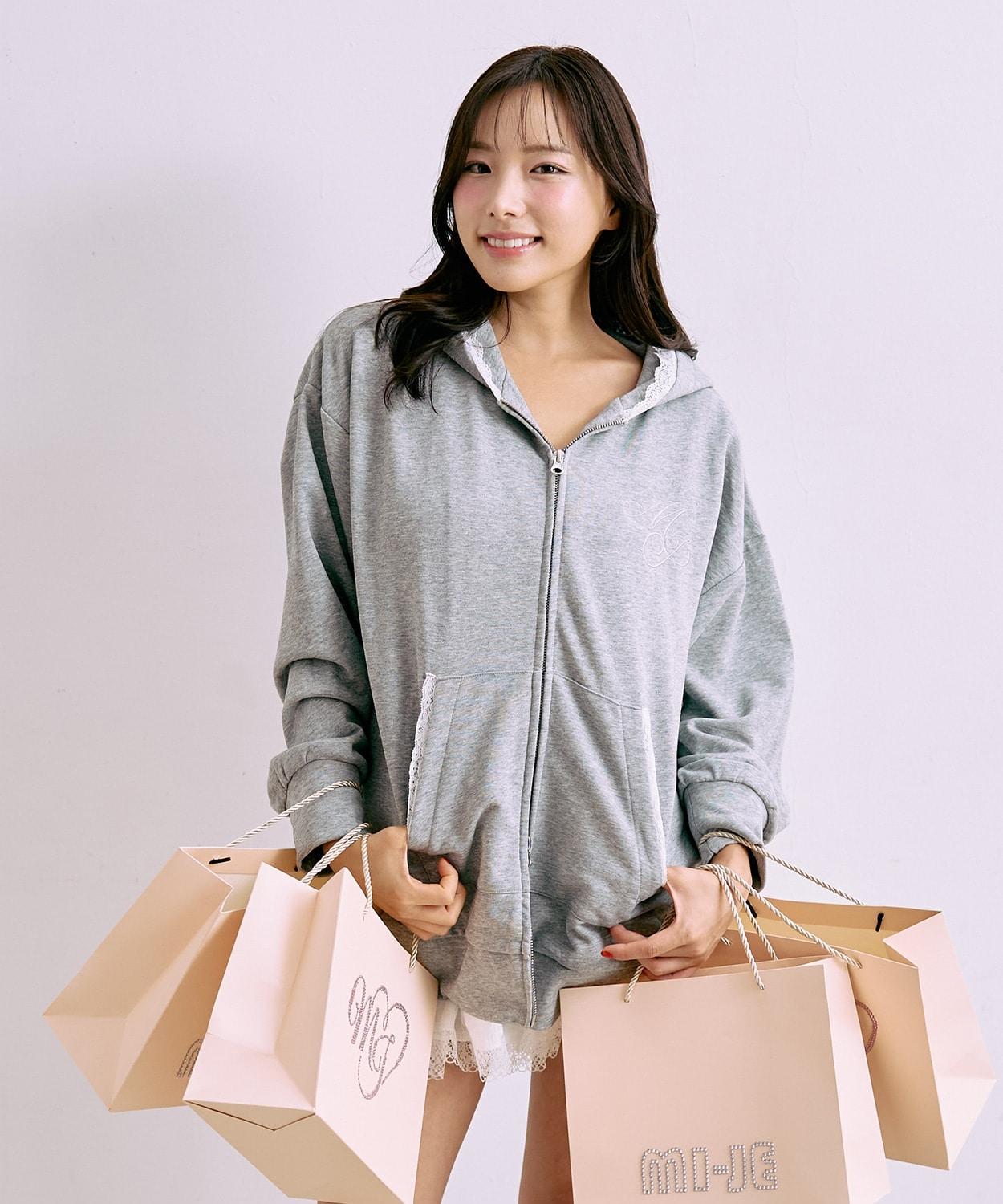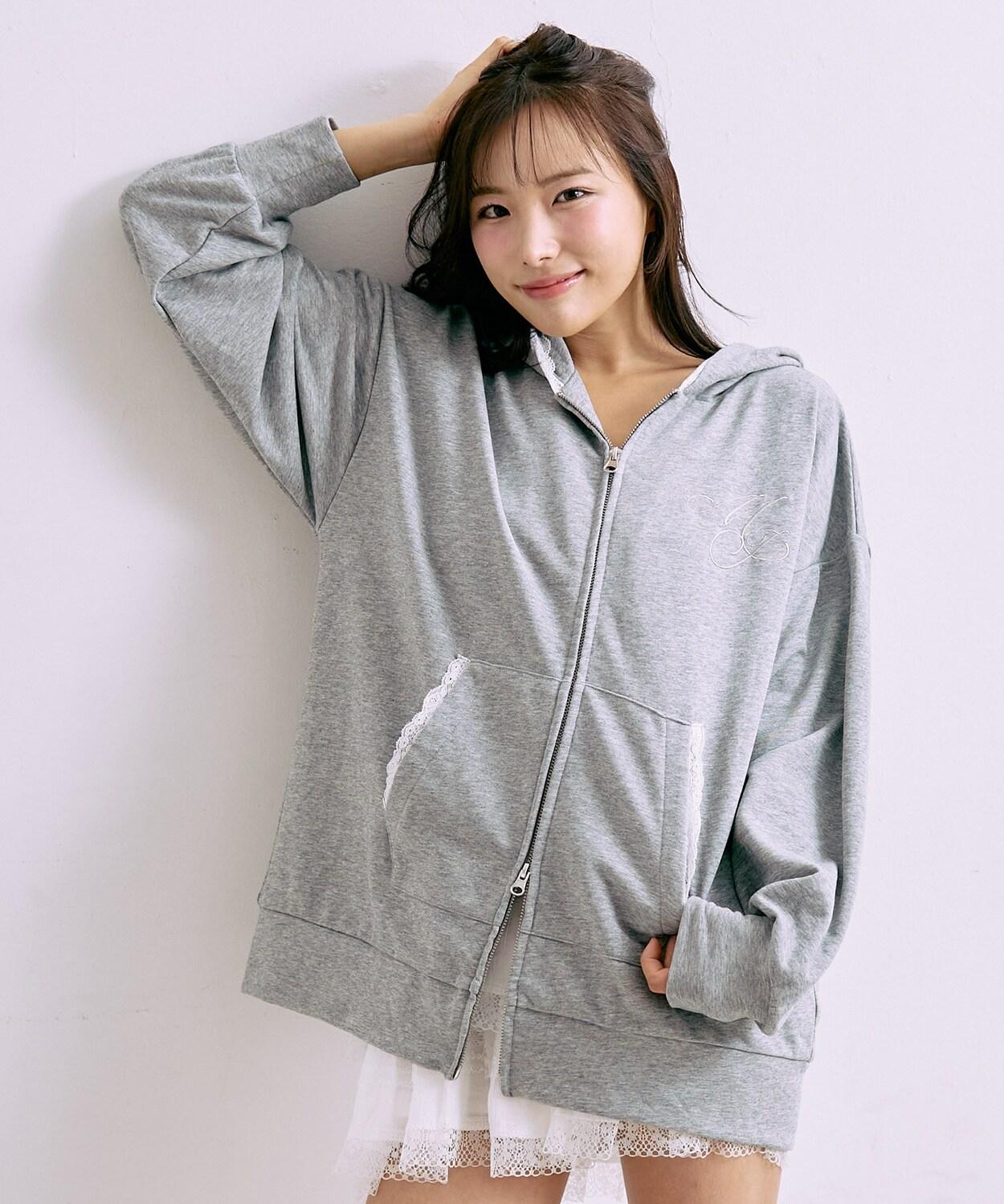 這是一款休閒單品,但胸前的刺繡和蕾絲花邊增添了一絲甜美氣息♪這款單品採用輕便的內襯材質,穿著非常舒適! 口袋和兜帽上的蕾絲設計,在羊毛內襯材質的休閒印象中增添了韓式少女感! 長款也建議像迷你長裙一樣穿著。