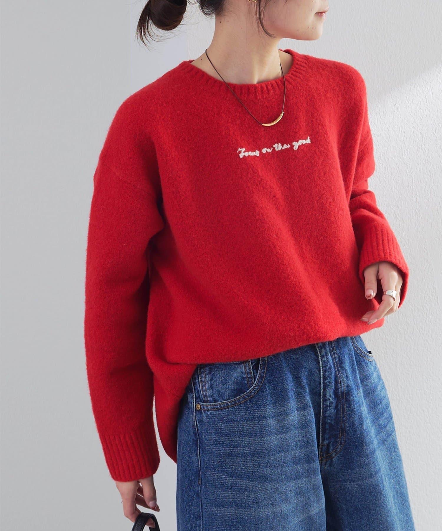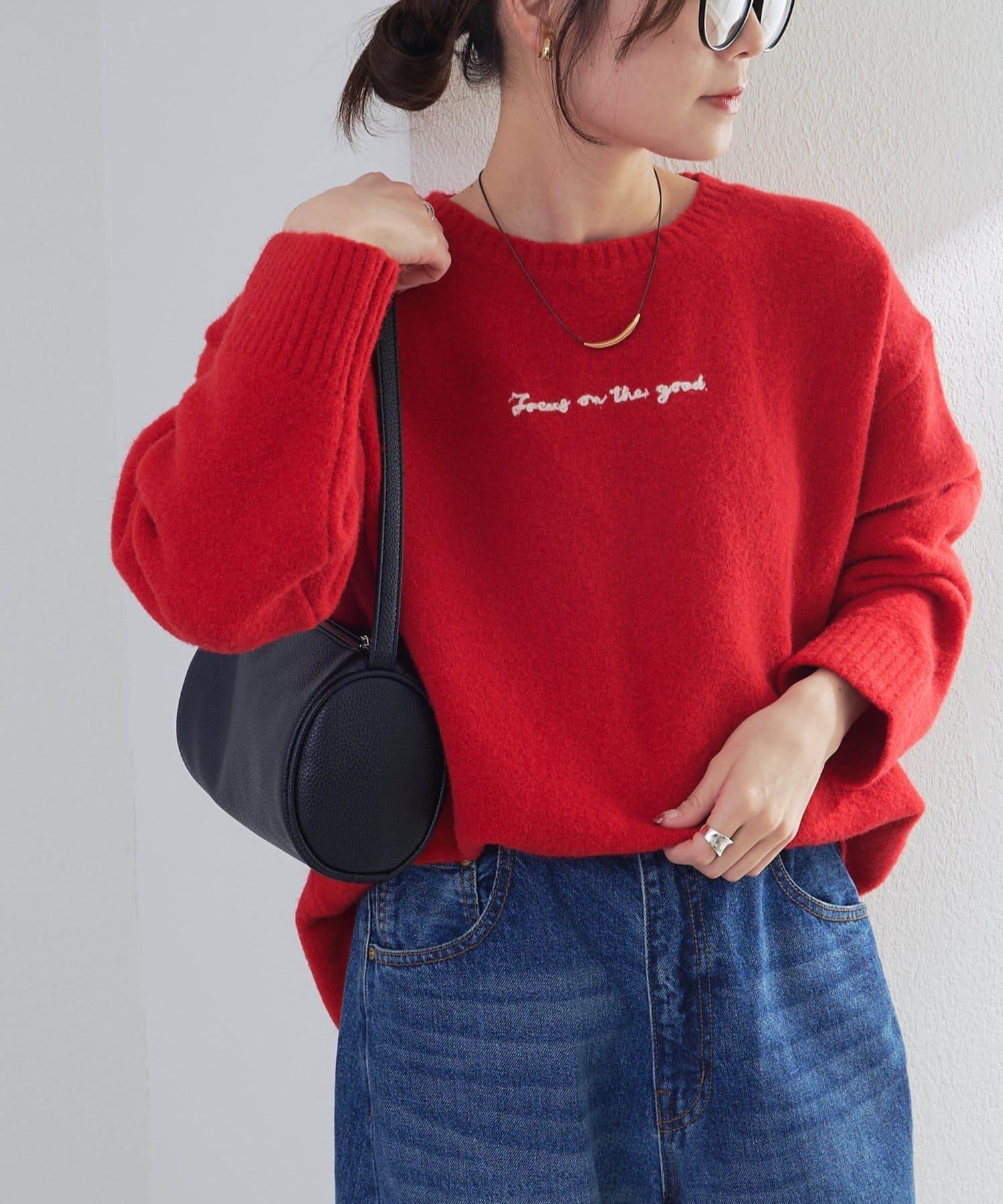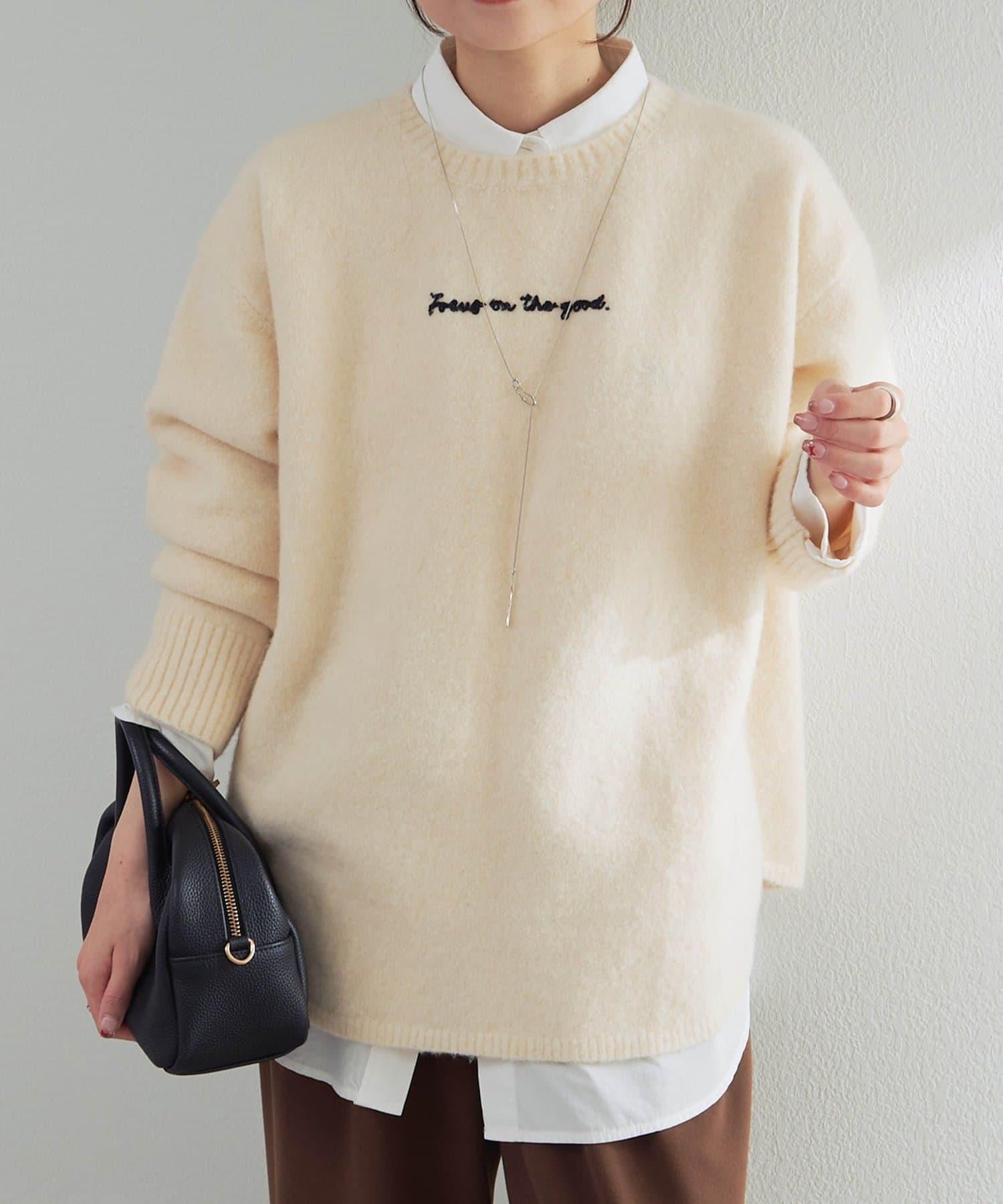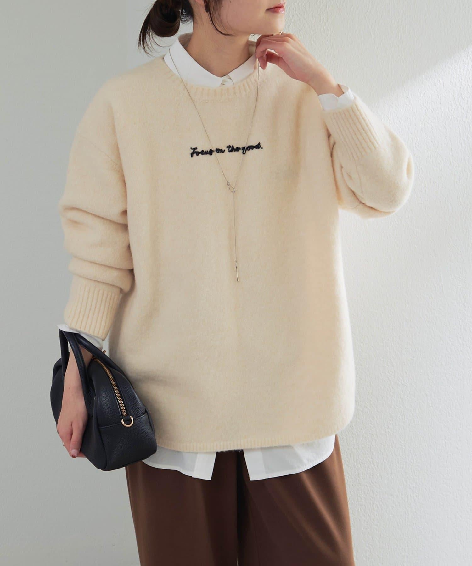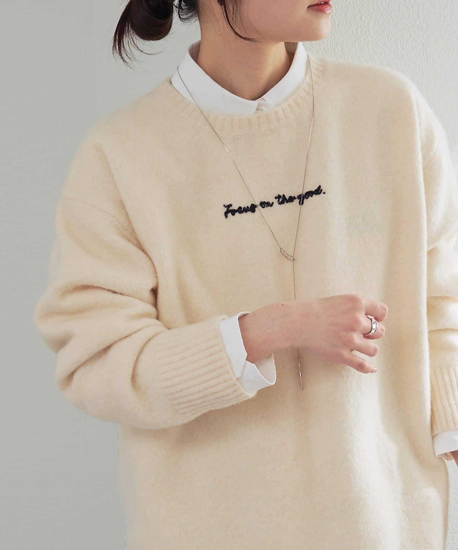 配色刺繡是大人的可愛點綴!簡單易穿的套頭針織衫◇