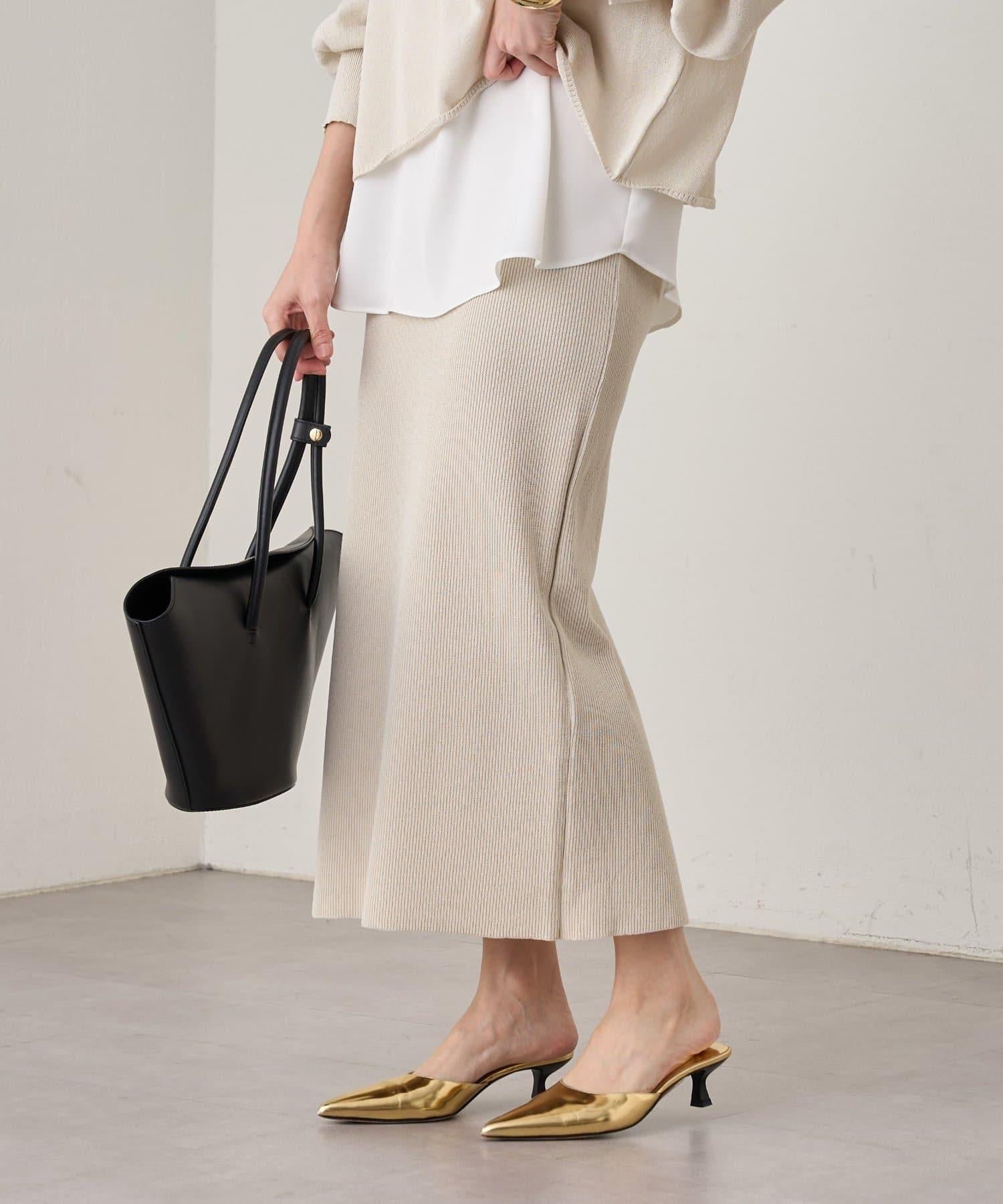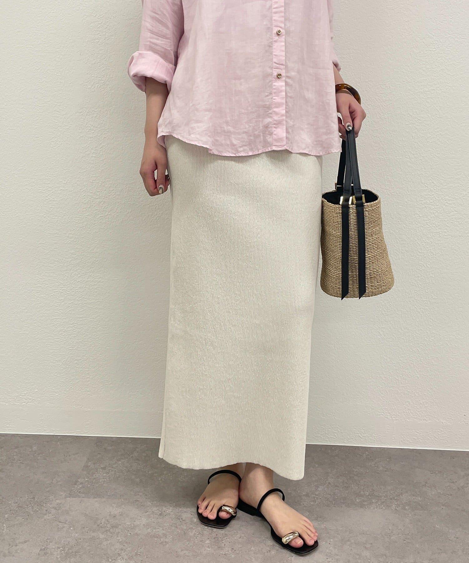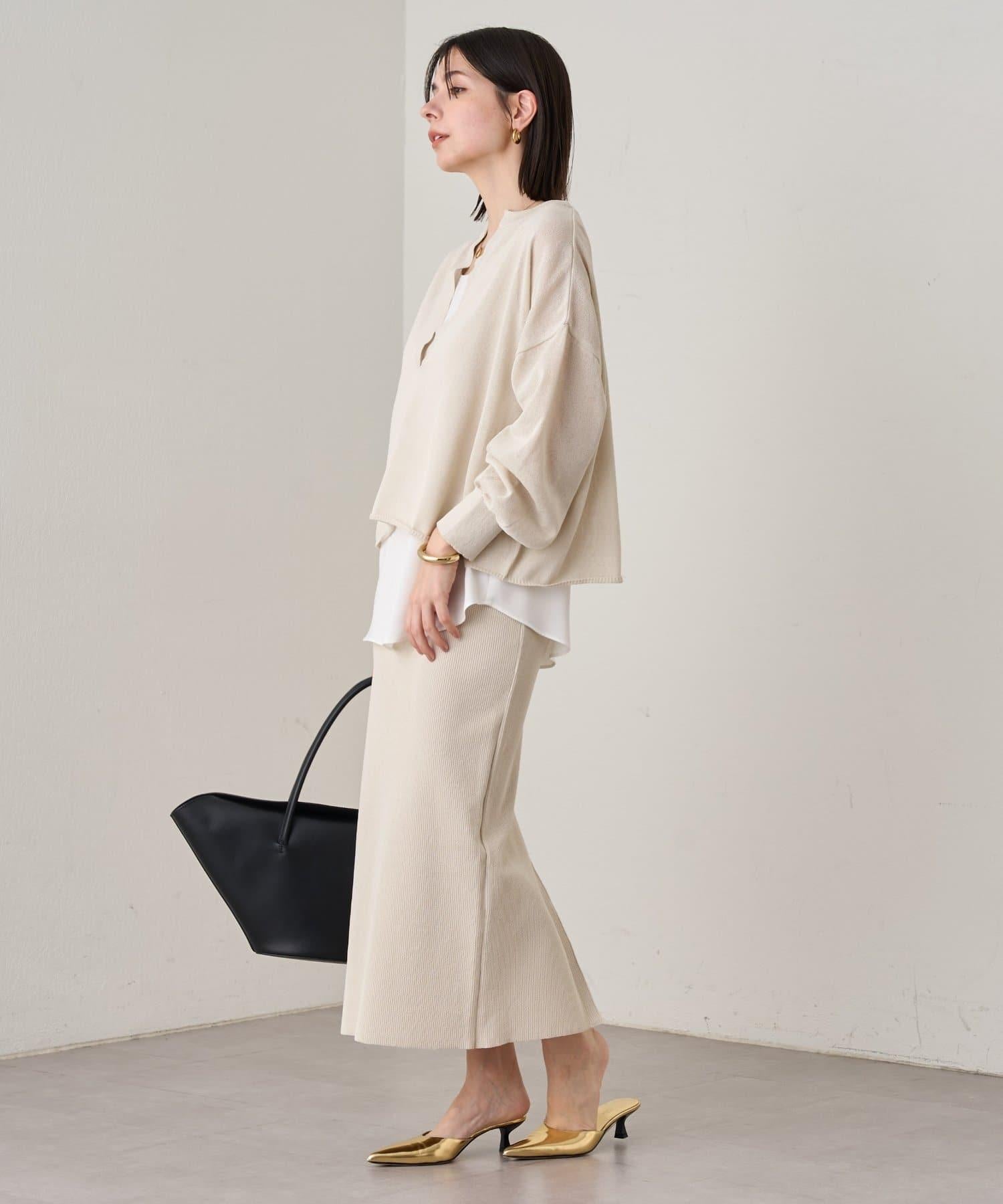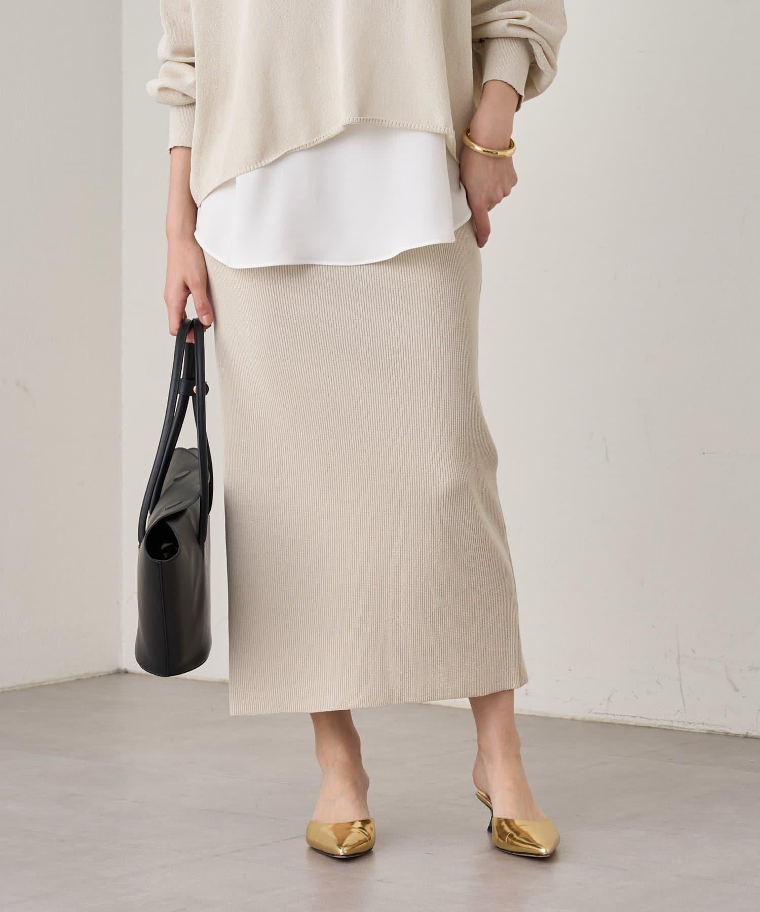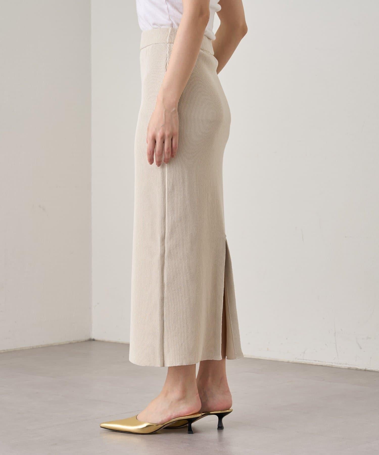 縱向線條得到強調,可望產生提升風格的效果。不平整的肋條紋理讓這款裙子看起來簡潔而富有表現力。