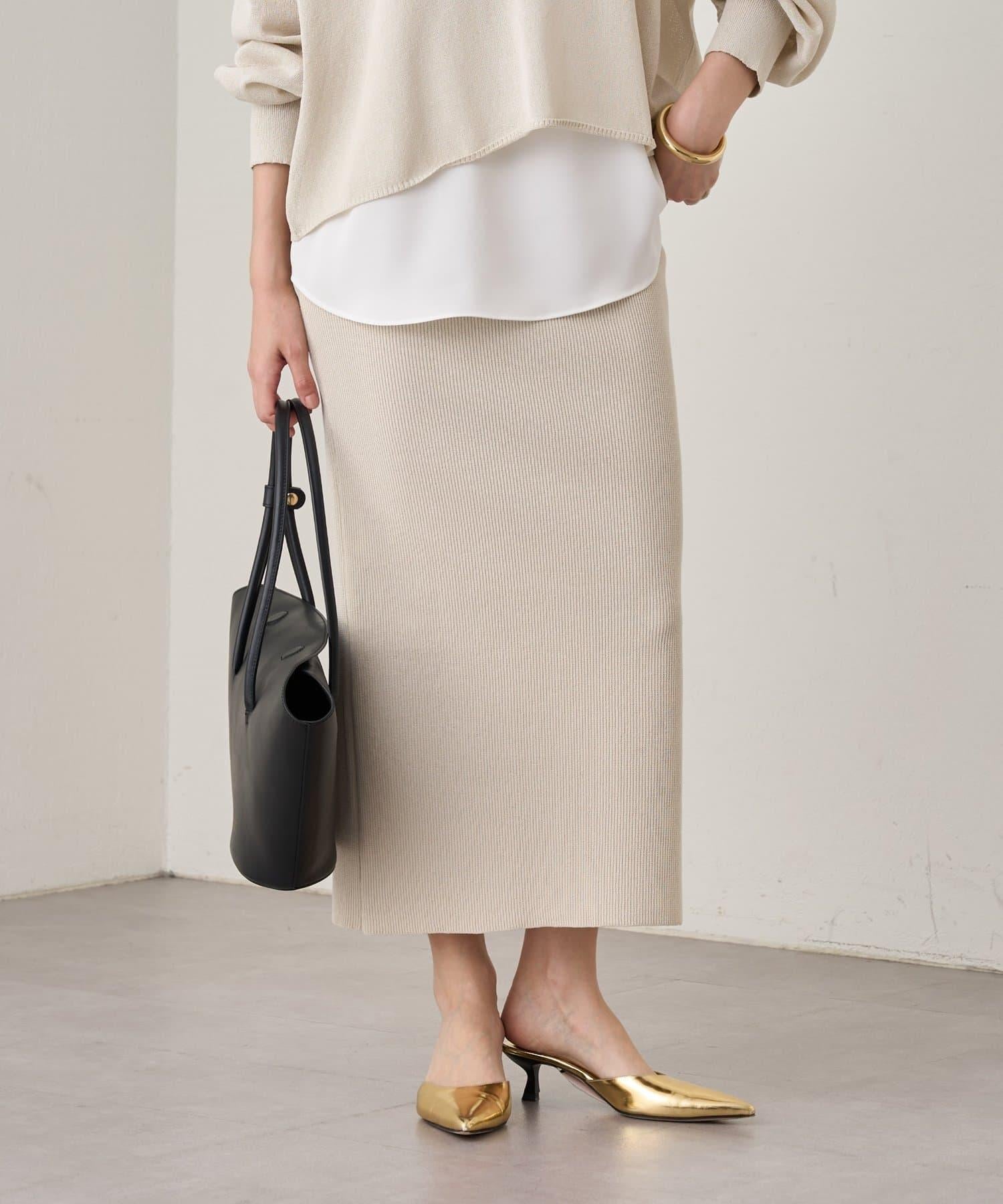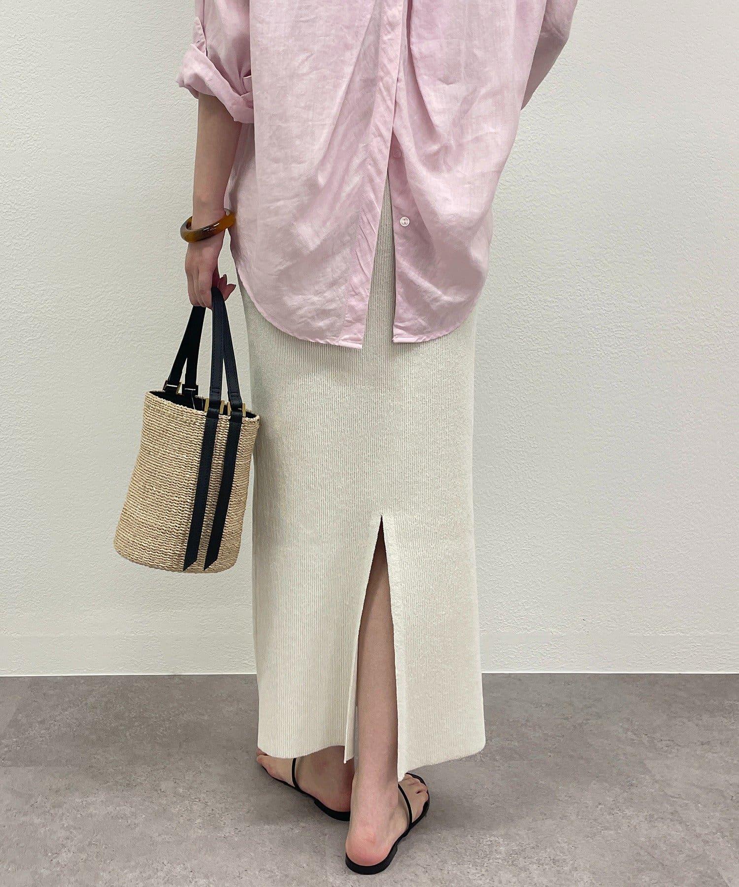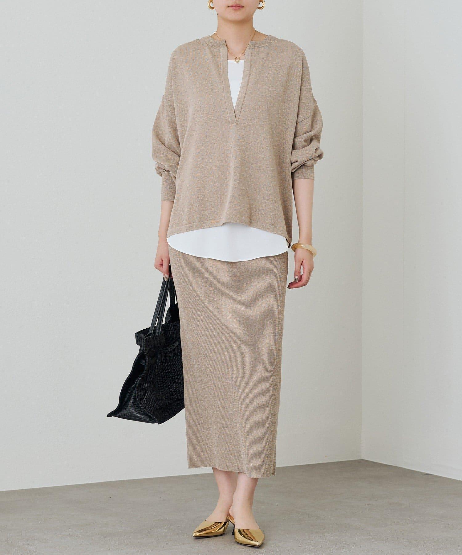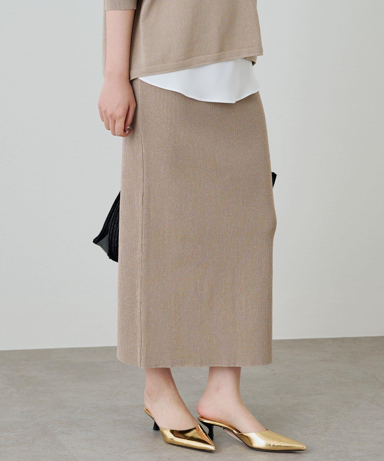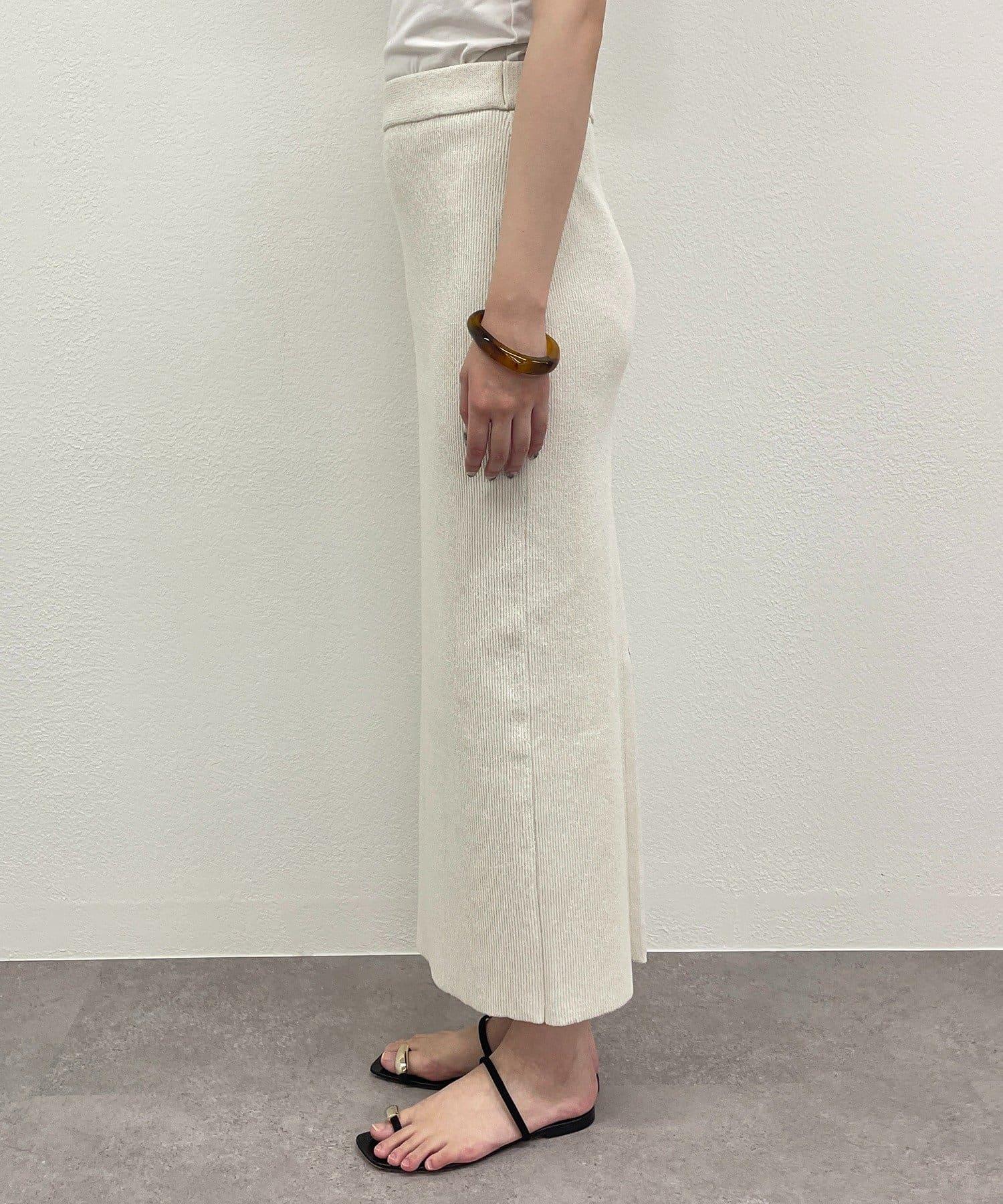 縱向線條得到強調,可望產生提升風格的效果。不平整的肋條紋理讓這款裙子看起來簡潔而富有表現力。