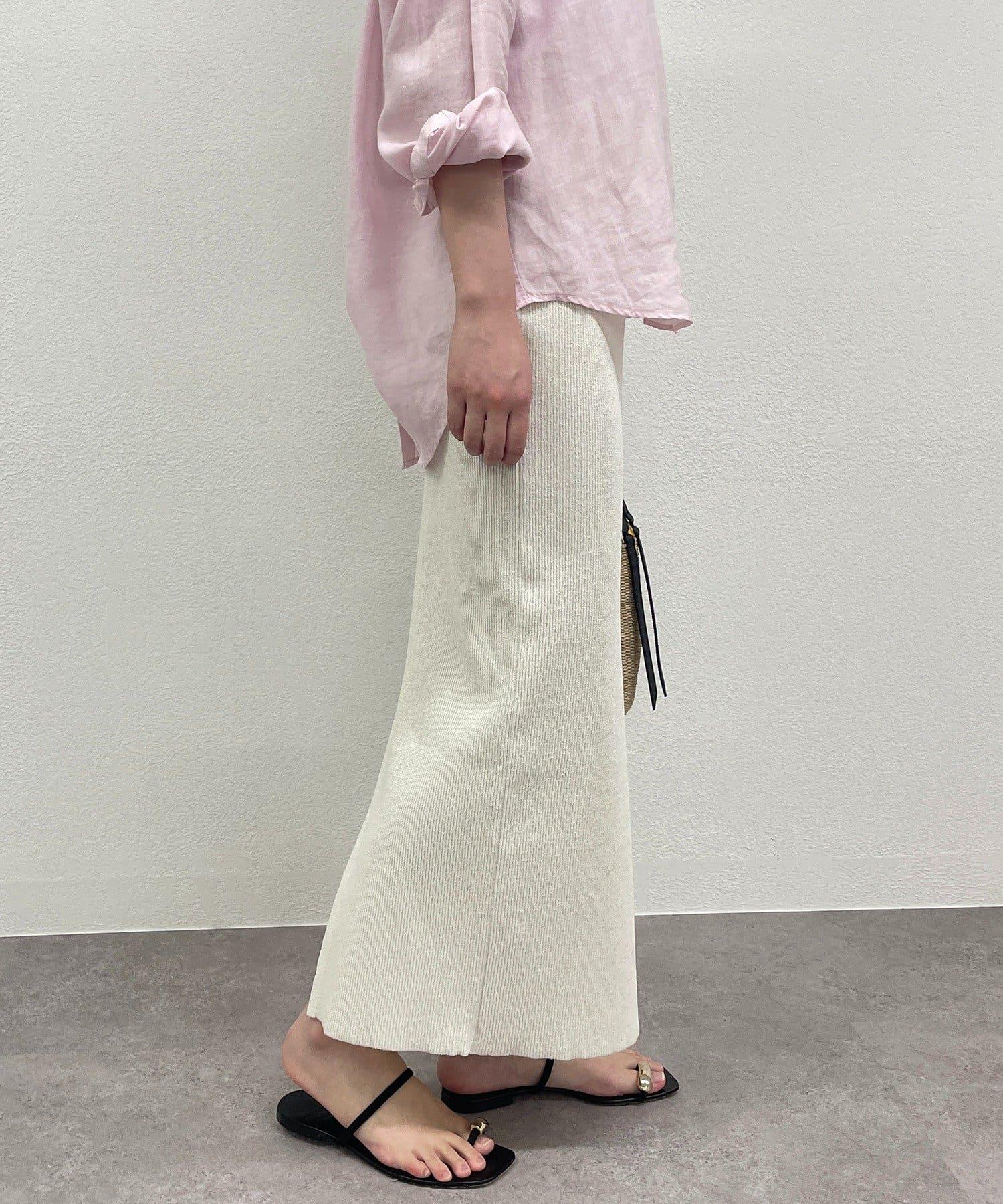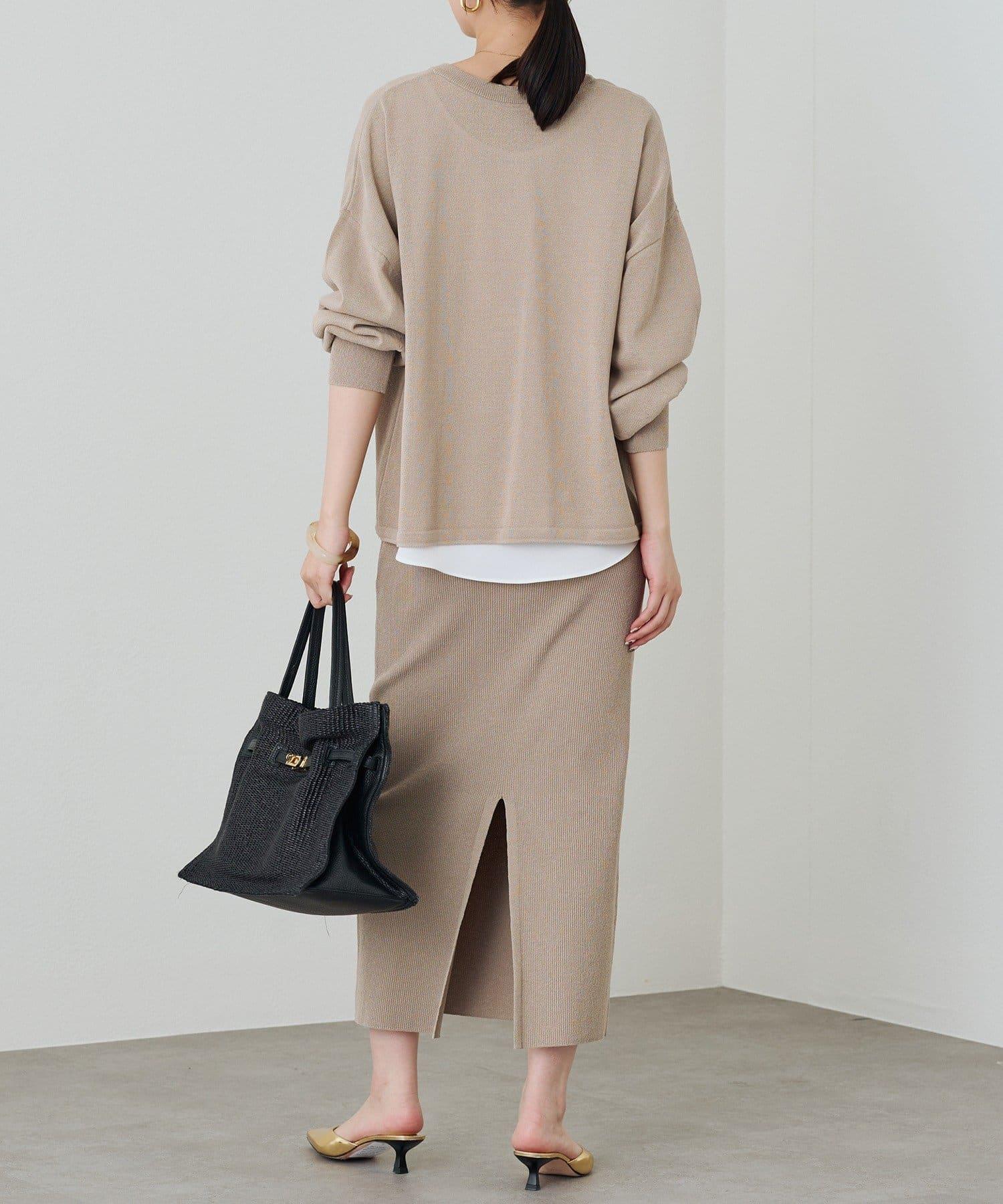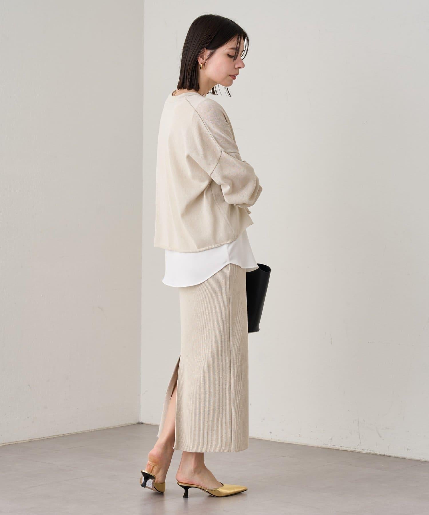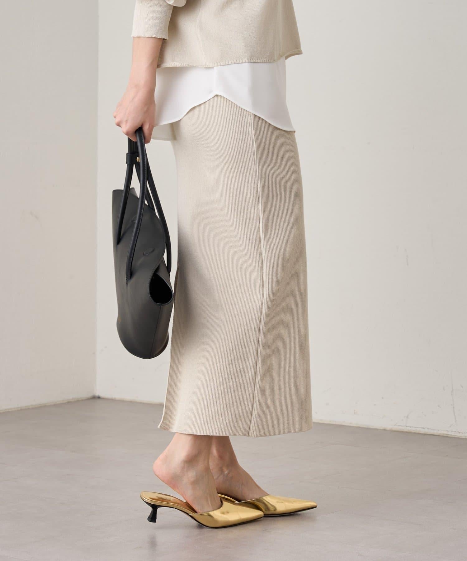 縱向線條得到強調,可望產生提升風格的效果。不平整的肋條紋理讓這款裙子看起來簡潔而富有表現力。