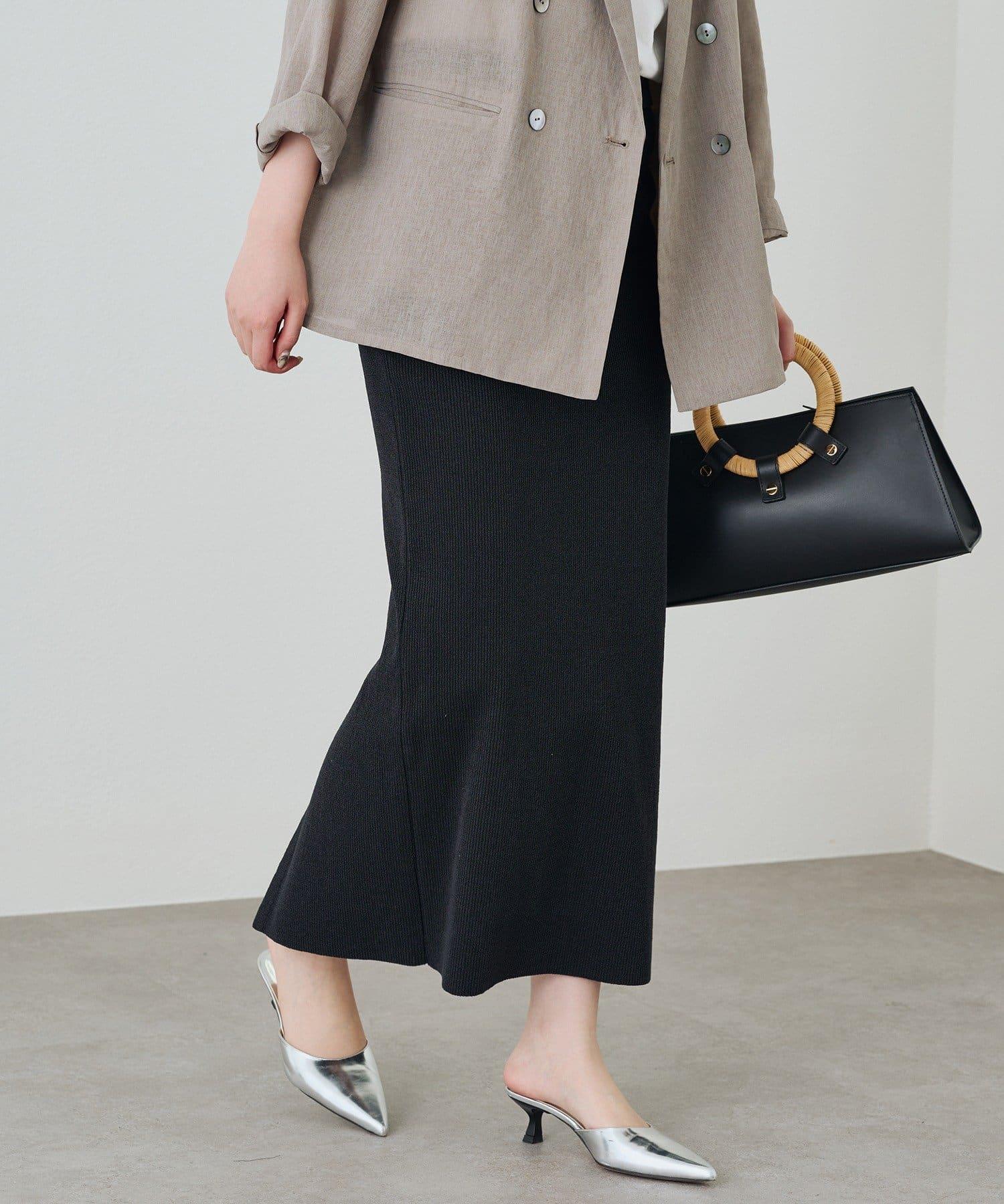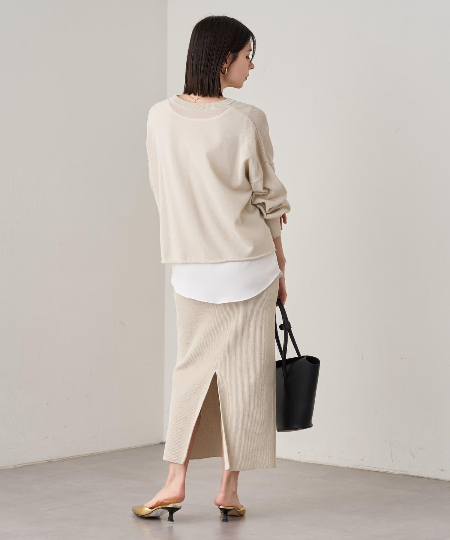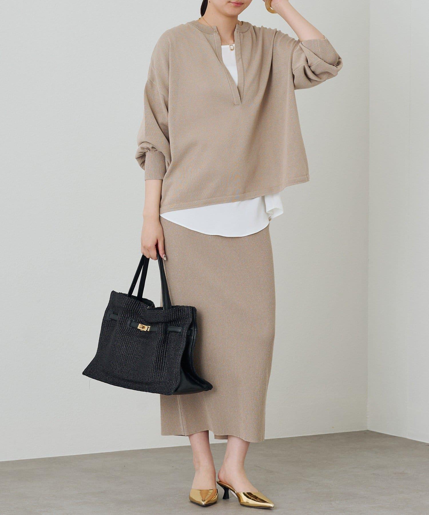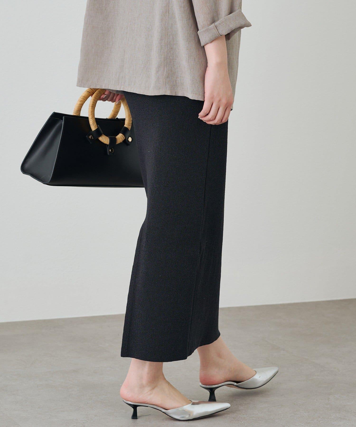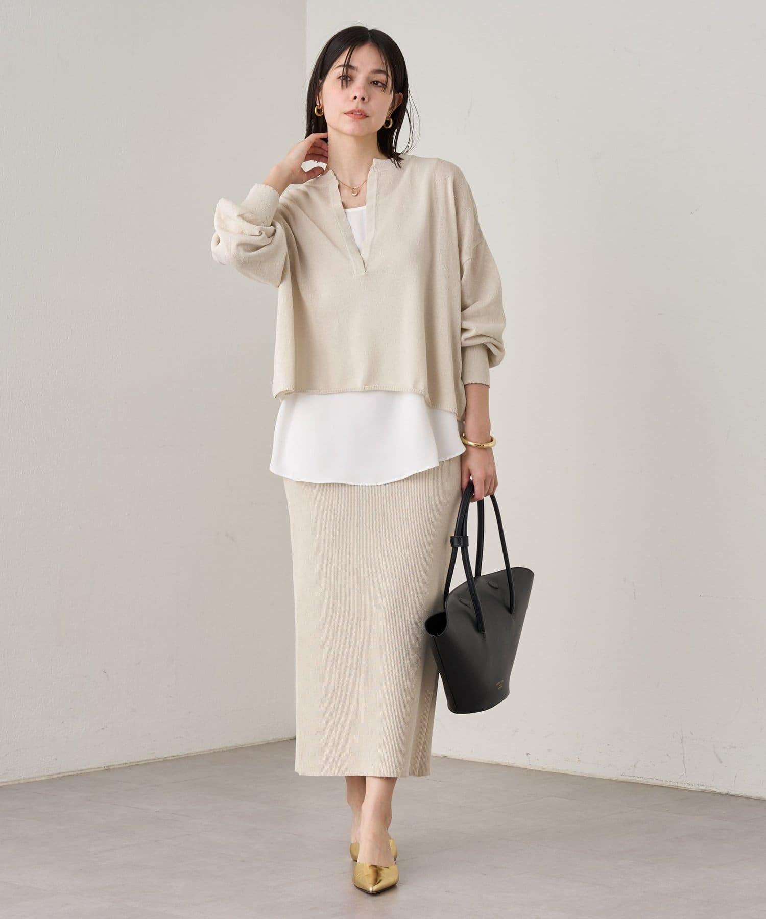 縱向線條得到強調,可望產生提升風格的效果。不平整的肋條紋理讓這款裙子看起來簡潔而富有表現力。