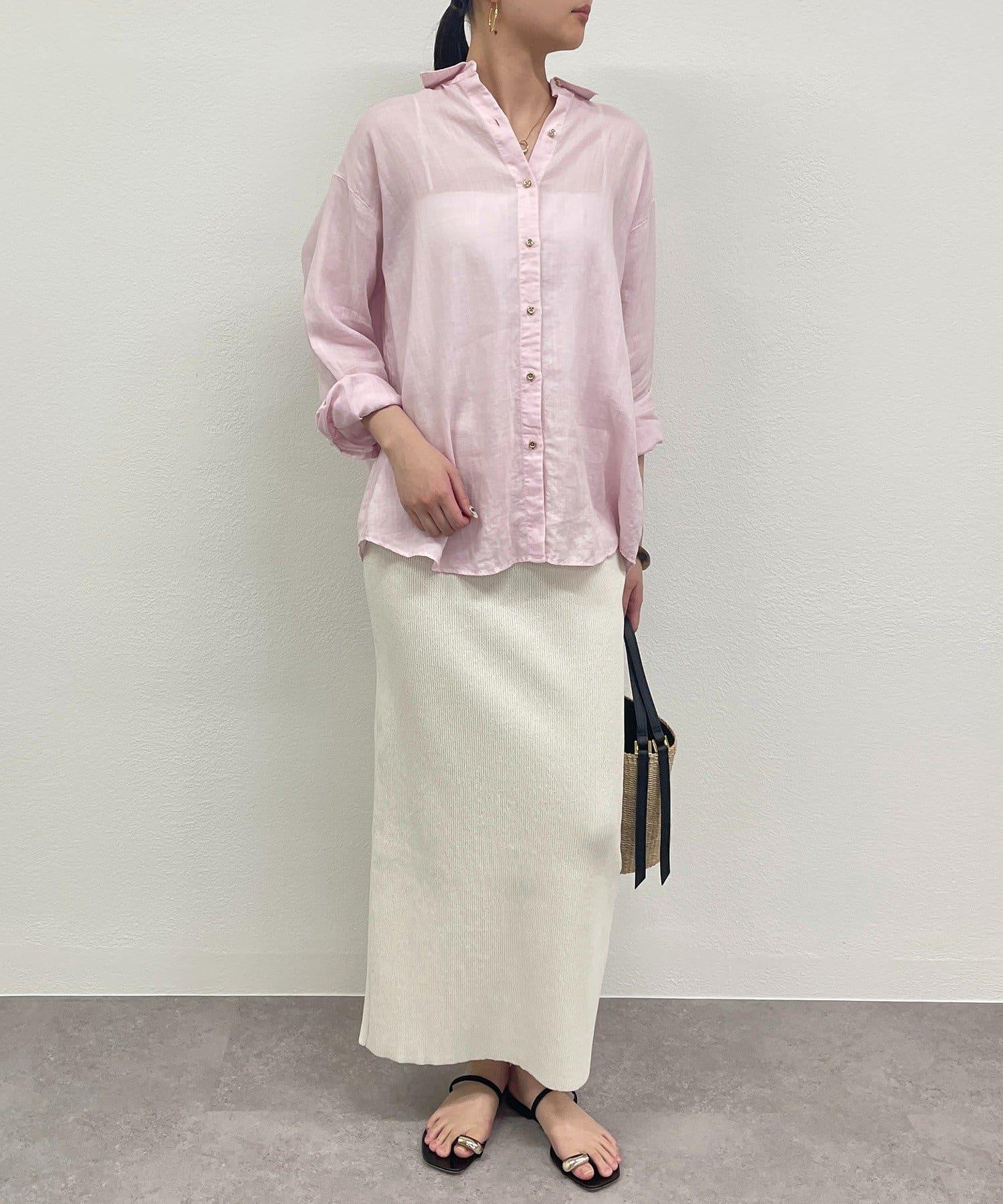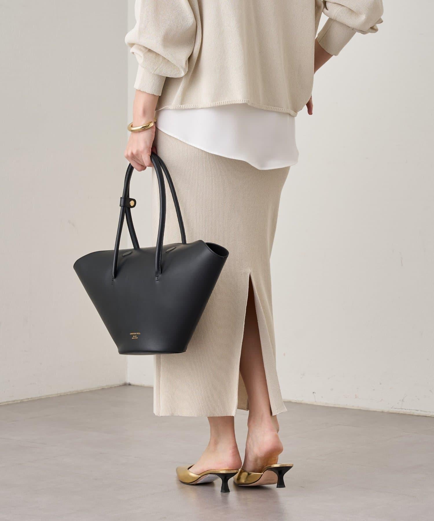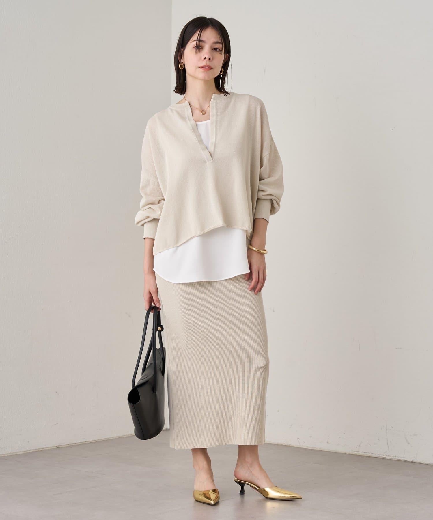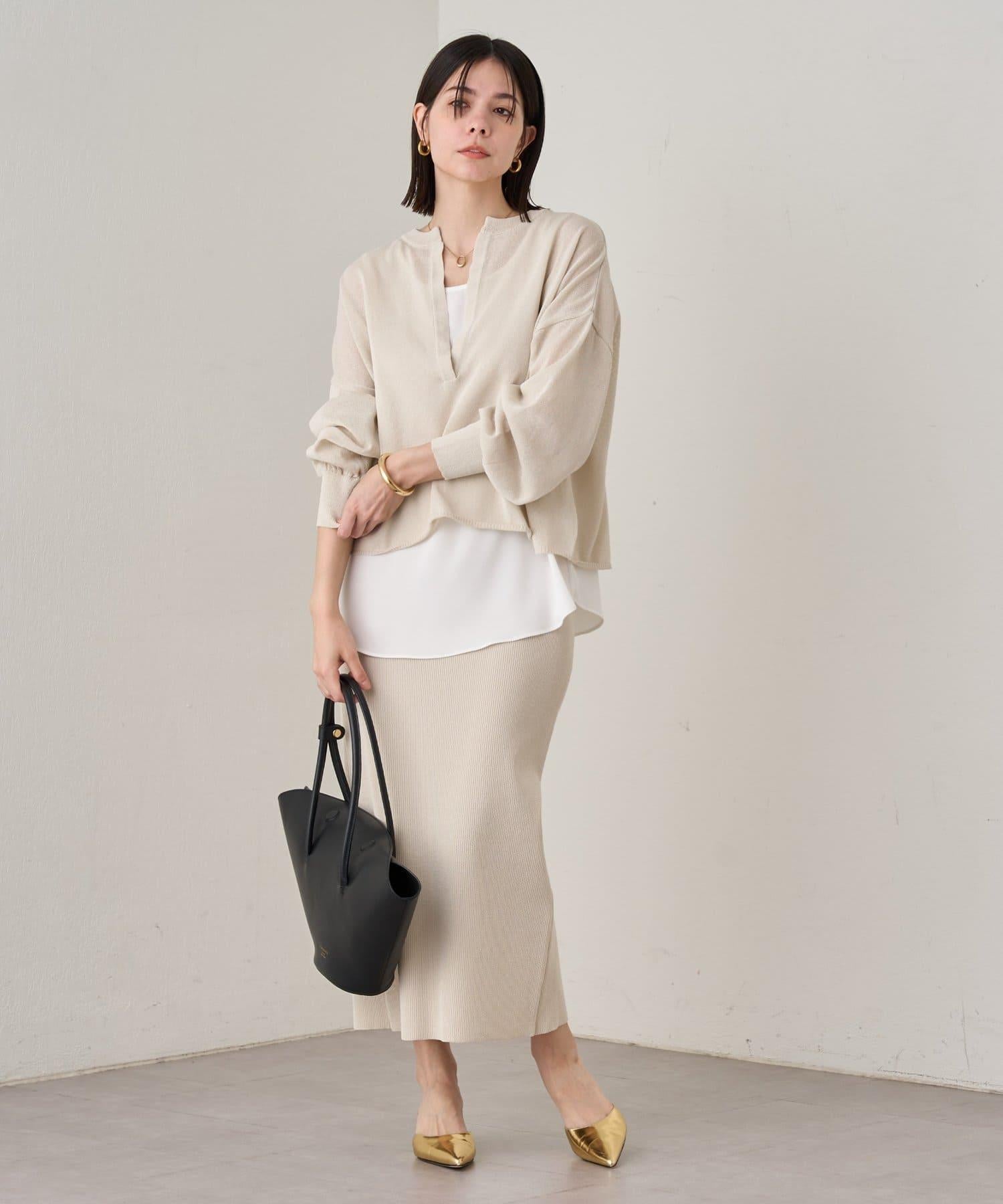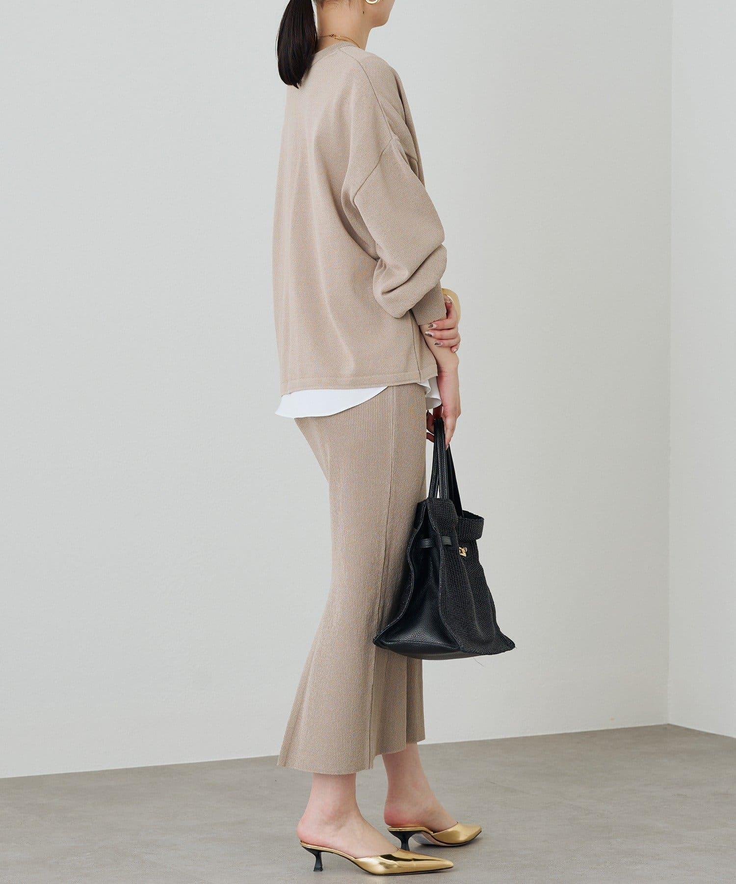縱向線條得到強調,可望產生提升風格的效果。不平整的肋條紋理讓這款裙子看起來簡潔而富有表現力。