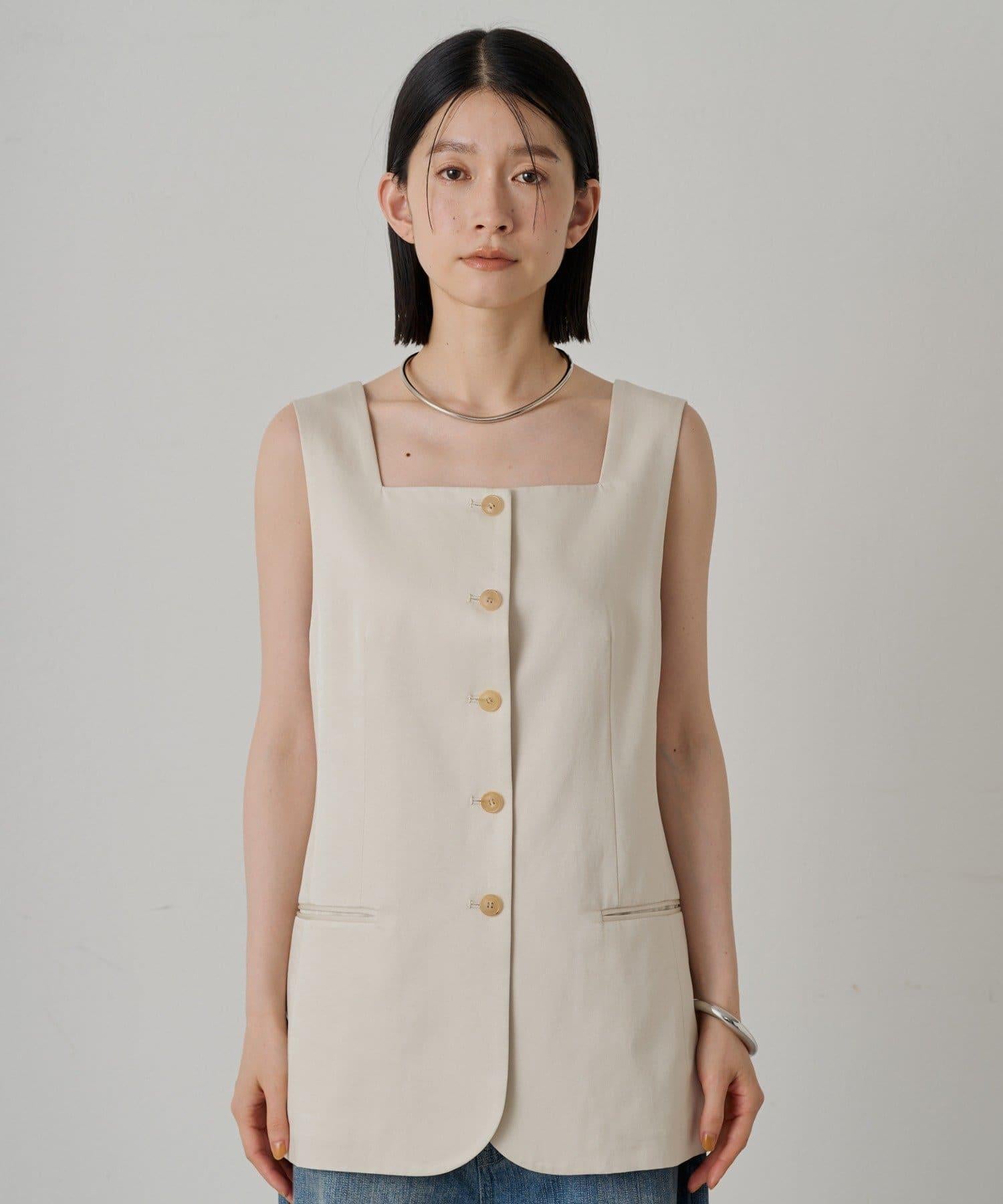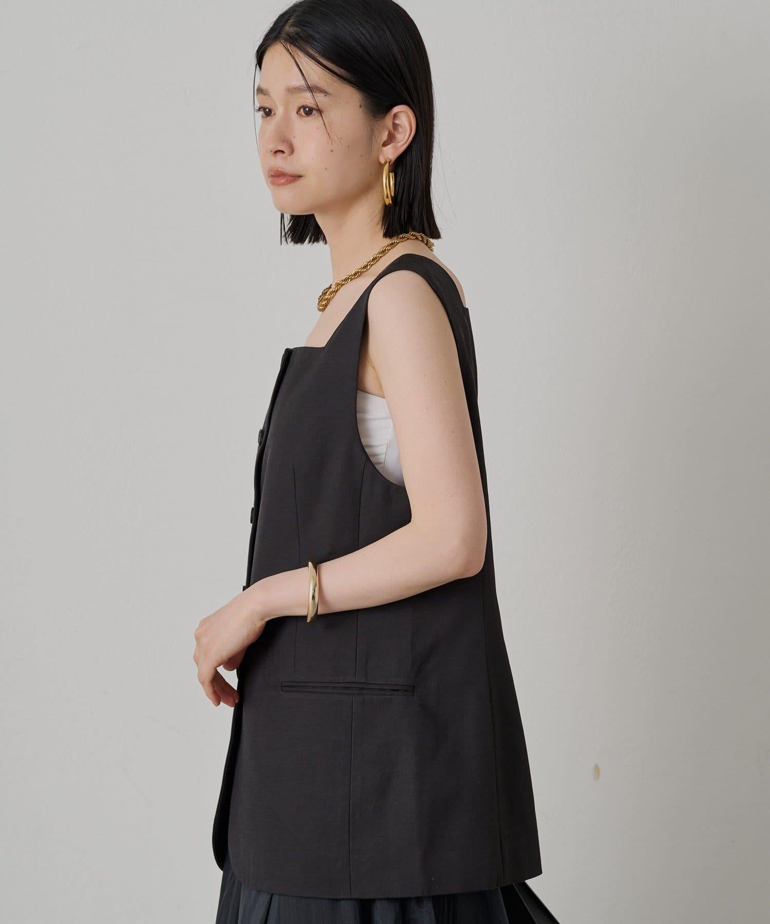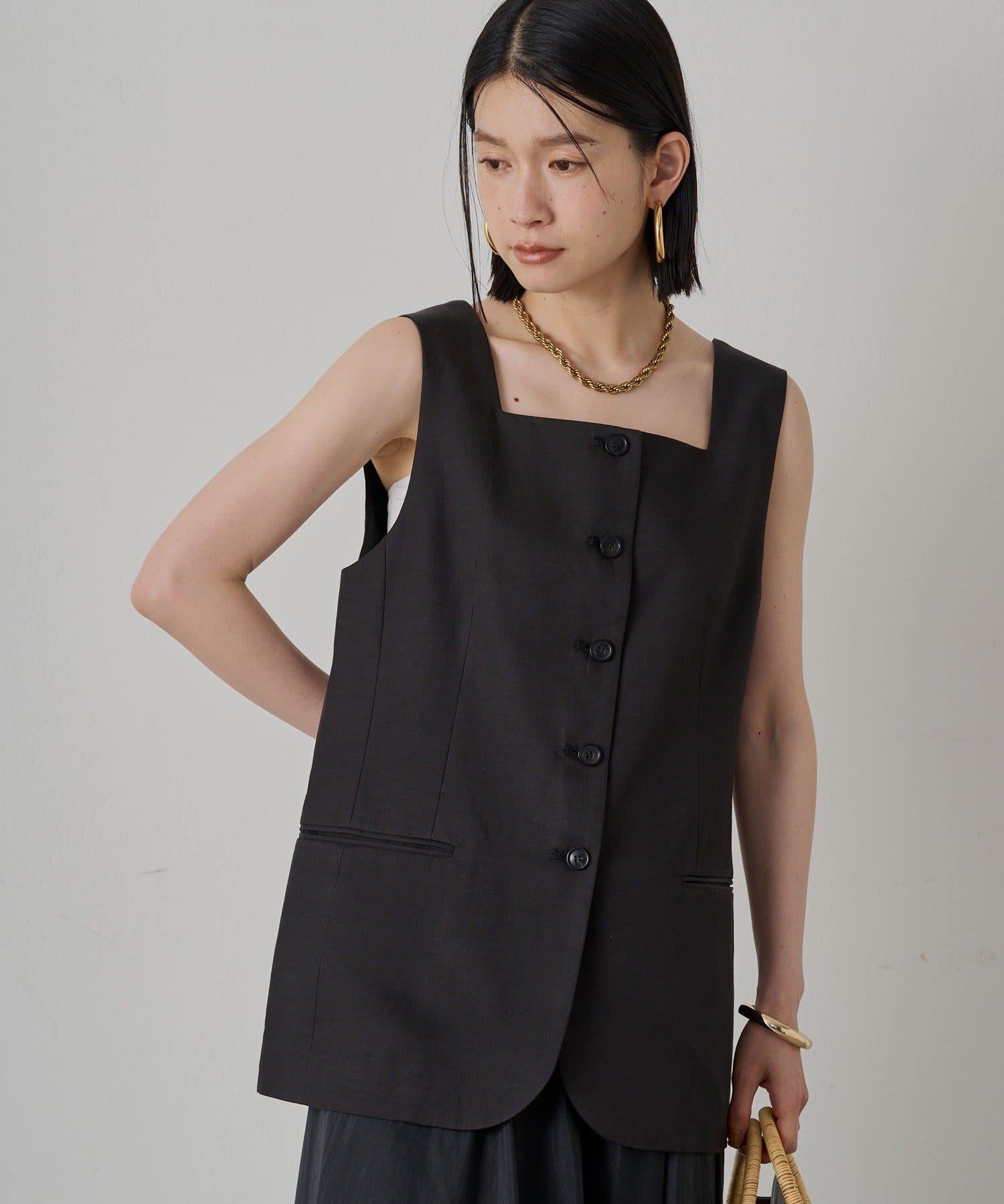 時尚的方形領口馬甲,能很好地展現你的肩部線條。 輪廓很好地貼合身體線條,給你帶來提升氣質的效果。正面的紐扣是點睛之筆,兩側的翻蓋口袋也是設計的一大特色。優質的面料讓它看起來更加優雅。