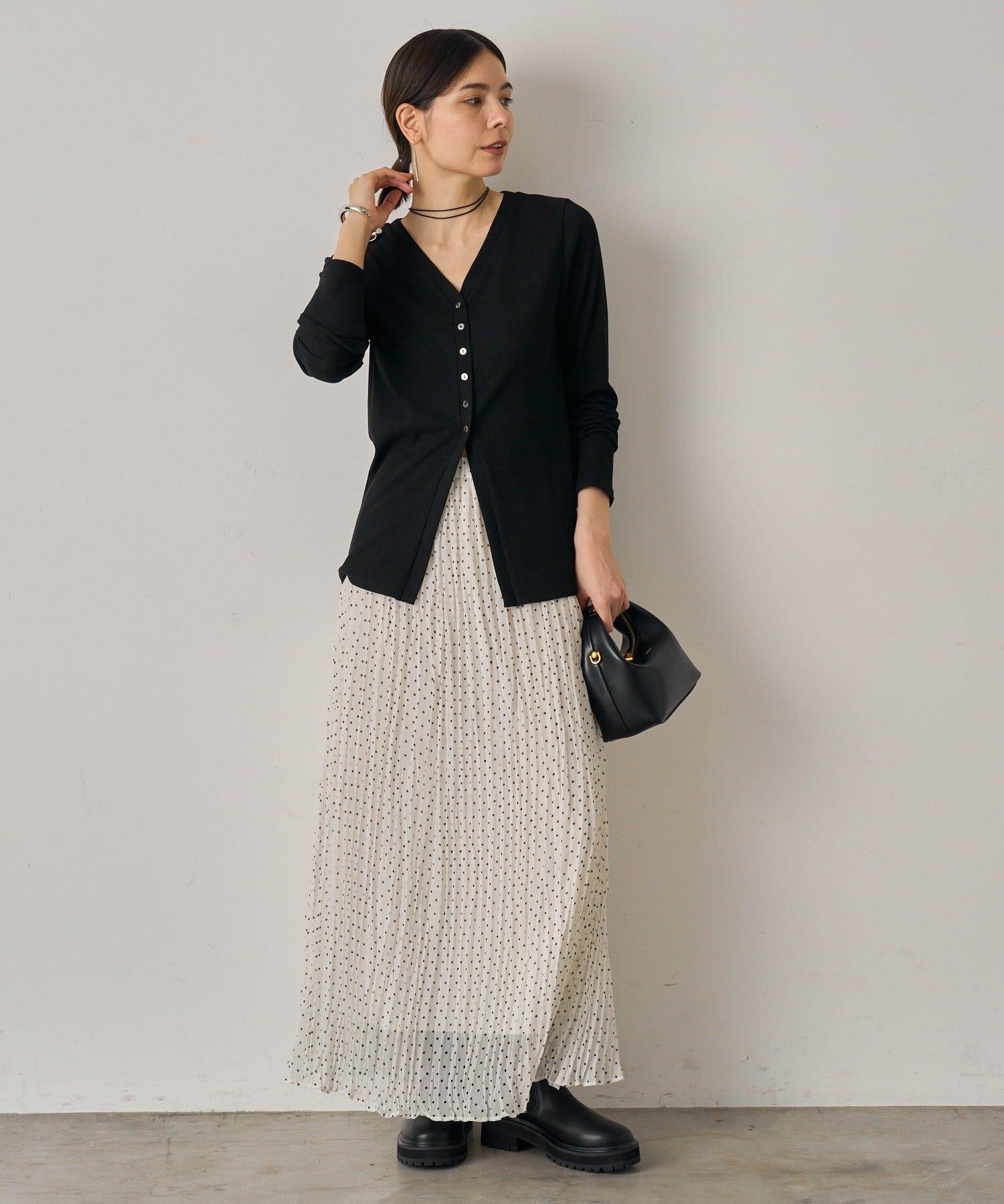 向下擺緩緩展開的廓形,隨著每一個動作的擺動而搖曳,營造出女性的柔美氣質。