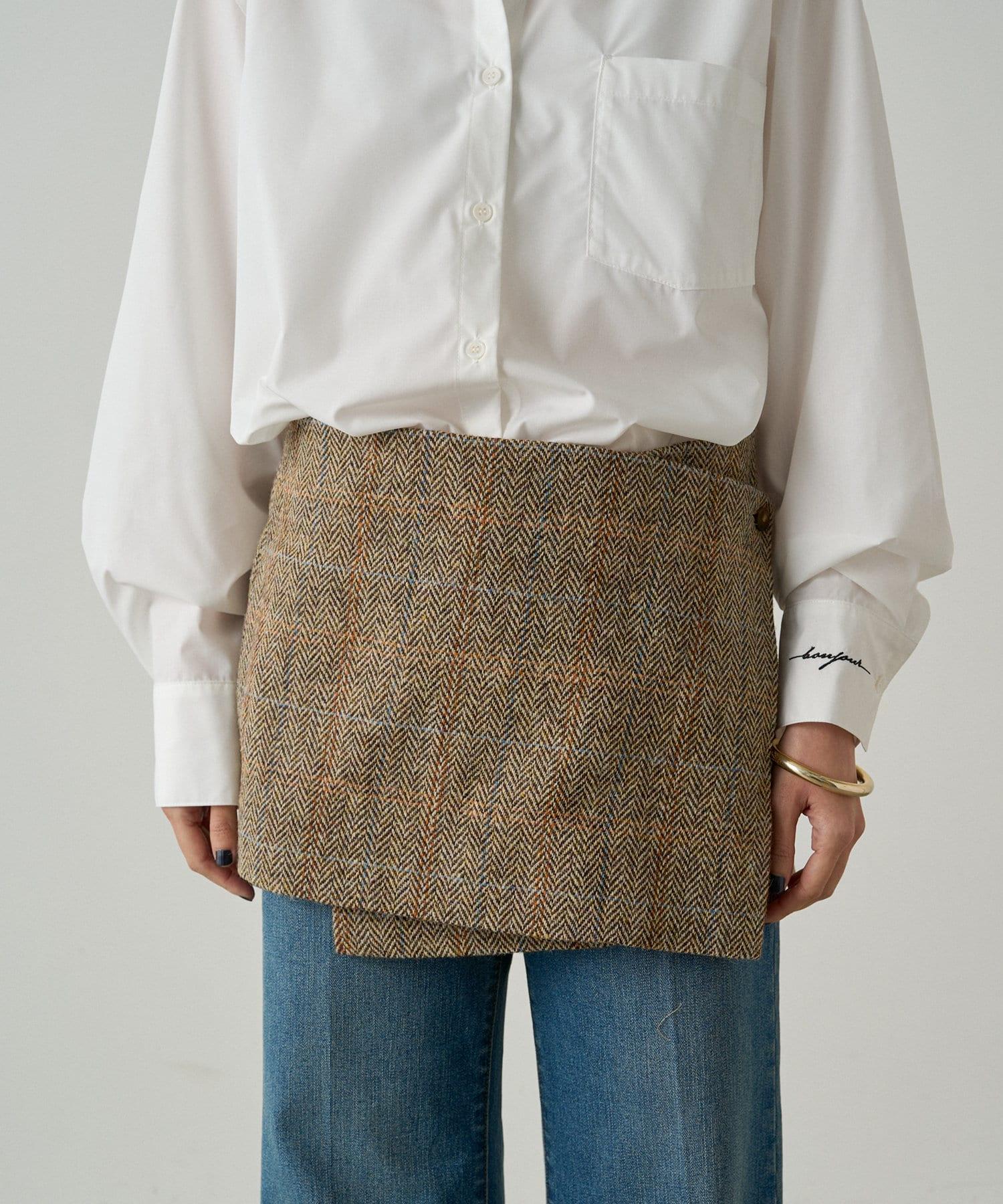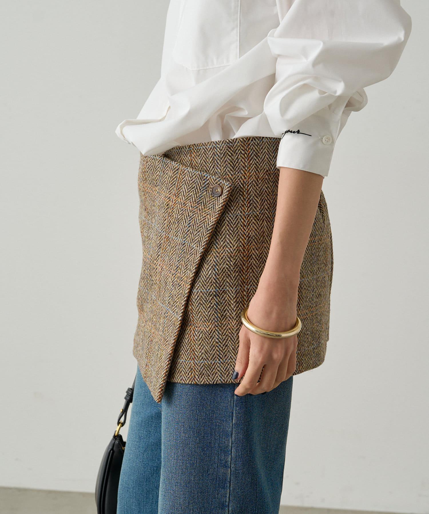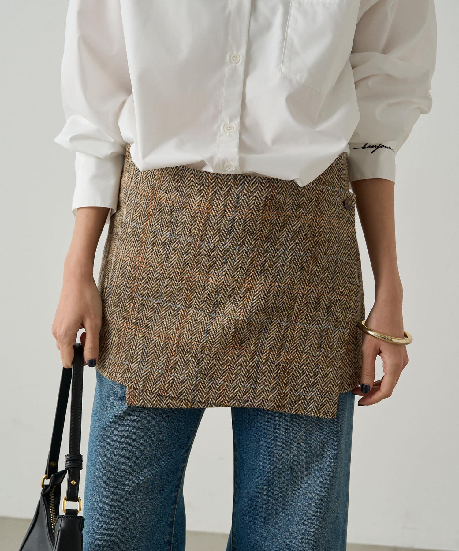 這款裹身裙採用蘇格蘭傳統材料 Harris Tweed 製作。