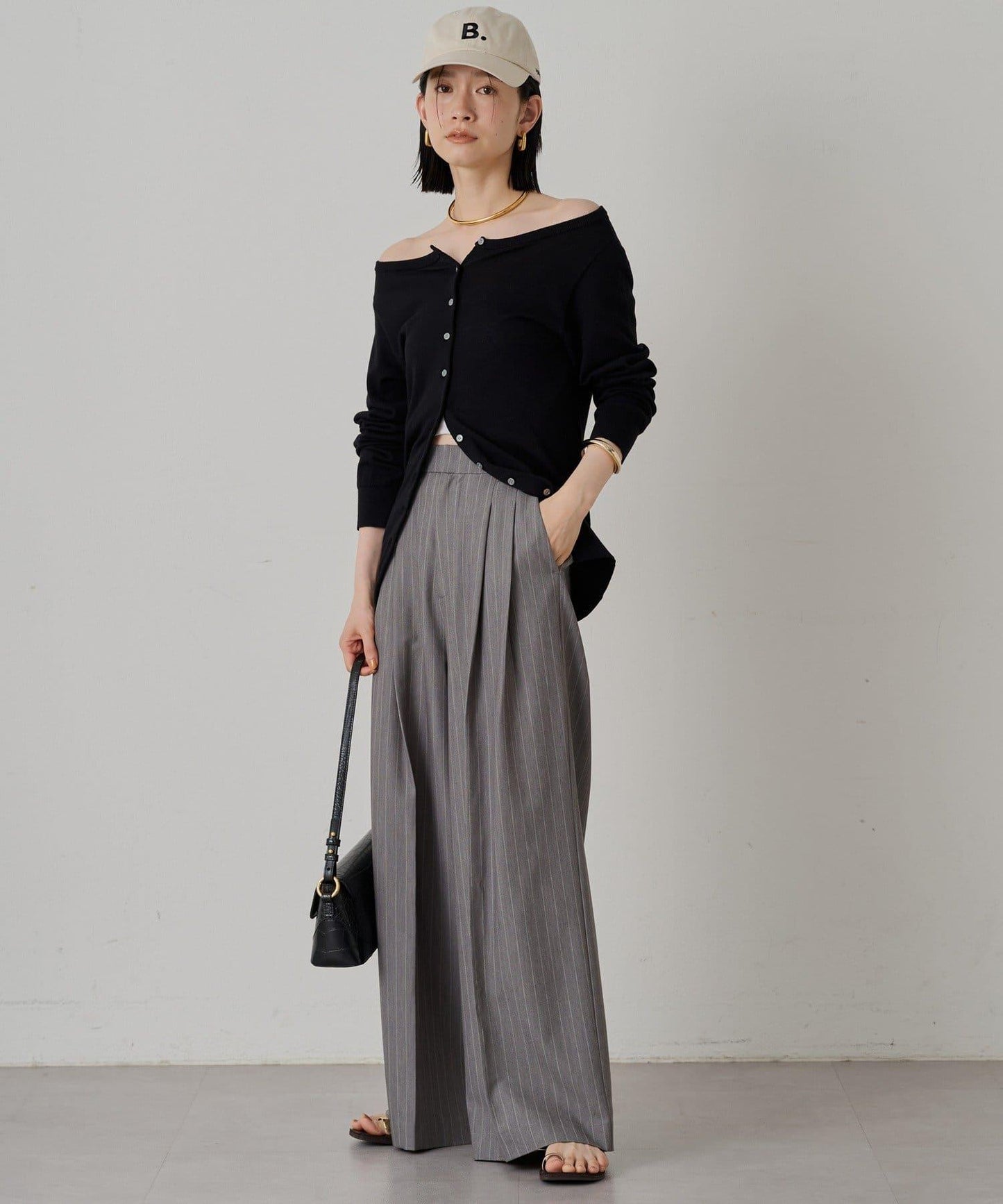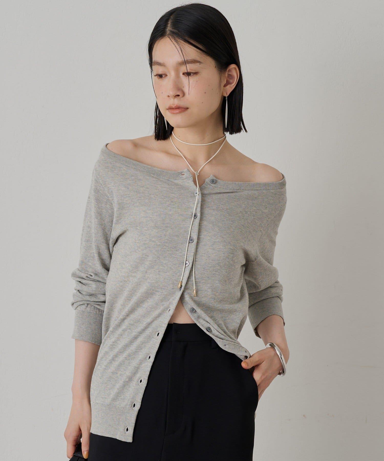 與長褲或長裙搭配時,很容易達到很好的平衡,並能產生提升格調的效果。此外,還建議將其露肩穿出寬鬆感。它還可以作為開襟羊毛衫穿著,或作為上衣將紐扣反扣,讓您享受多種穿法。