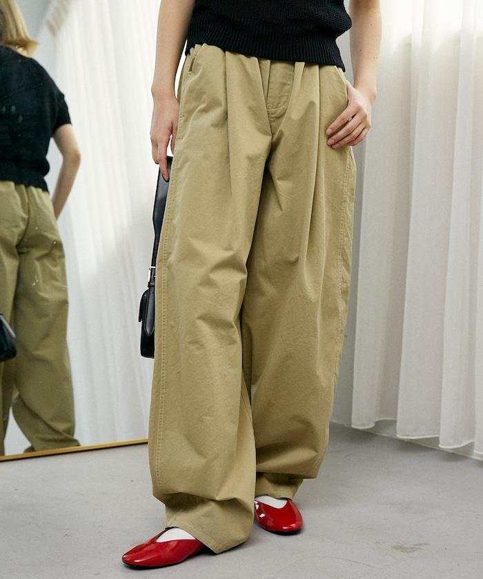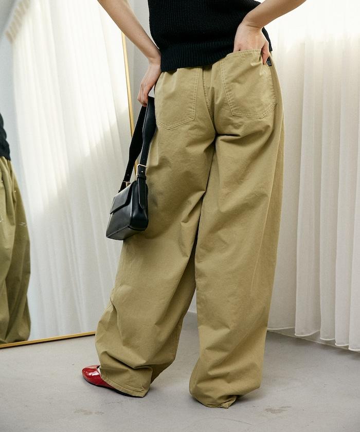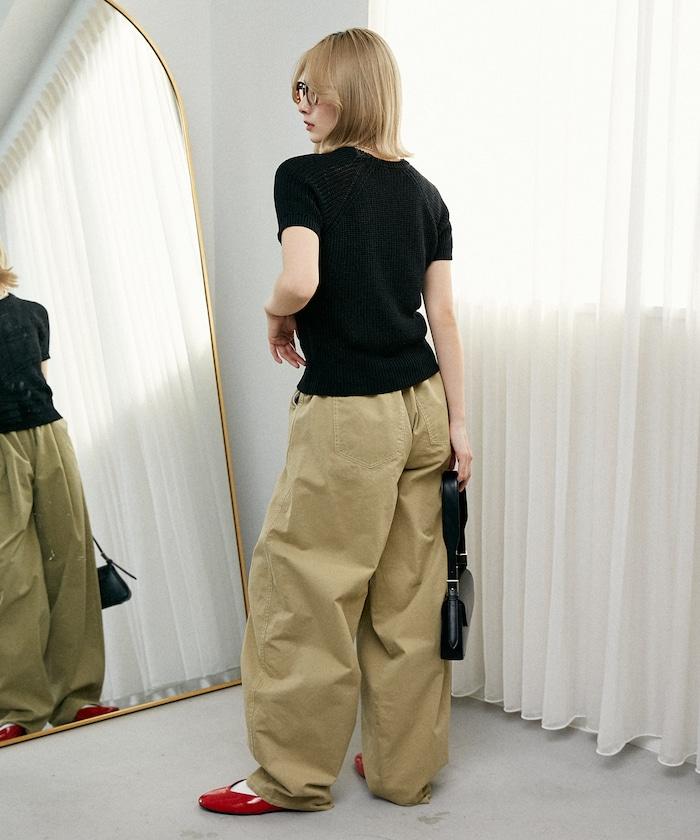 來自 PUBLUX 創意品牌 LOVEPOP STUDIO 的 Tuck Curve Pants 採用了收腰和弧線設計。