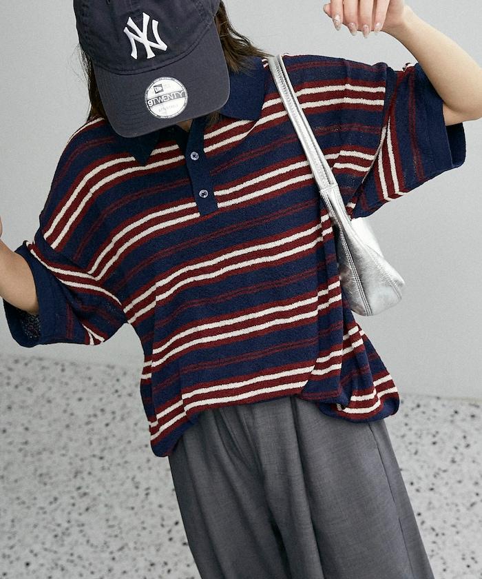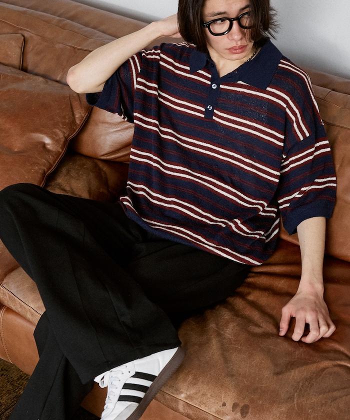 針織 polo 衫的設計加上醒目的彩色邊框,讓這款單品成為你單件造型的主角。