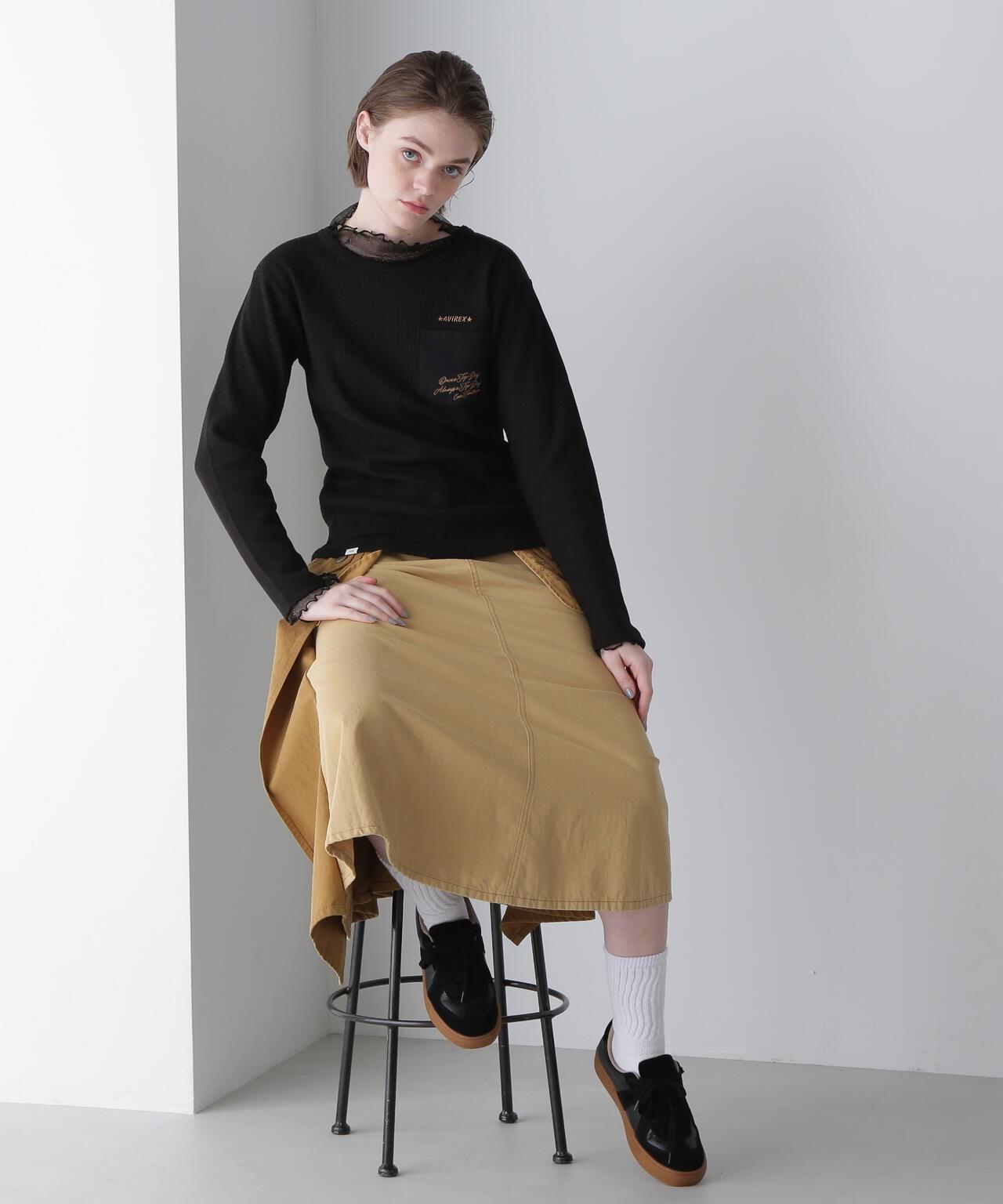 LS COLOR STITCH EMB WAFFLE T-SHIRT/彩色拼接刺繡格子T恤