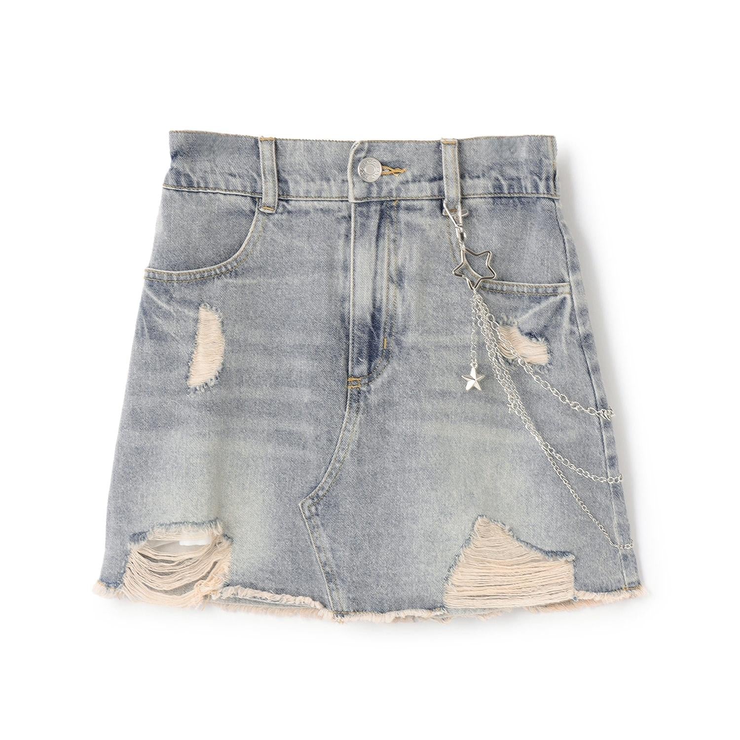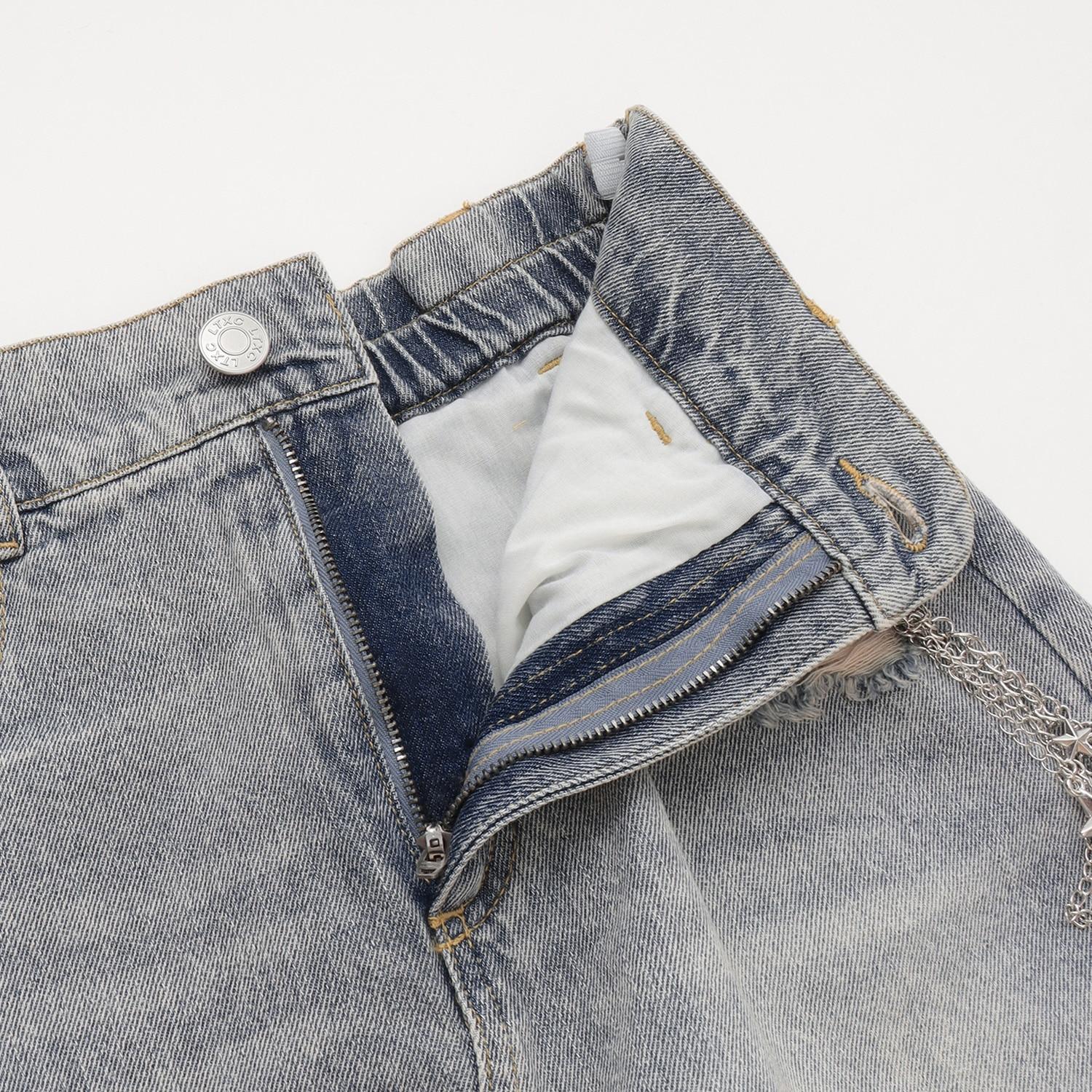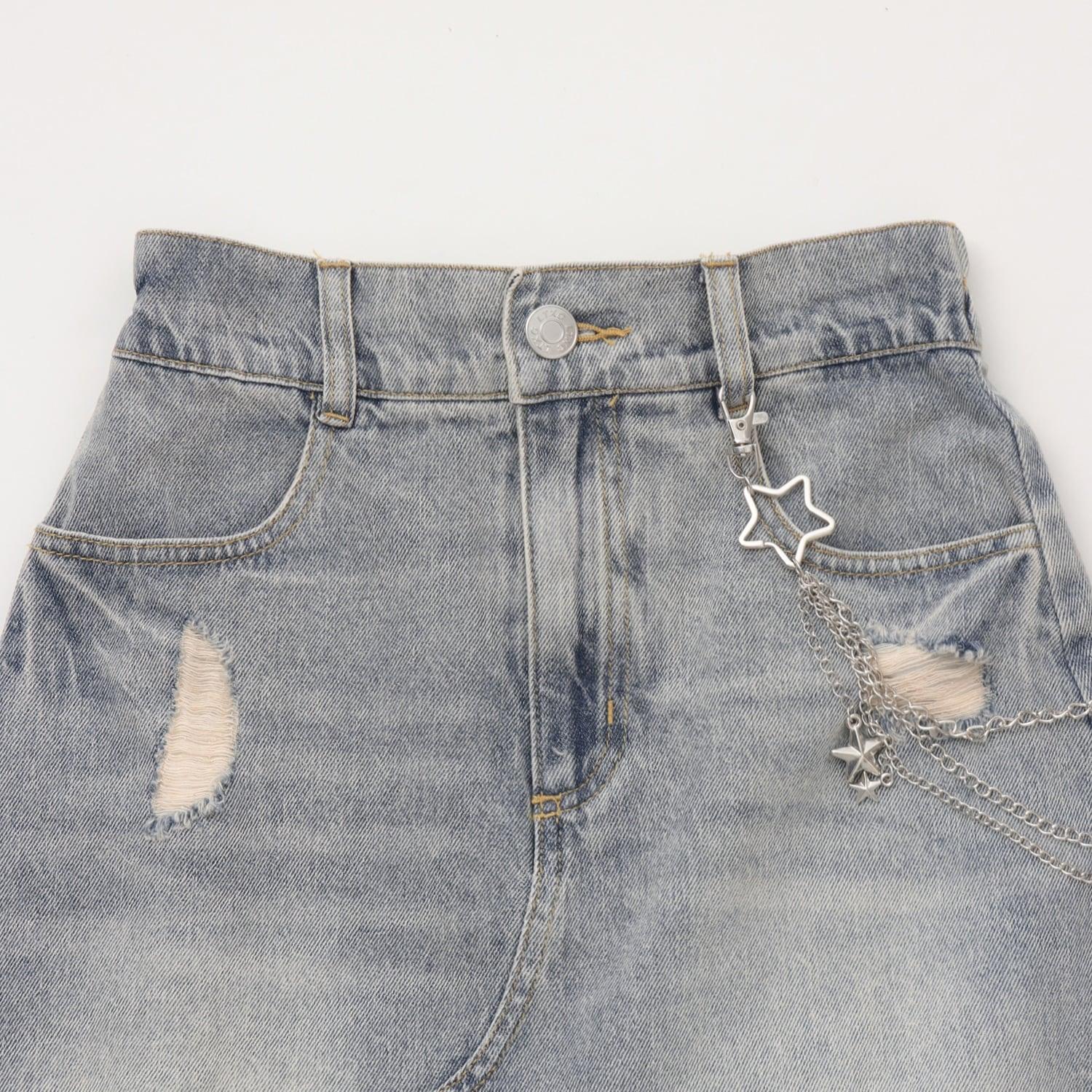 【LTXC】帶鏈條破洞牛仔迷你裙