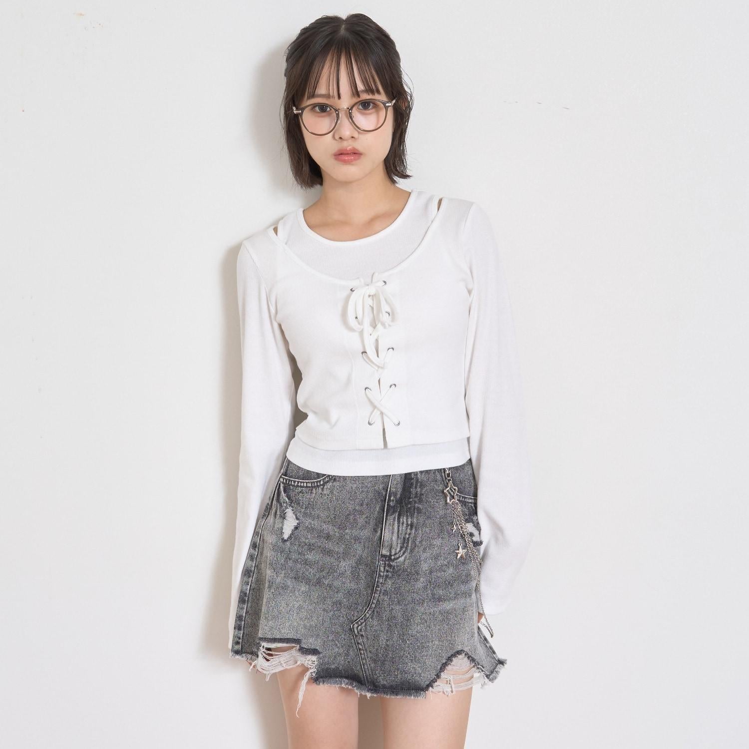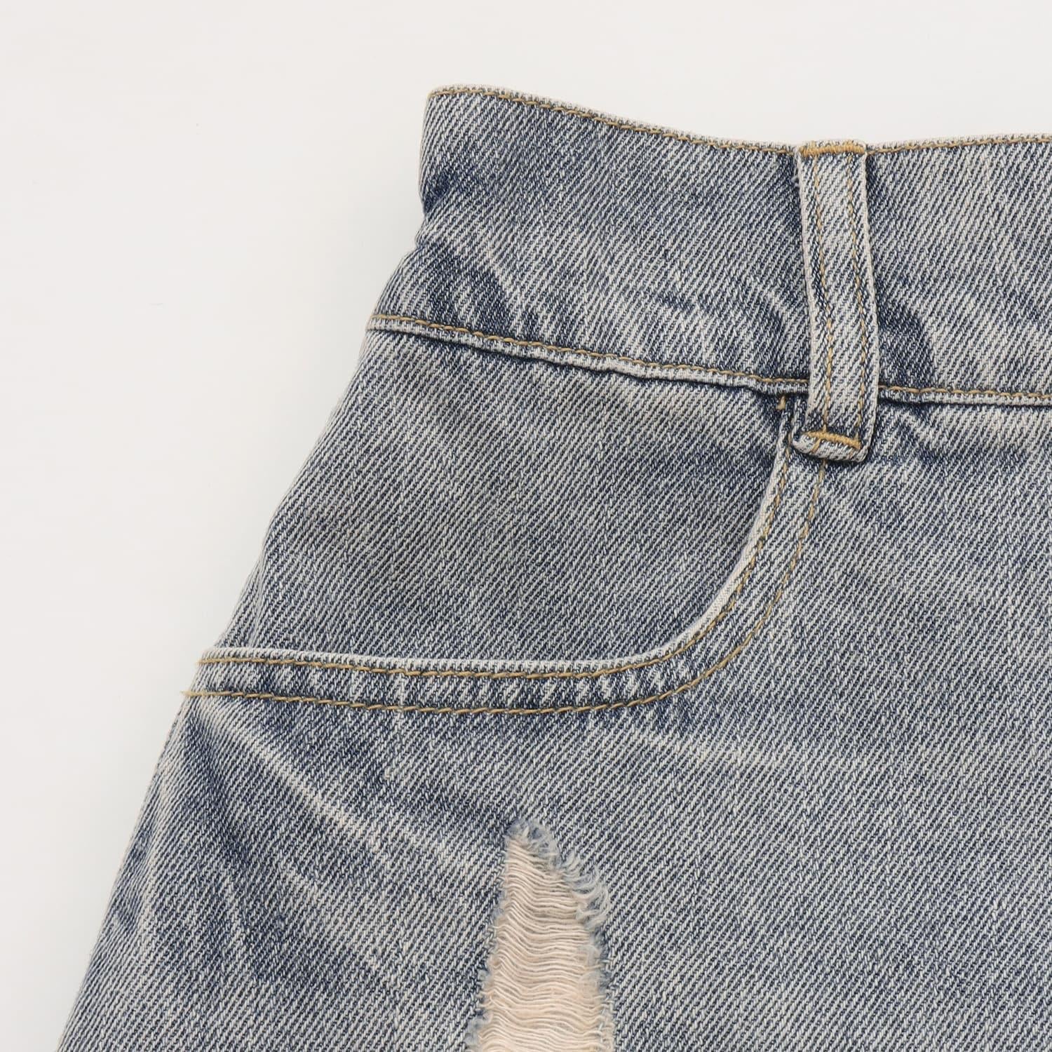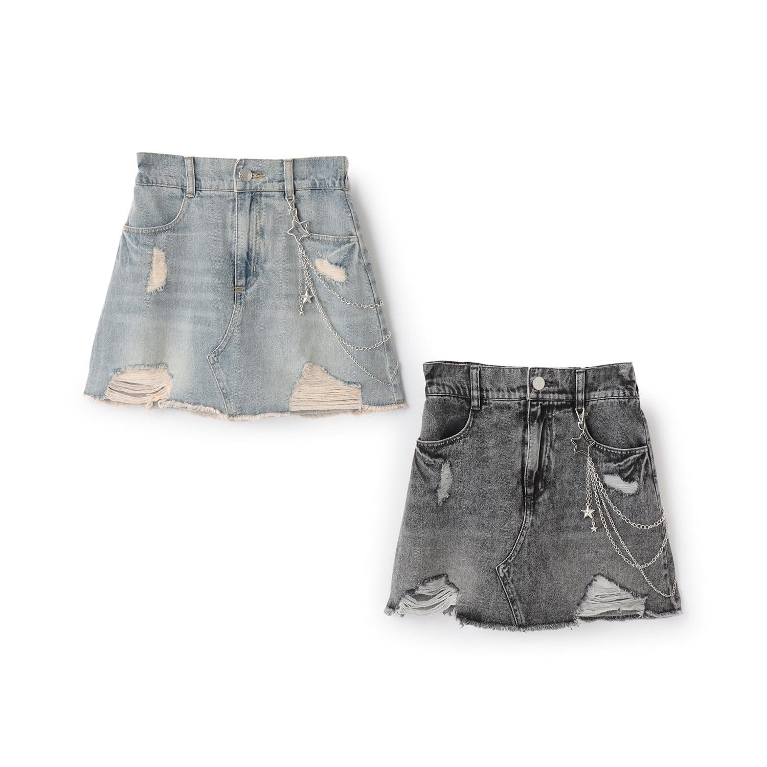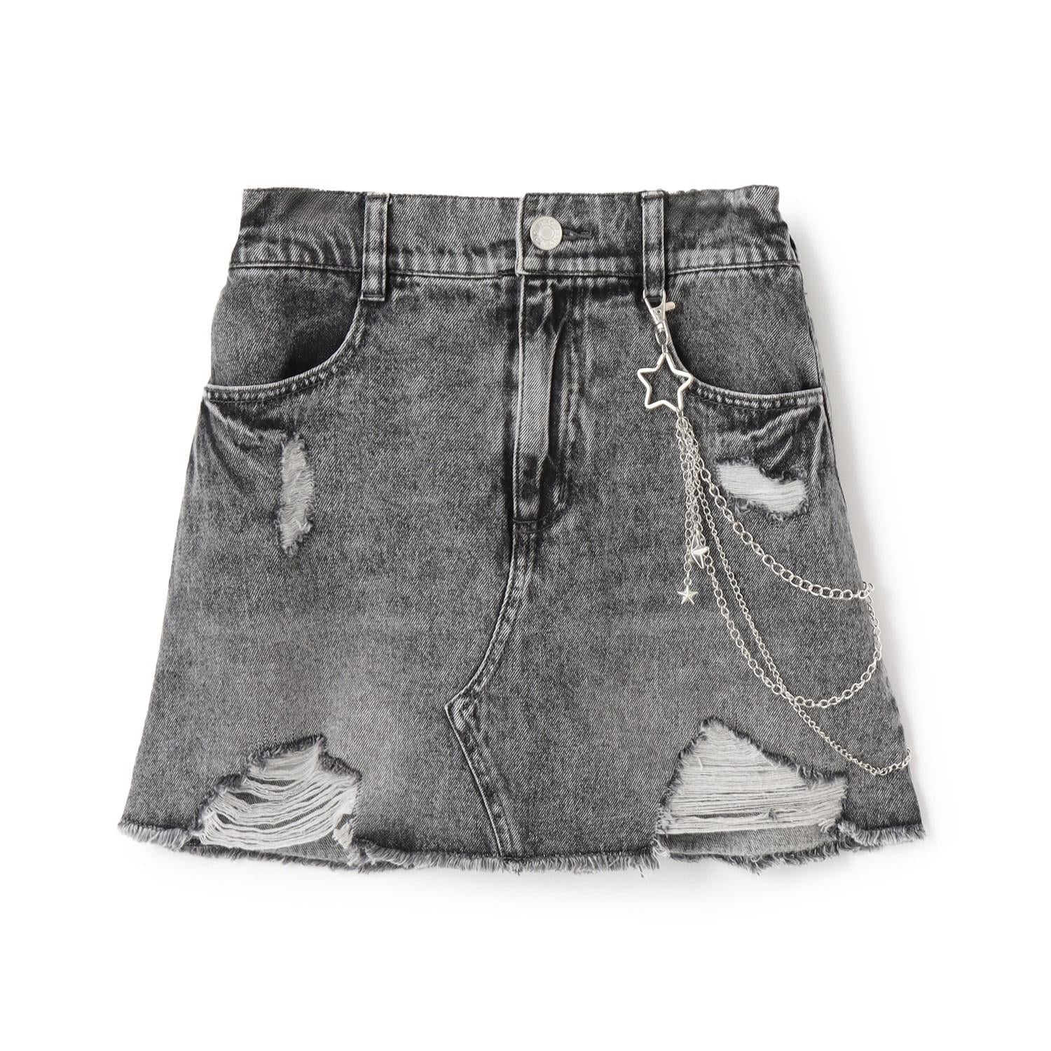 【LTXC】帶鏈條破洞牛仔迷你裙