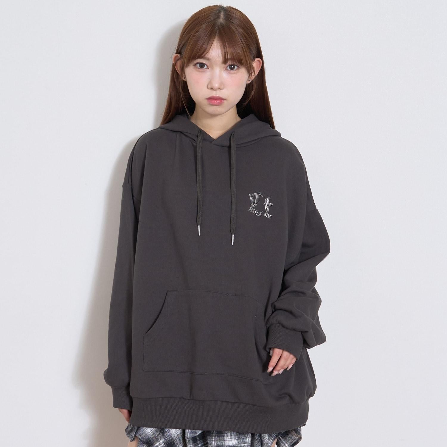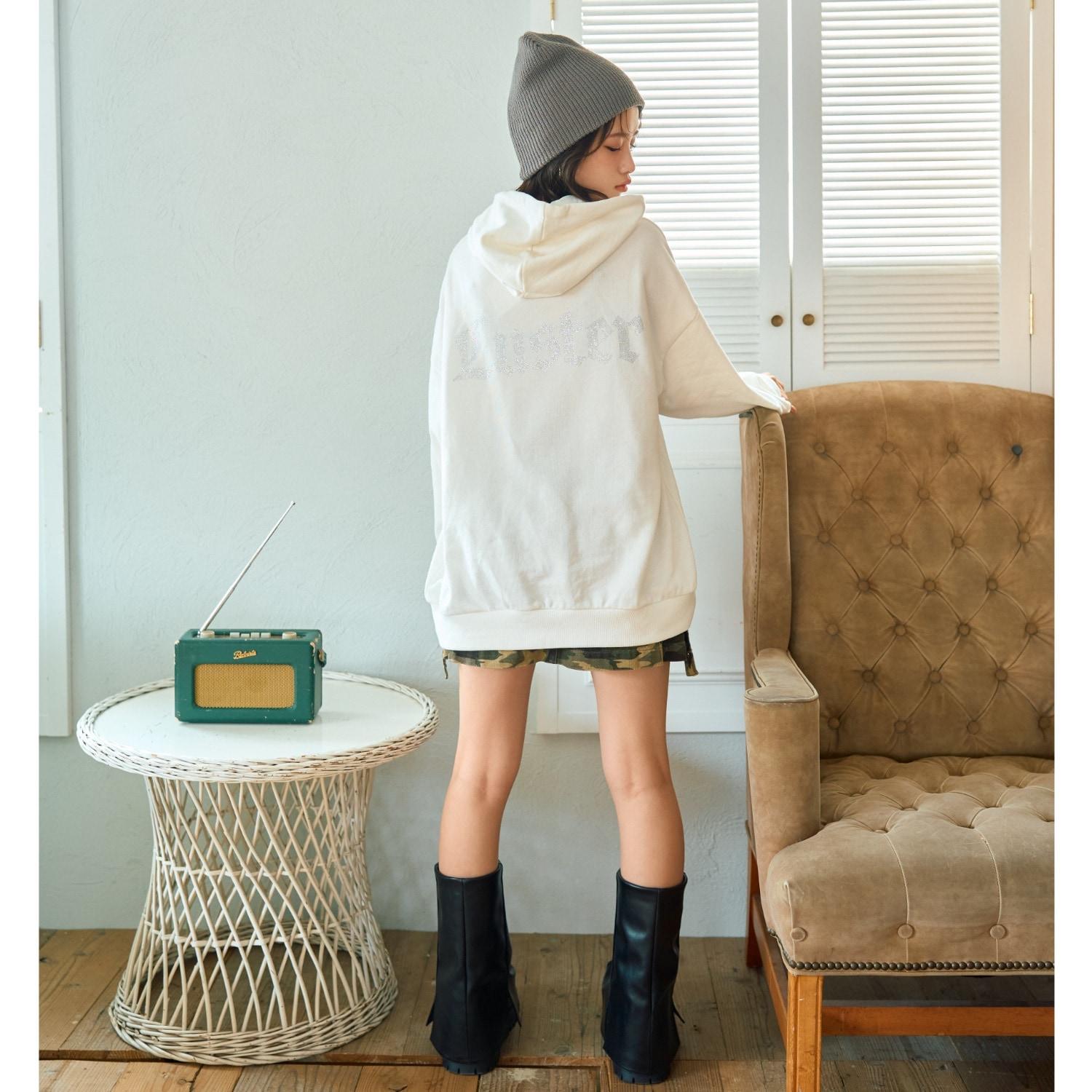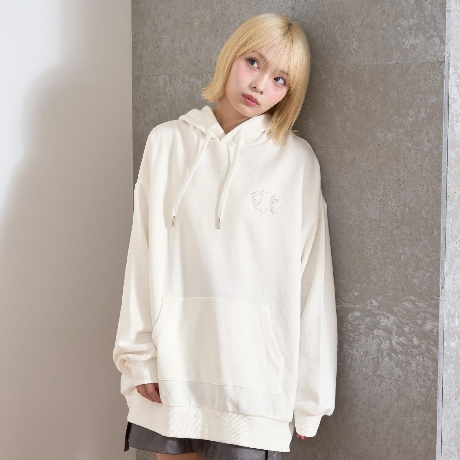 【LTXC】後背水鑽寬鬆連帽衛衣