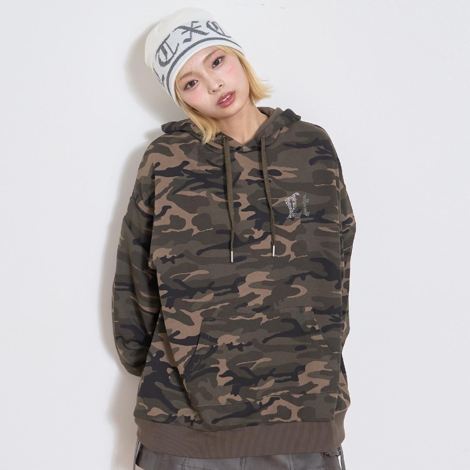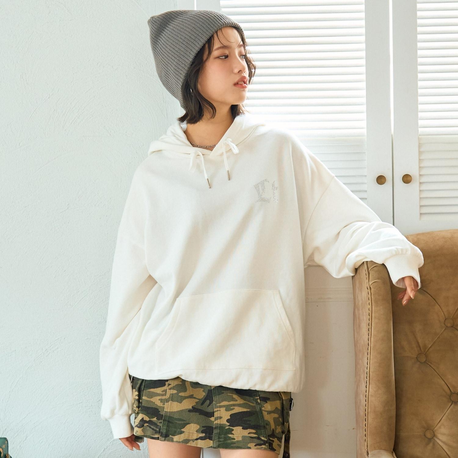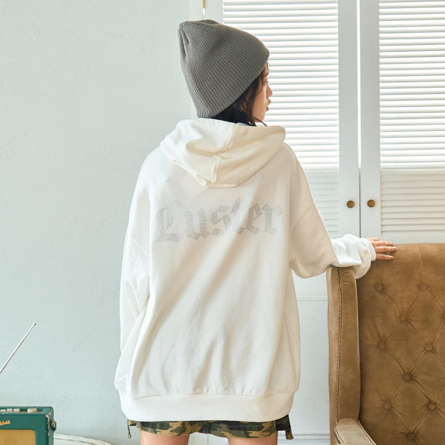 【LTXC】後背水鑽寬鬆連帽衛衣
