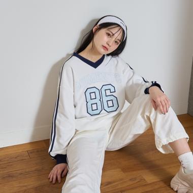 這款 V 領套頭衫採用醒目的數字設計。