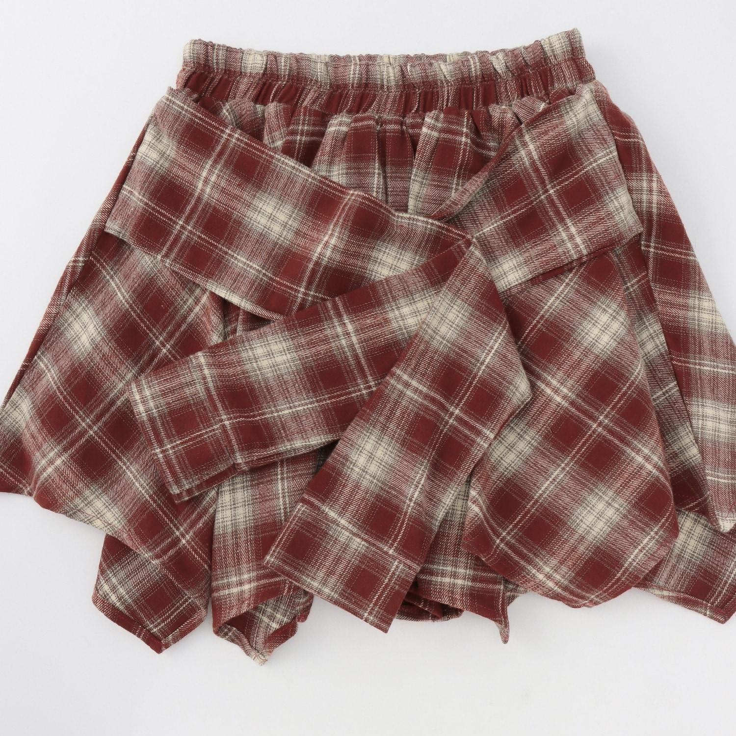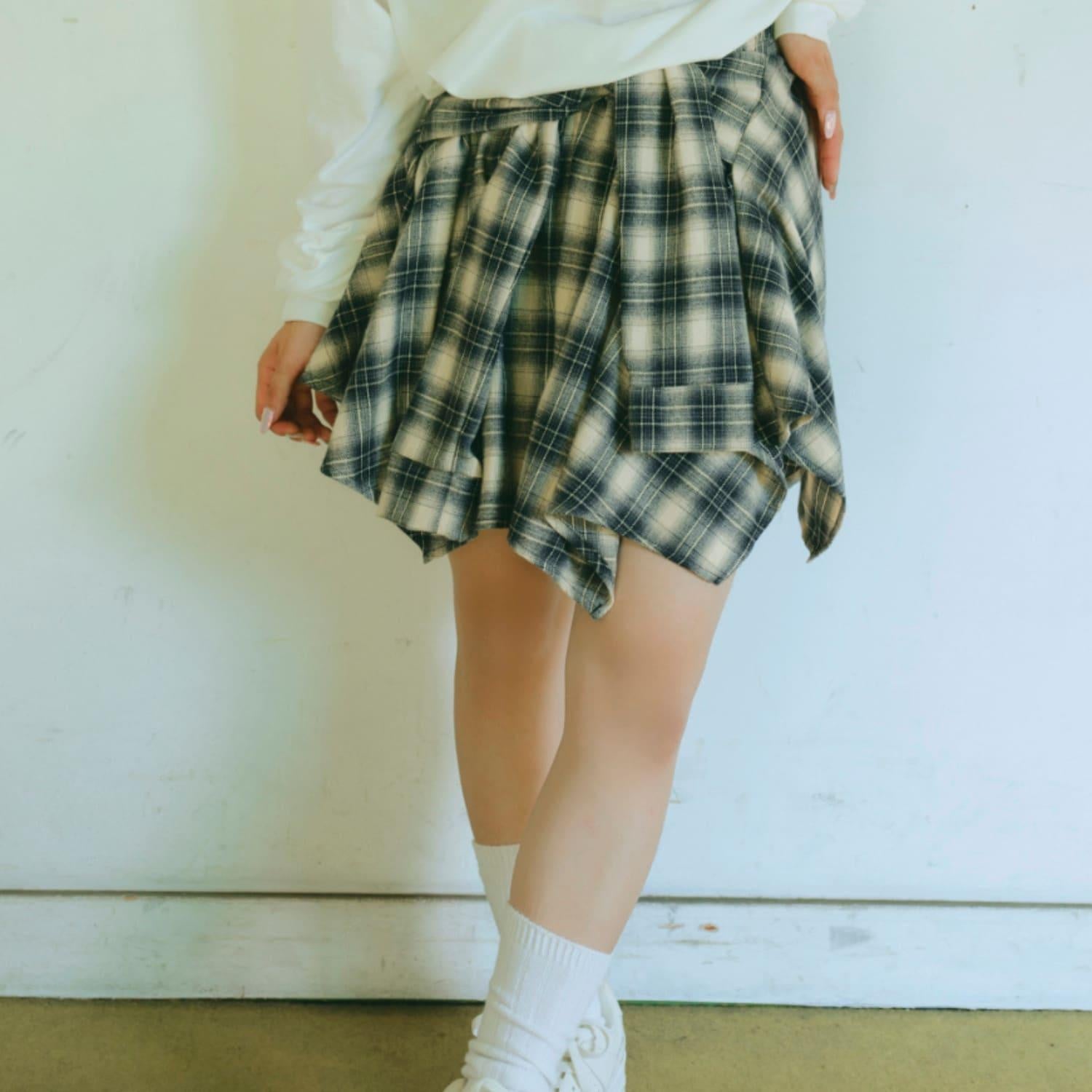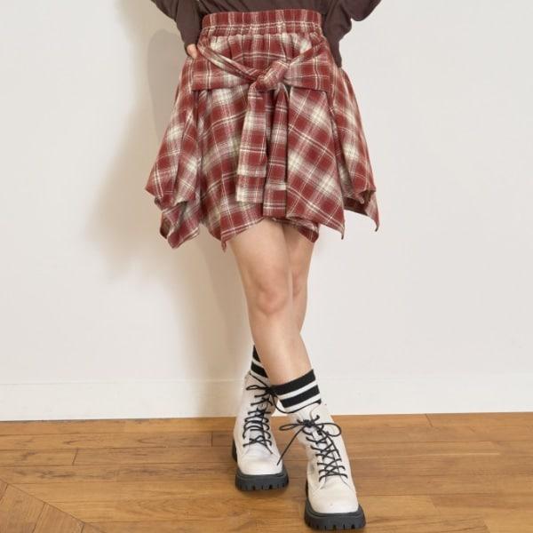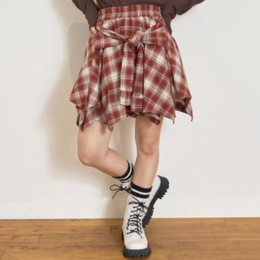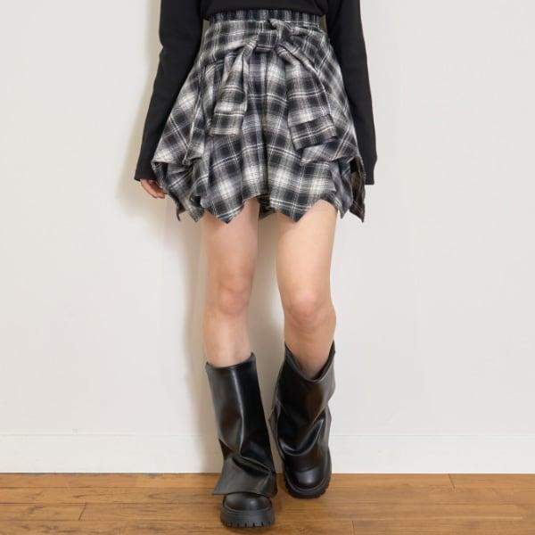 這款裙褲採用時尚的裹腰式設計和不規則的剪裁。