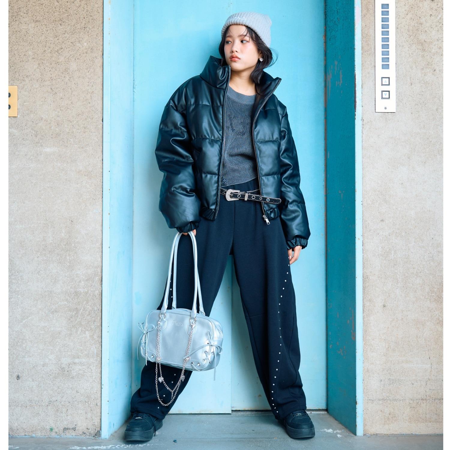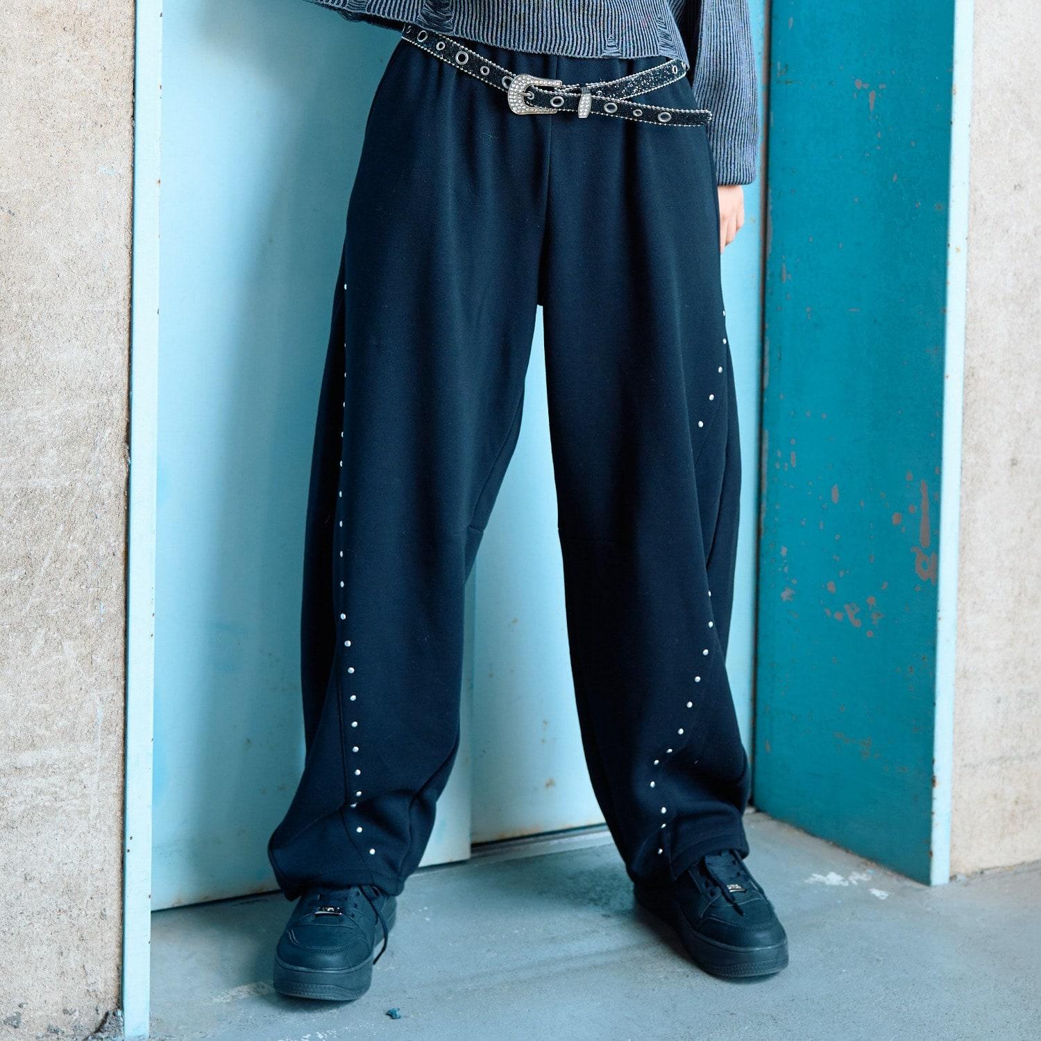 寬鬆弧形運動褲,打造機場造型! 背部的徽標鉚釘讓你的背影看起來也很可愛。
