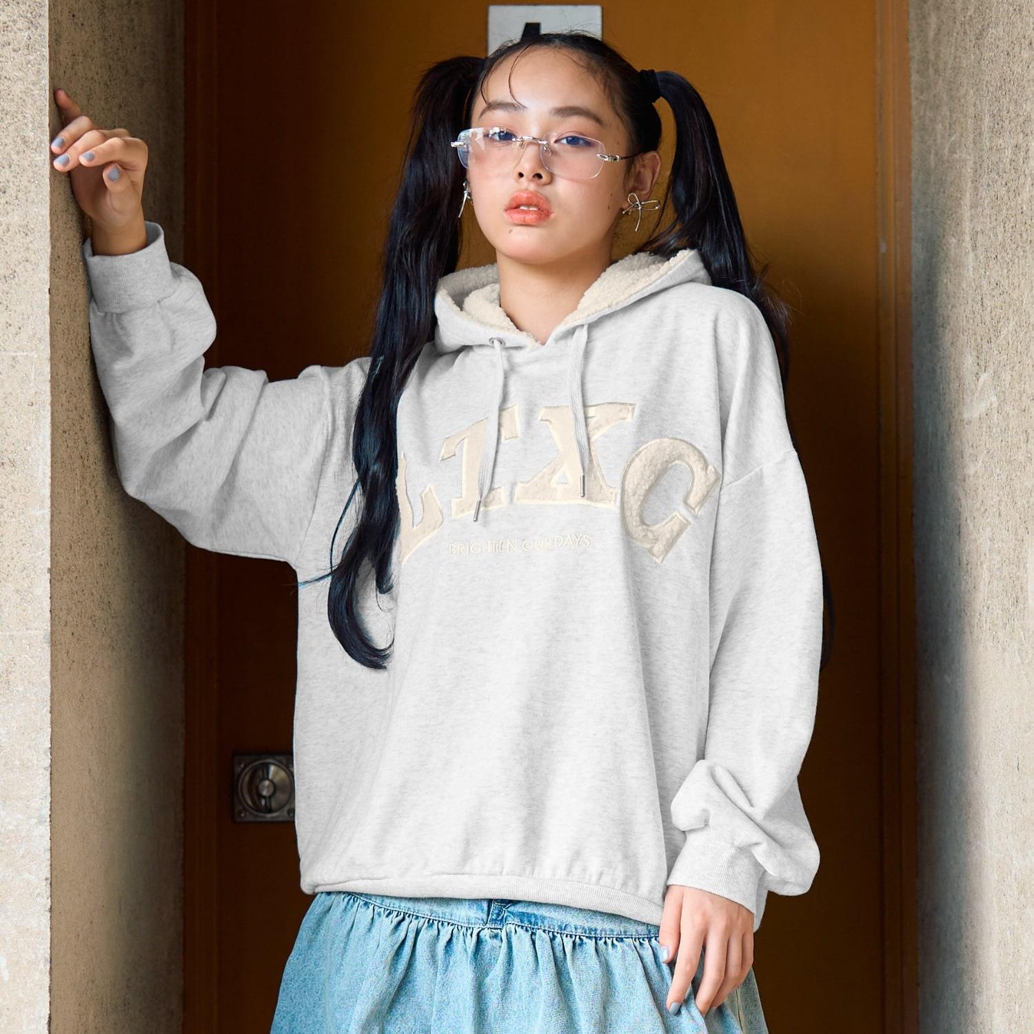 【LTXC】【100%純棉】加絨羊羔絨標誌連帽衛衣