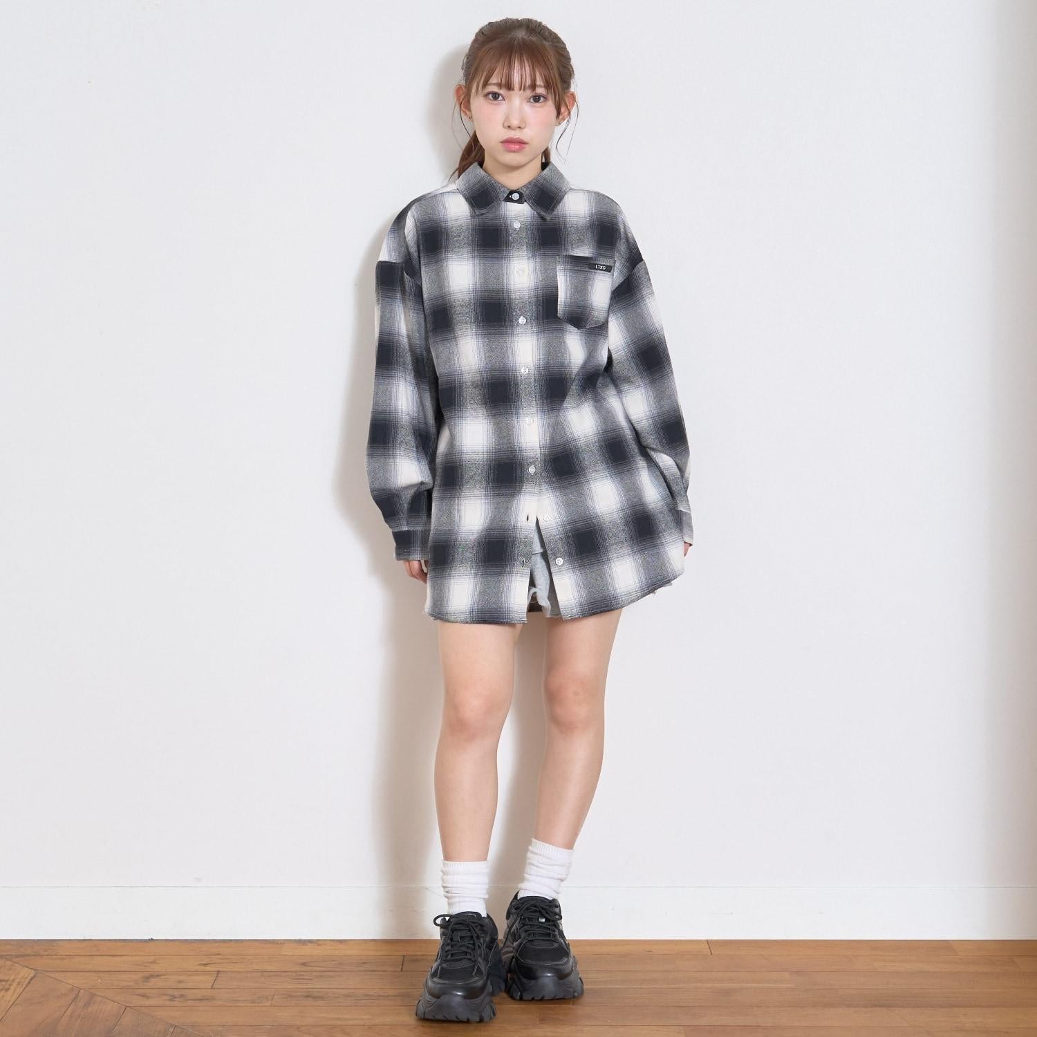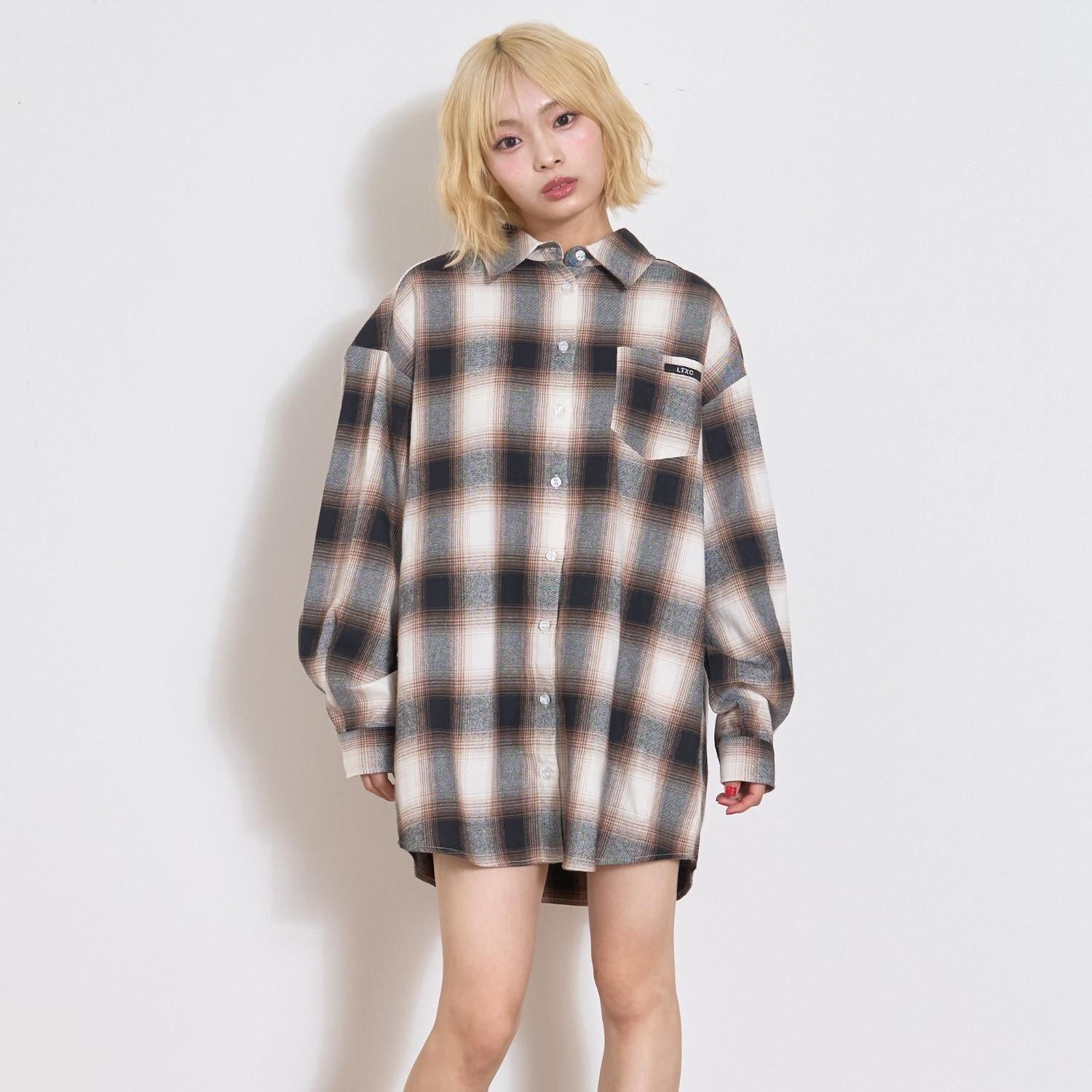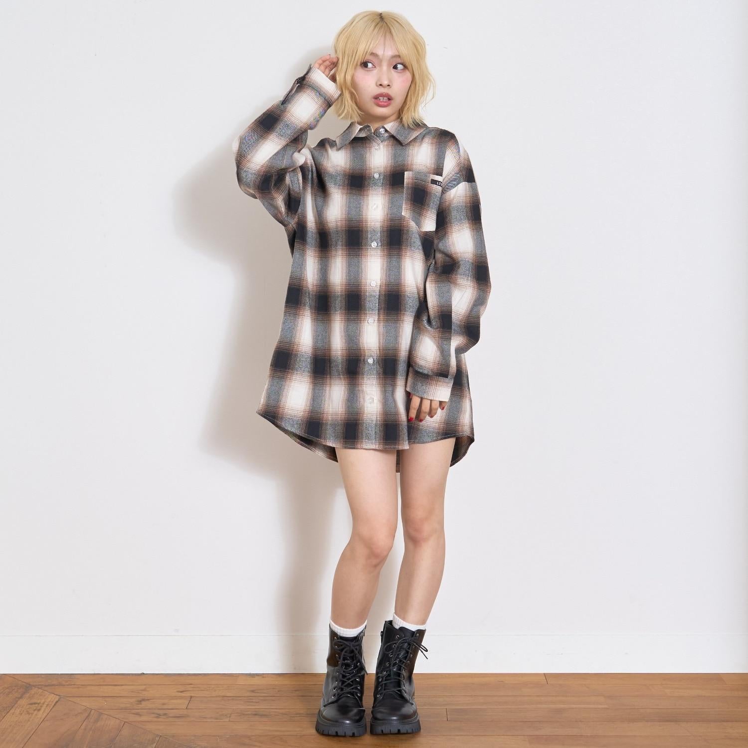 【LTXC】【100%純棉】格紋寬鬆襯衫連衣裙
