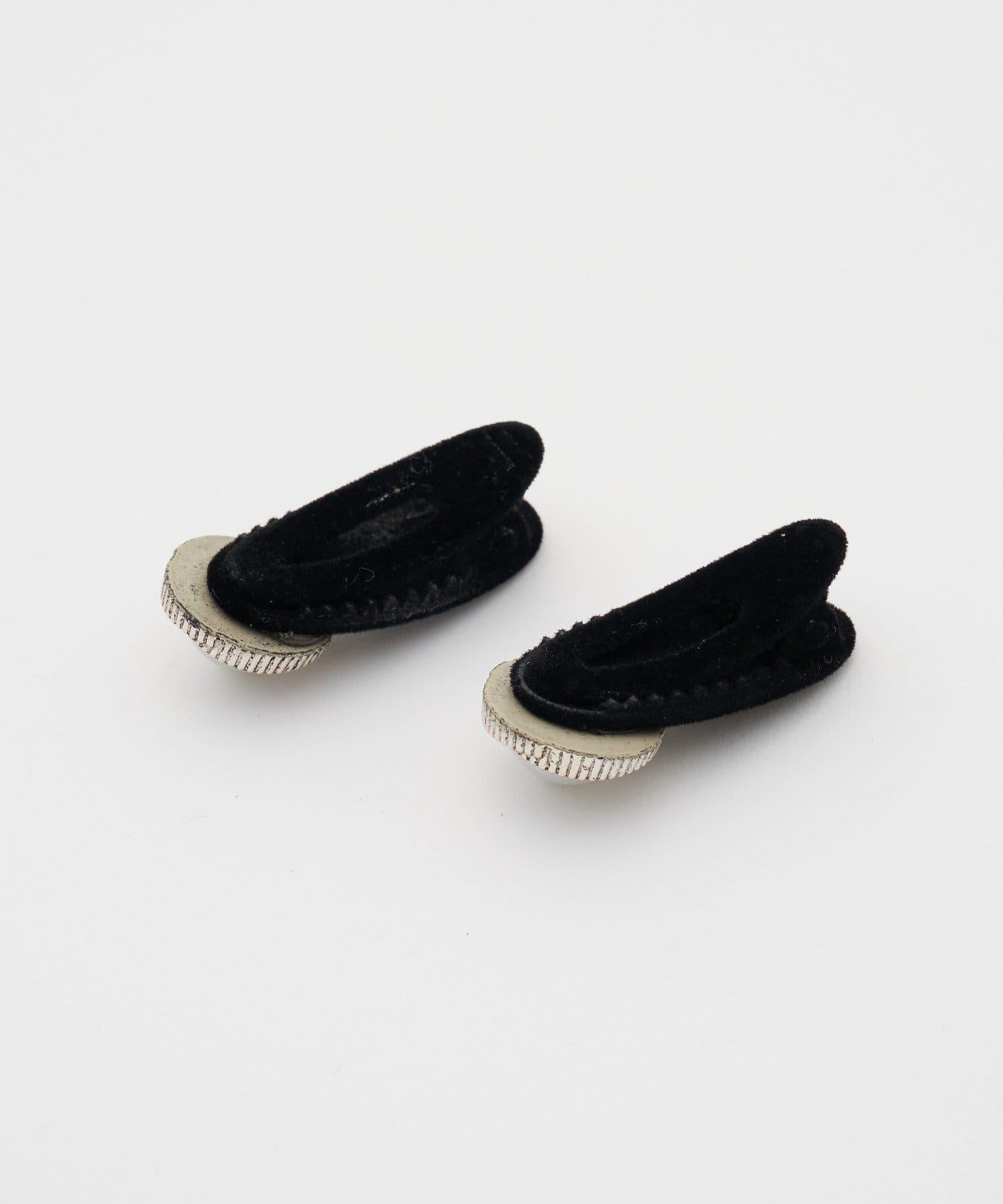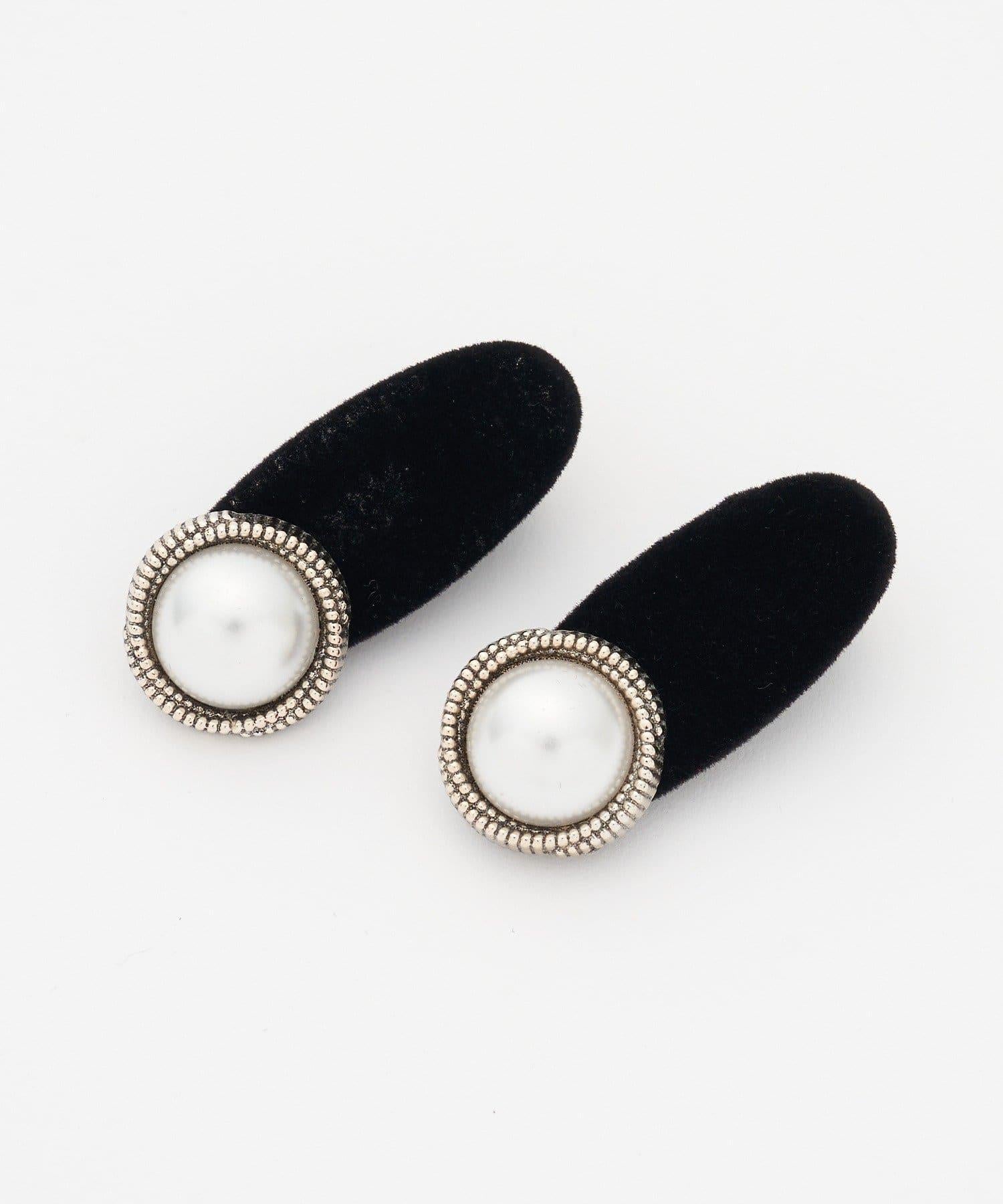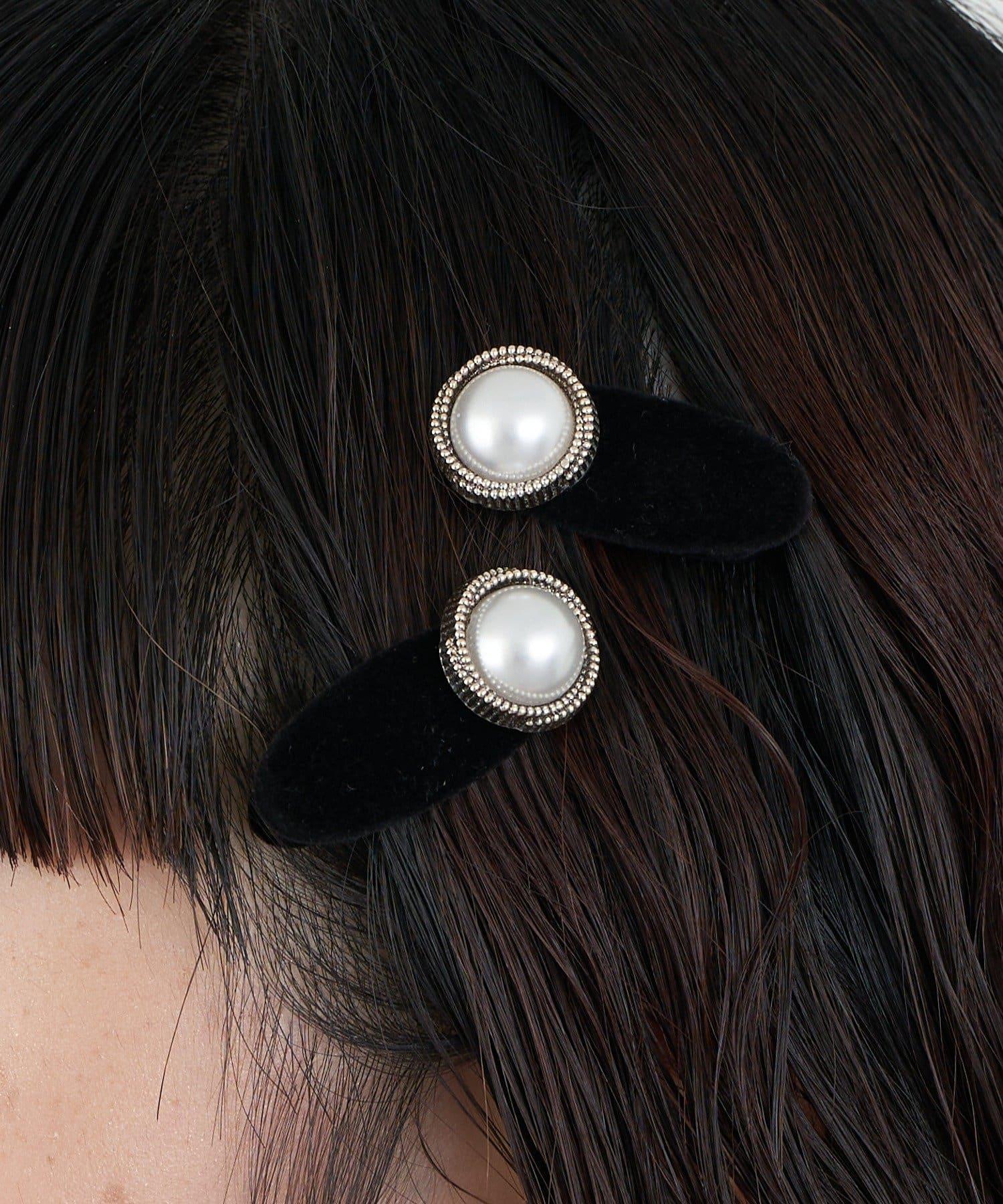 一套兩個迷你髮夾,採用優雅的絲絨材質,並鑲嵌珍珠。
