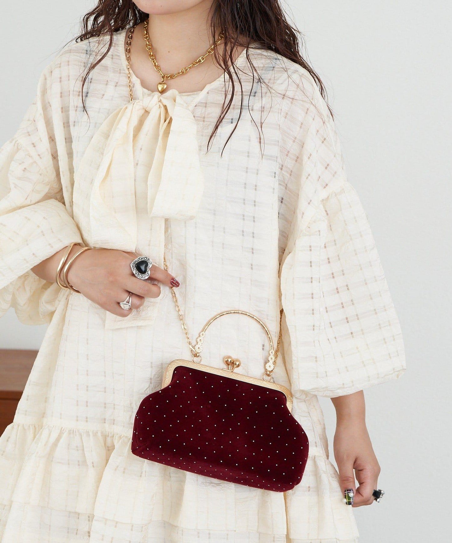 像小點一樣排列的鉚釘突出了這款包的特點,使其看起來更有古典韻味。