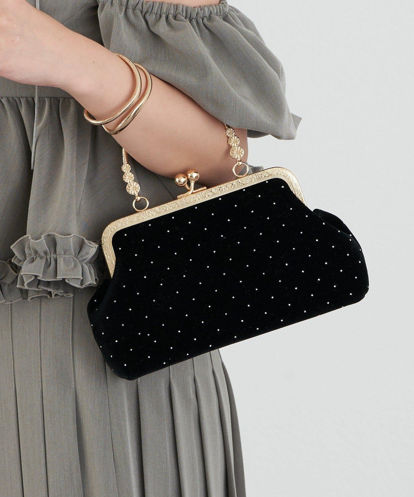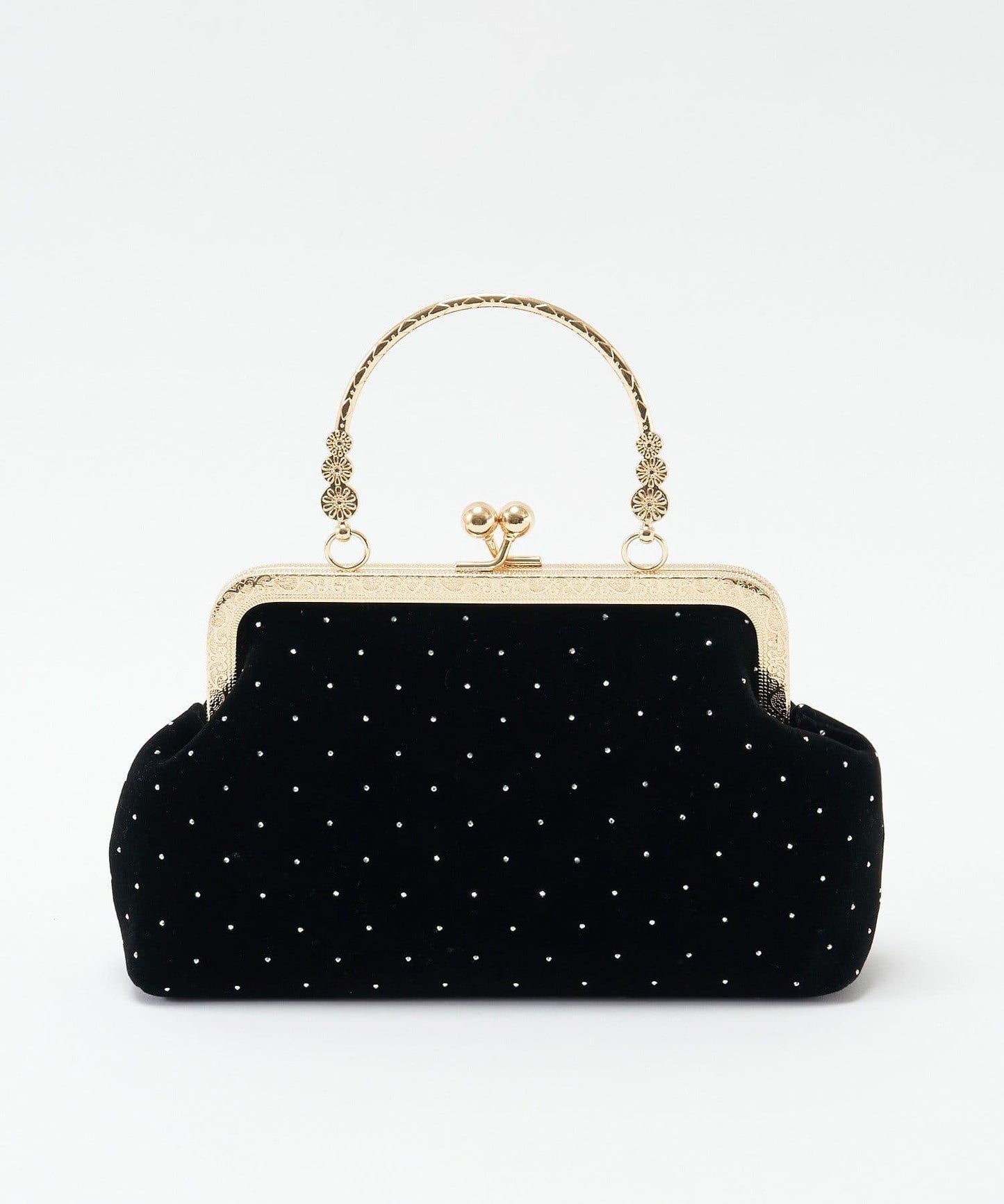 這款仿古風格的搭扣手袋由天鵝絨製成。