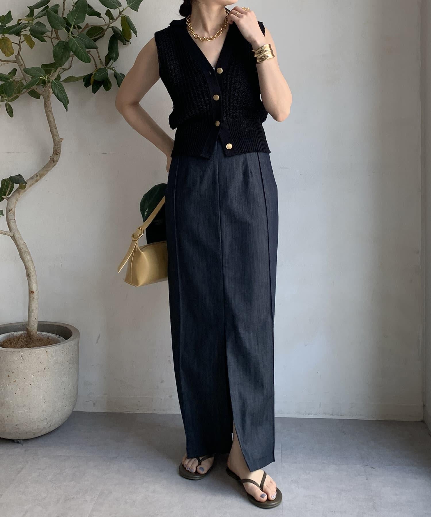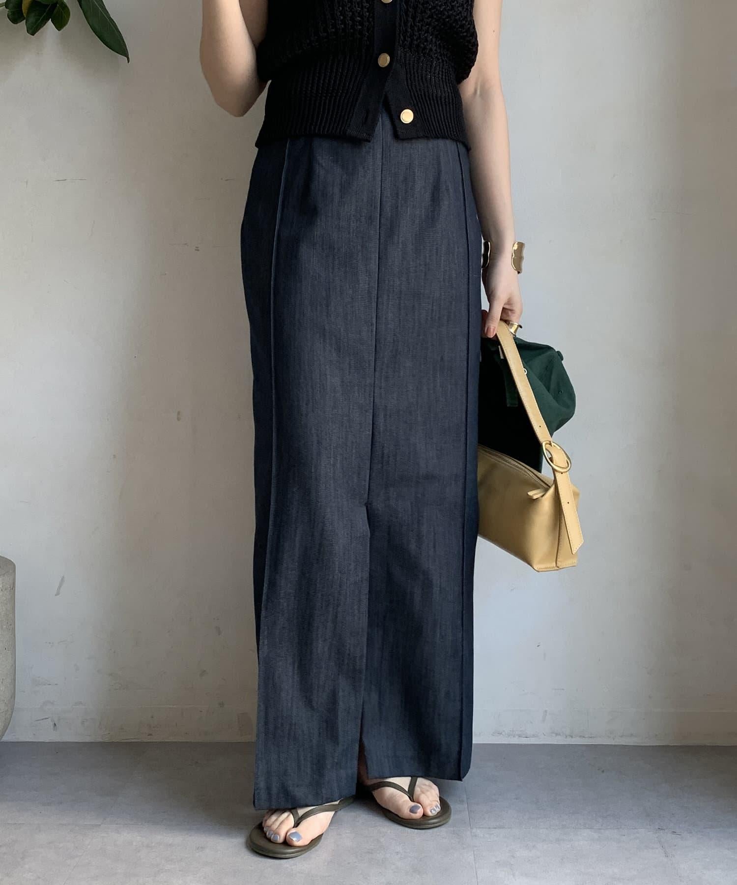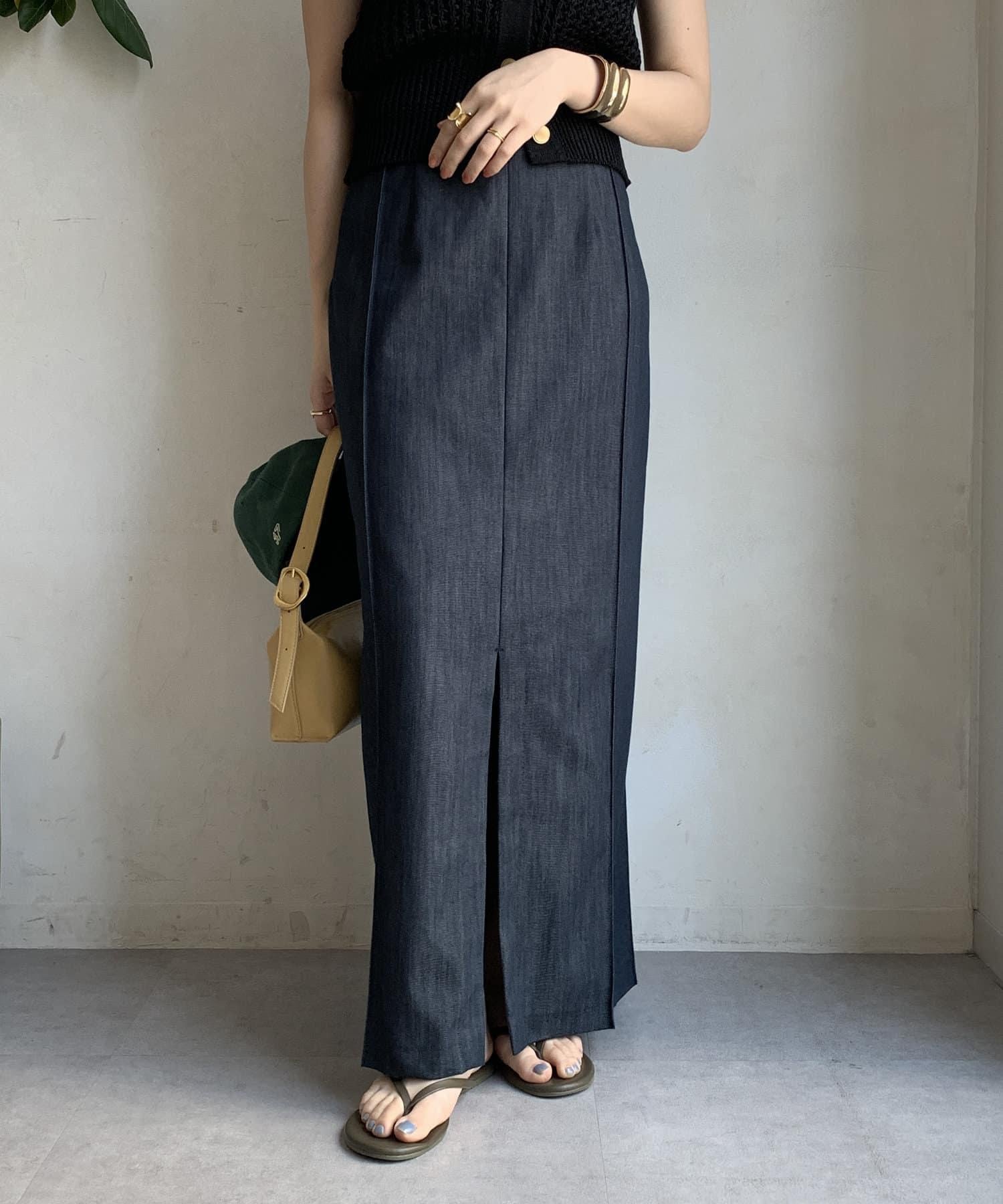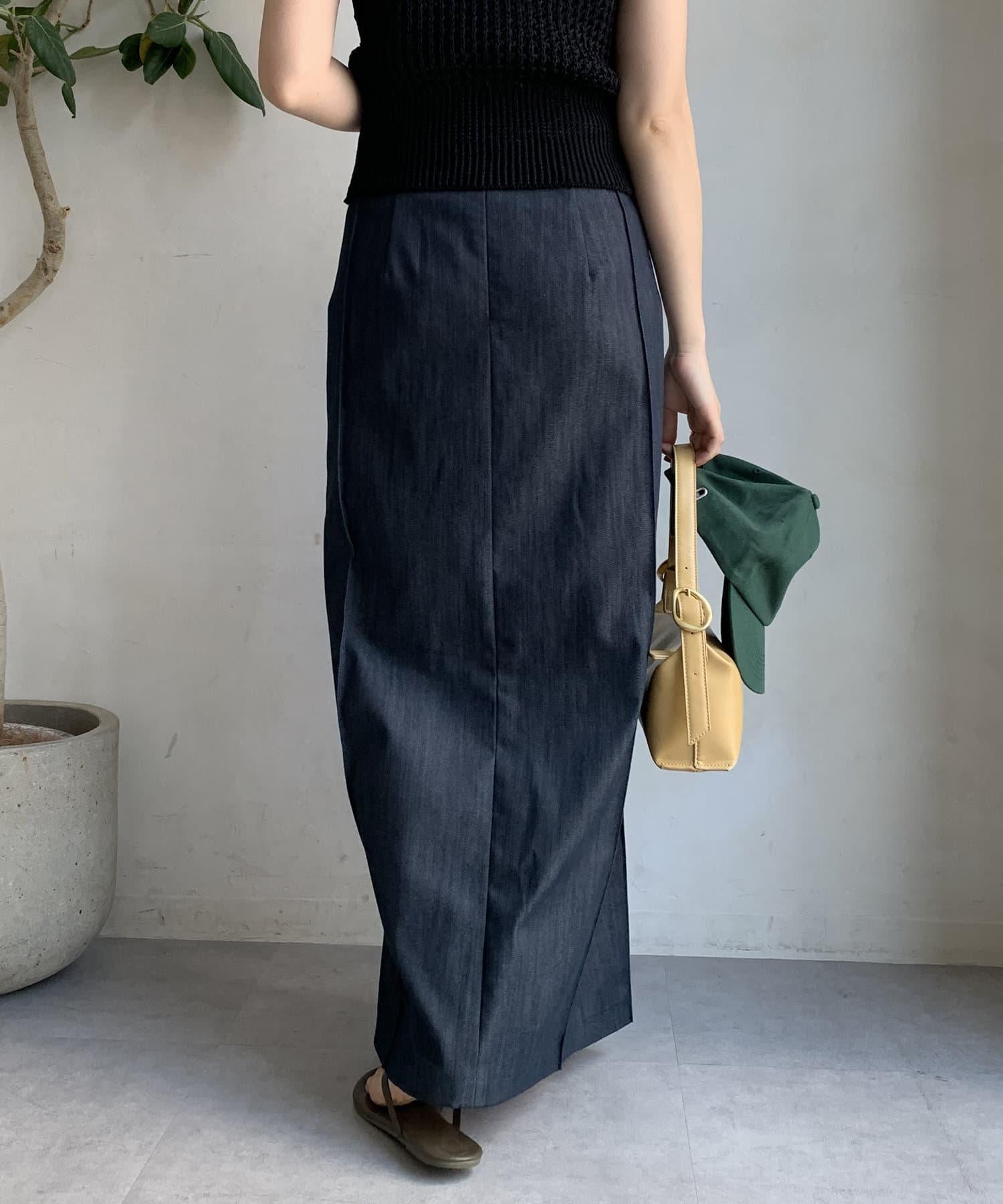Lyocell 牛仔方格針襉裙給人成熟優雅的印象。
