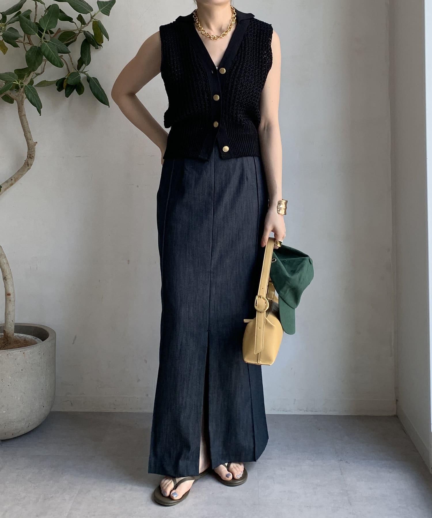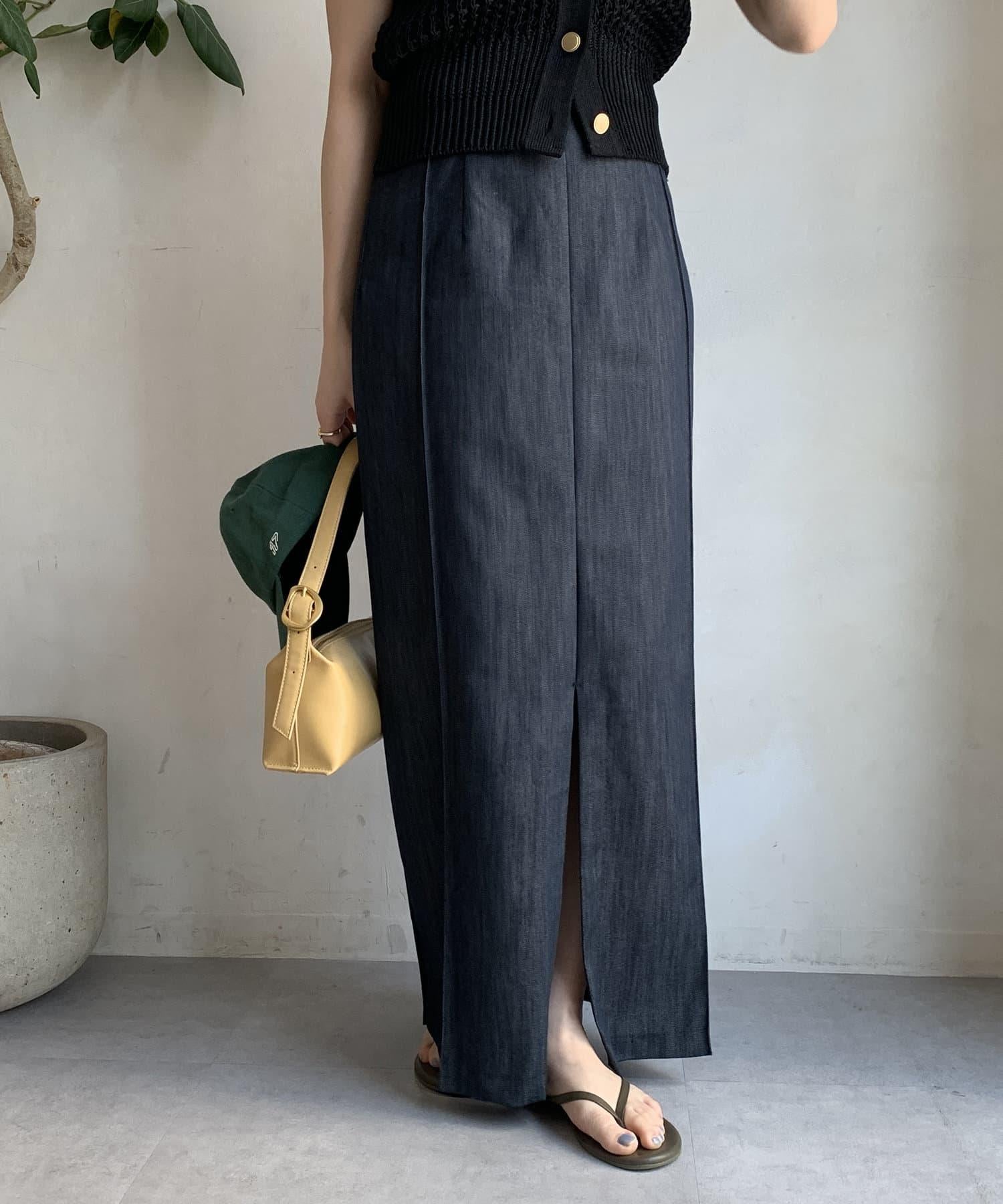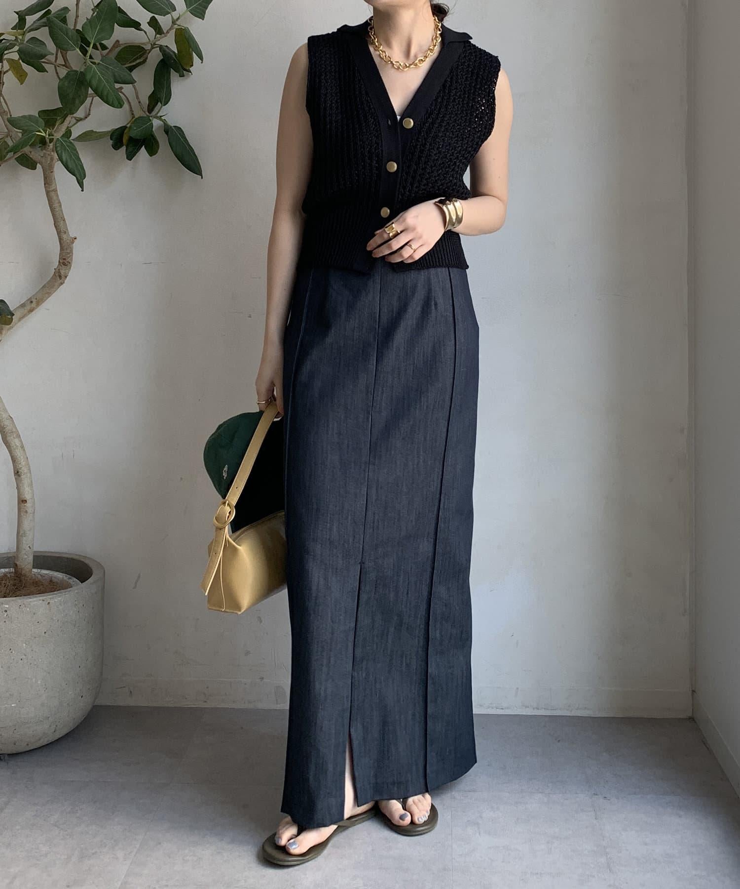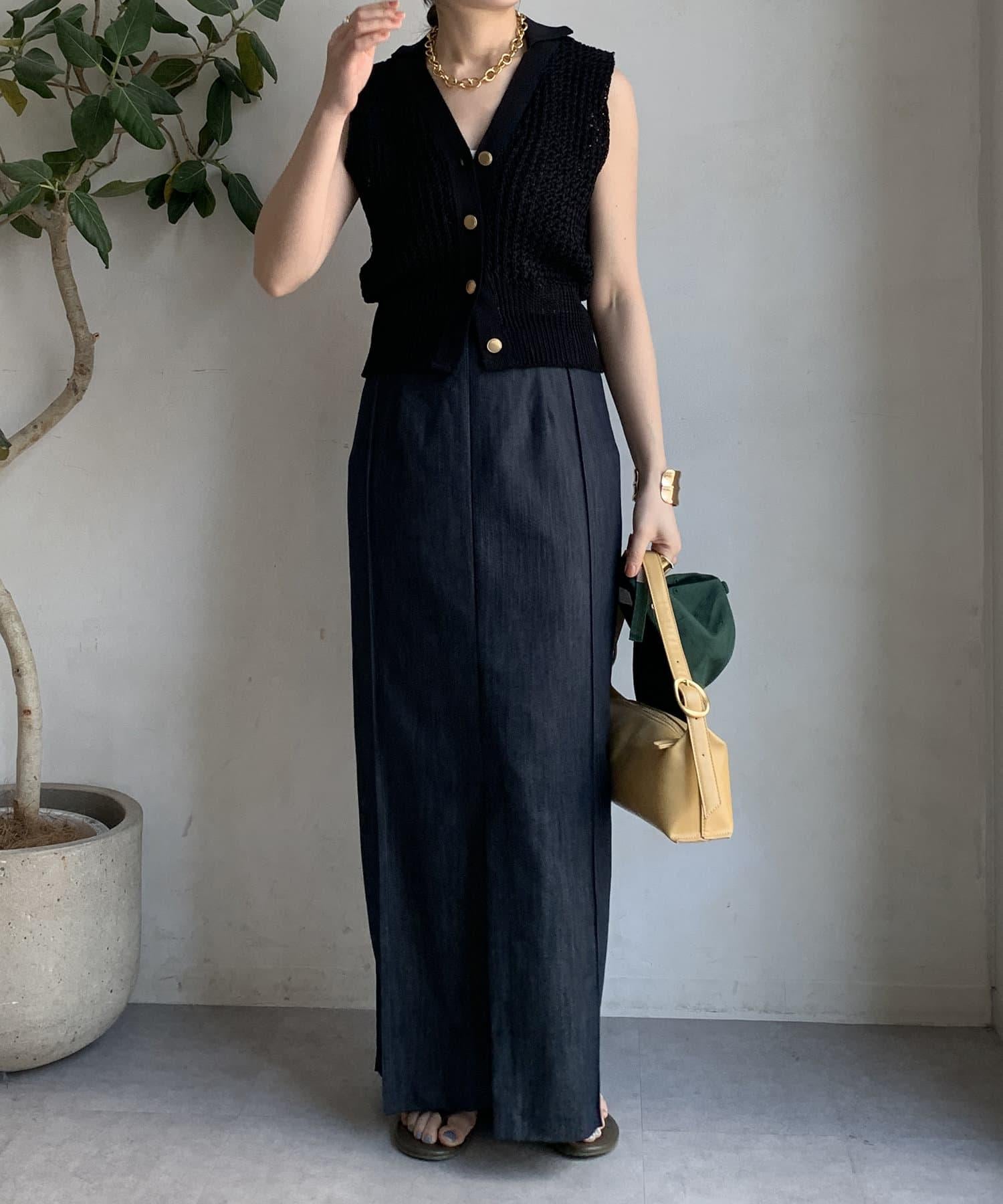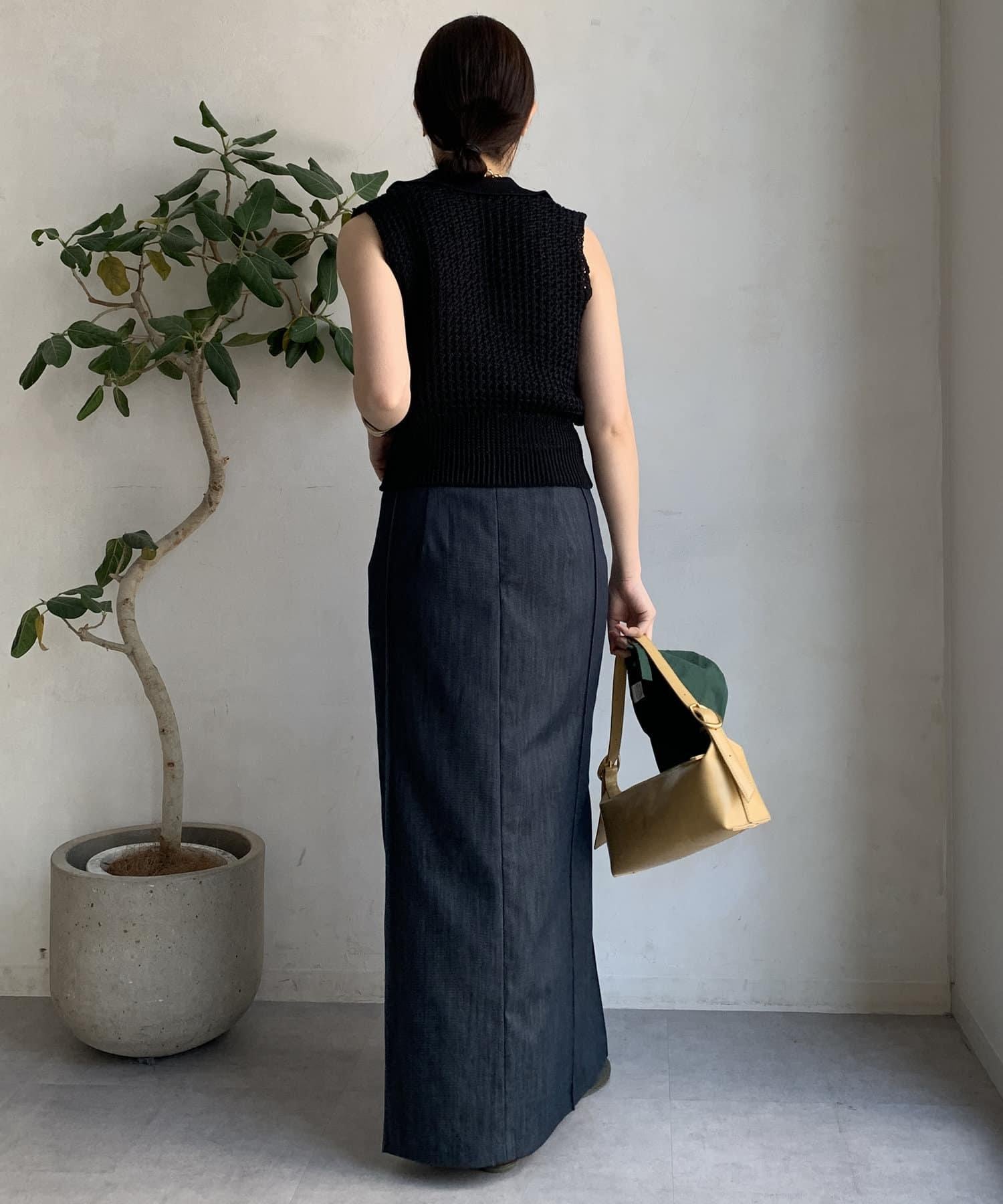 Lyocell 牛仔方格針襉裙給人成熟優雅的印象。