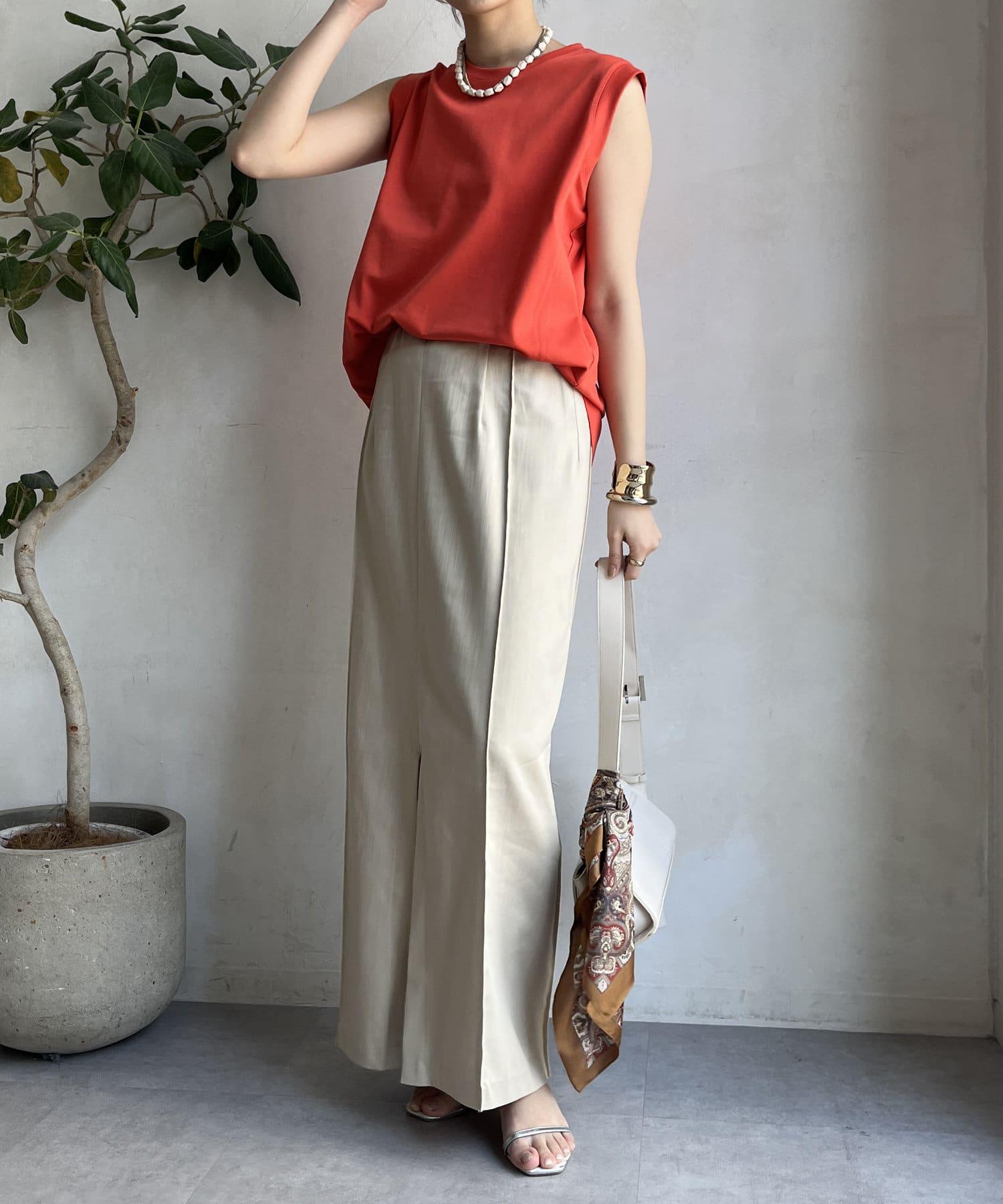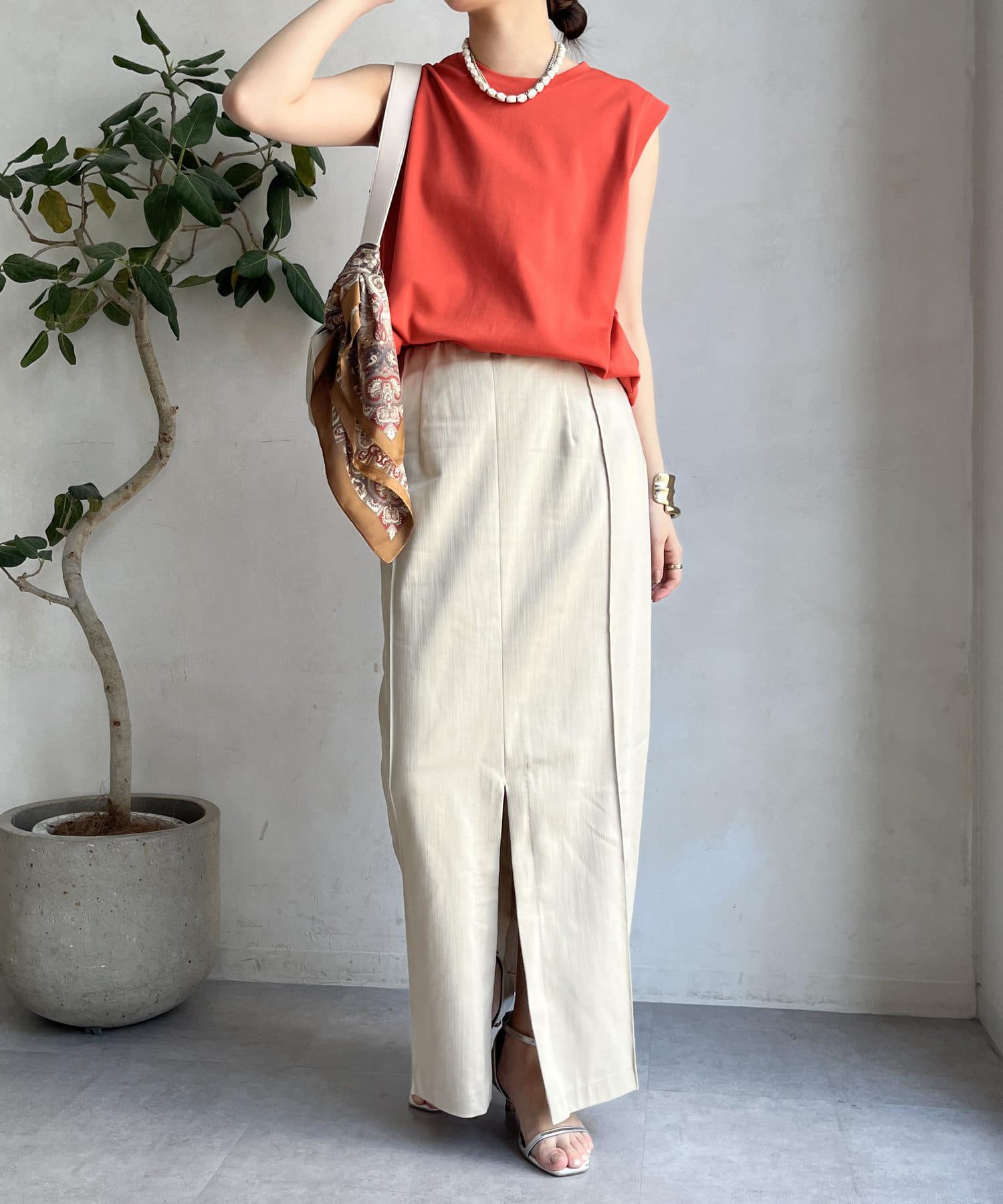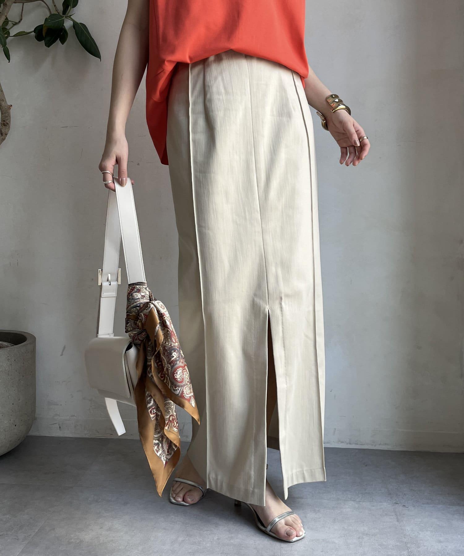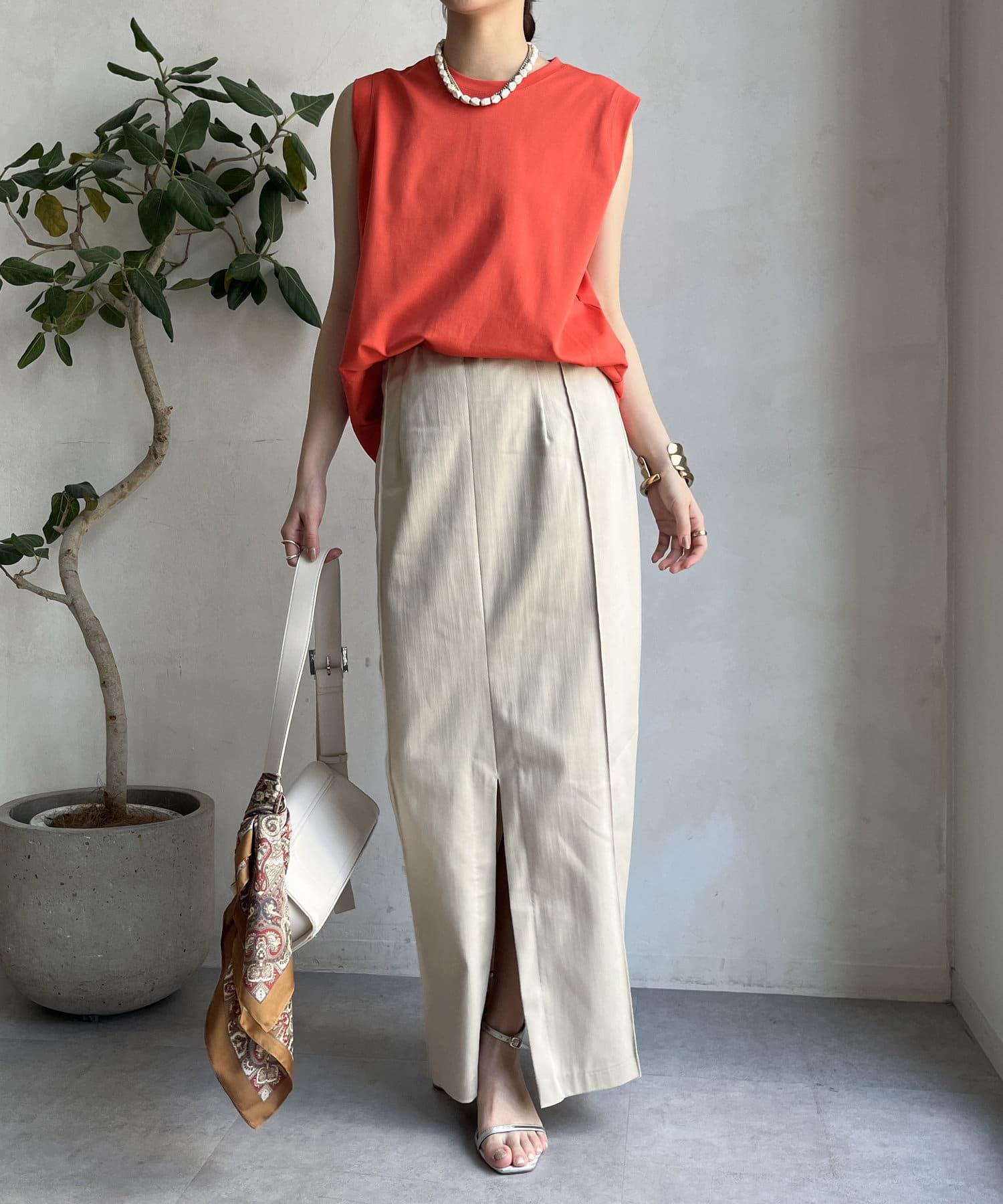 Lyocell 牛仔方格針襉裙給人成熟優雅的印象。