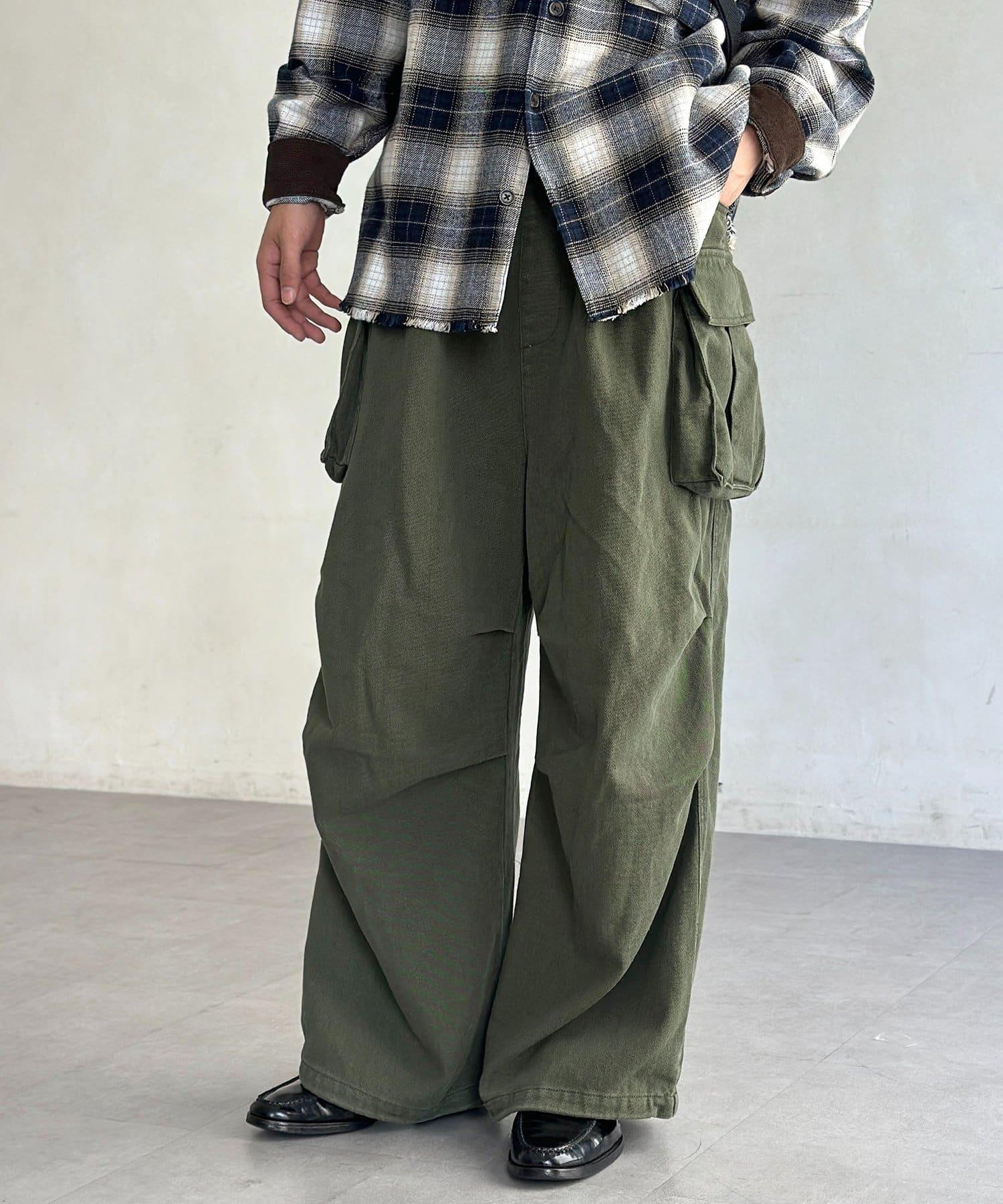 長褲的輪廓粗獷而精緻,靈感源自法國 M-47。