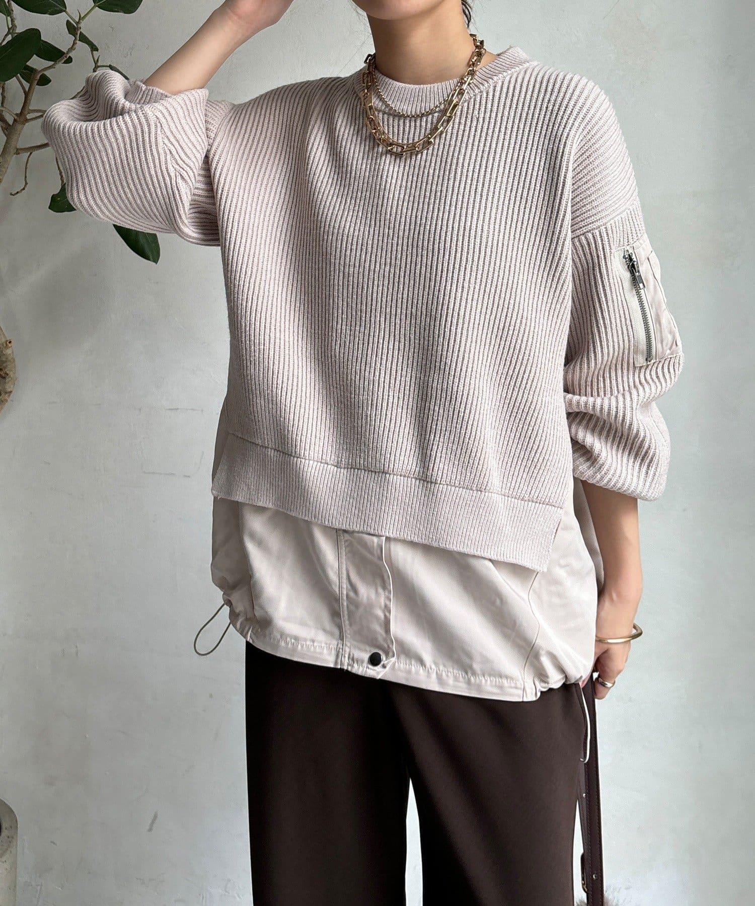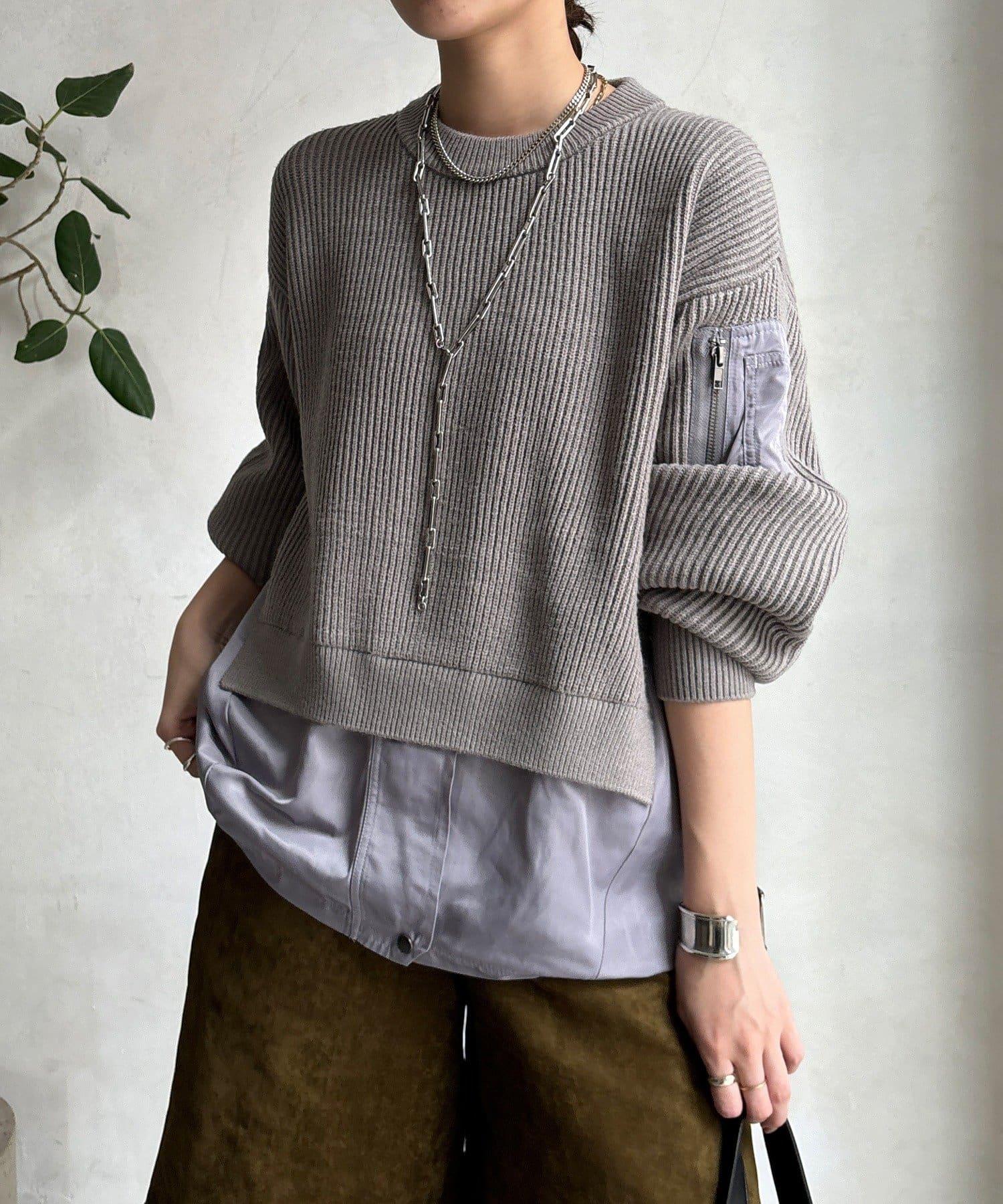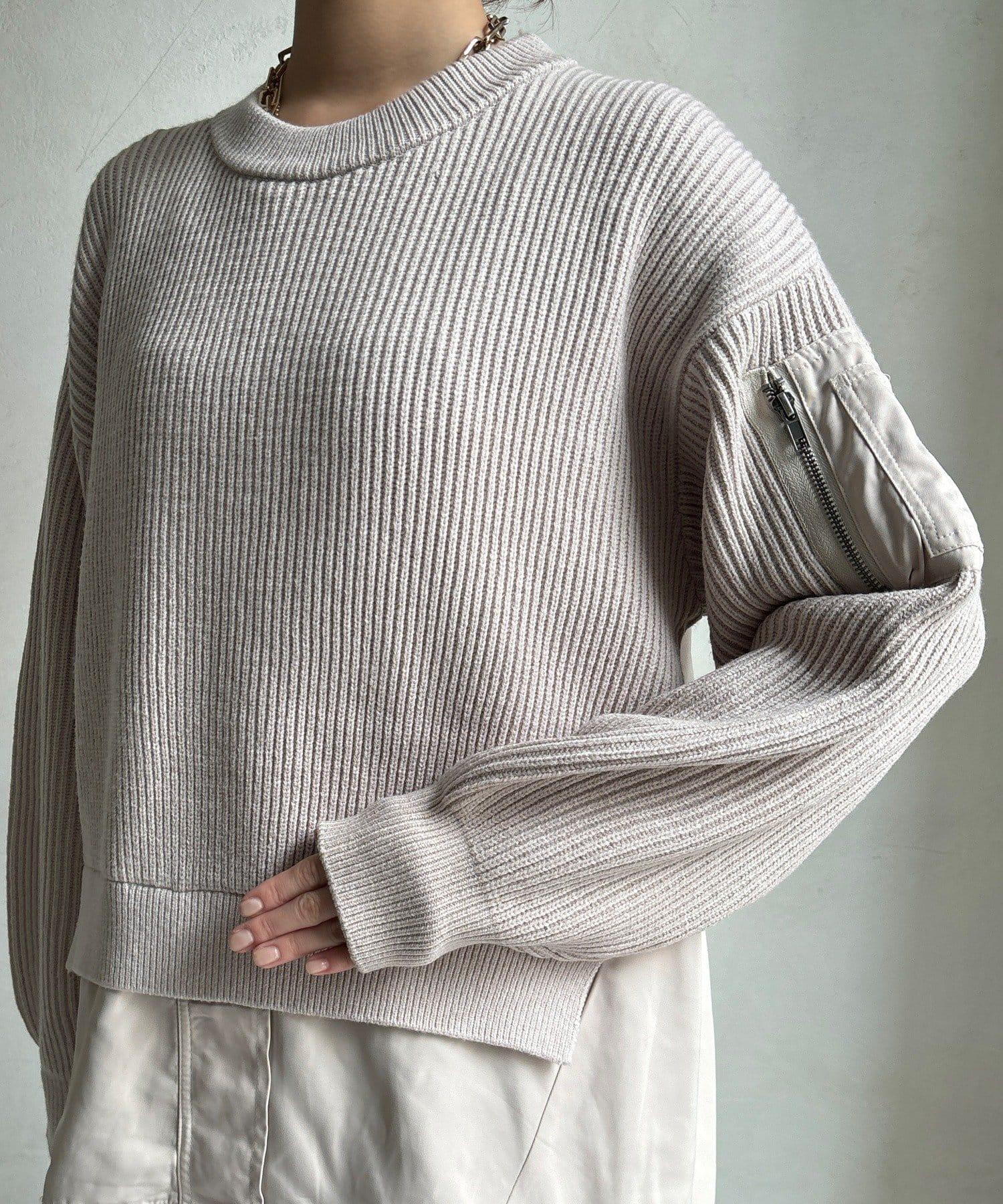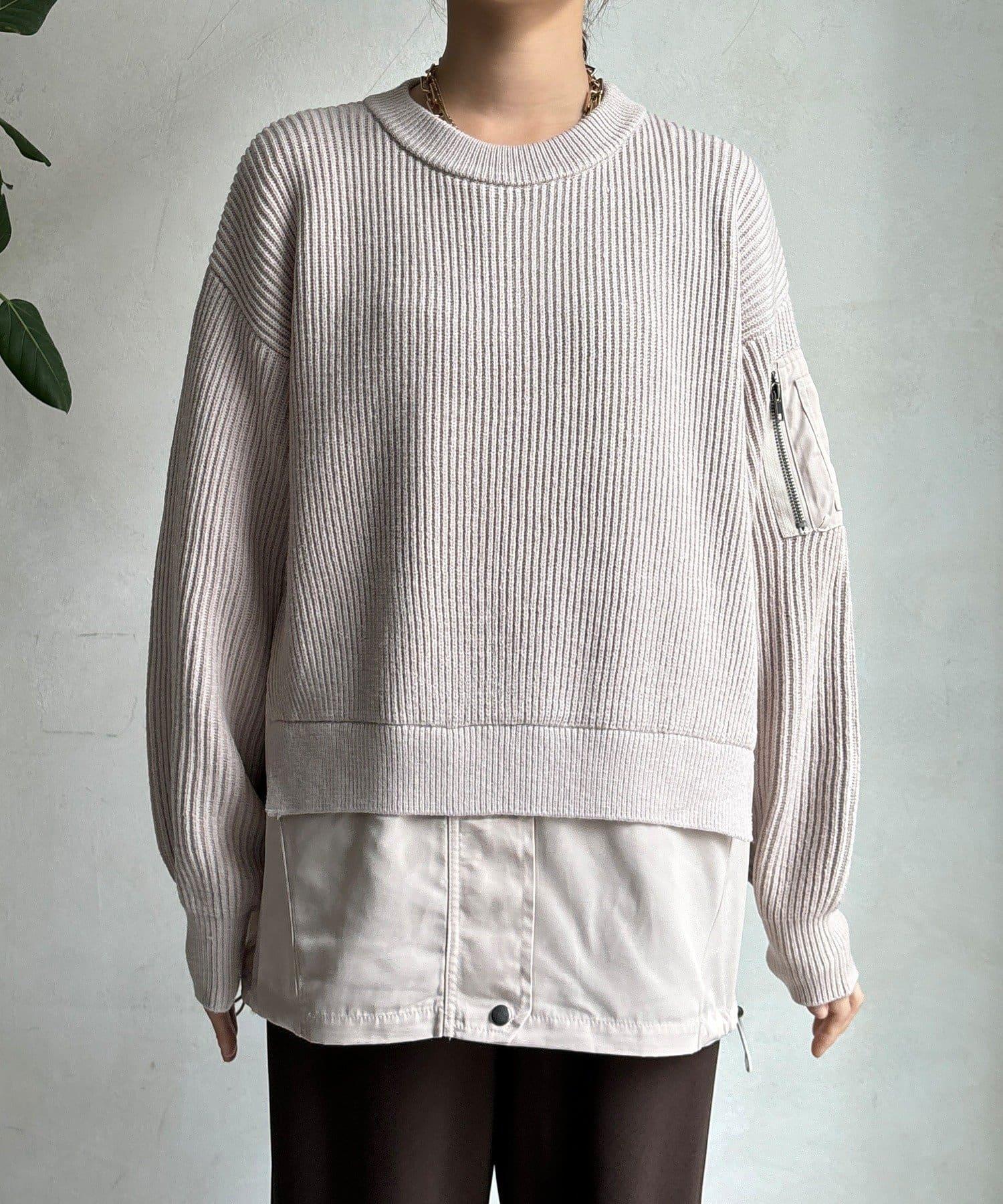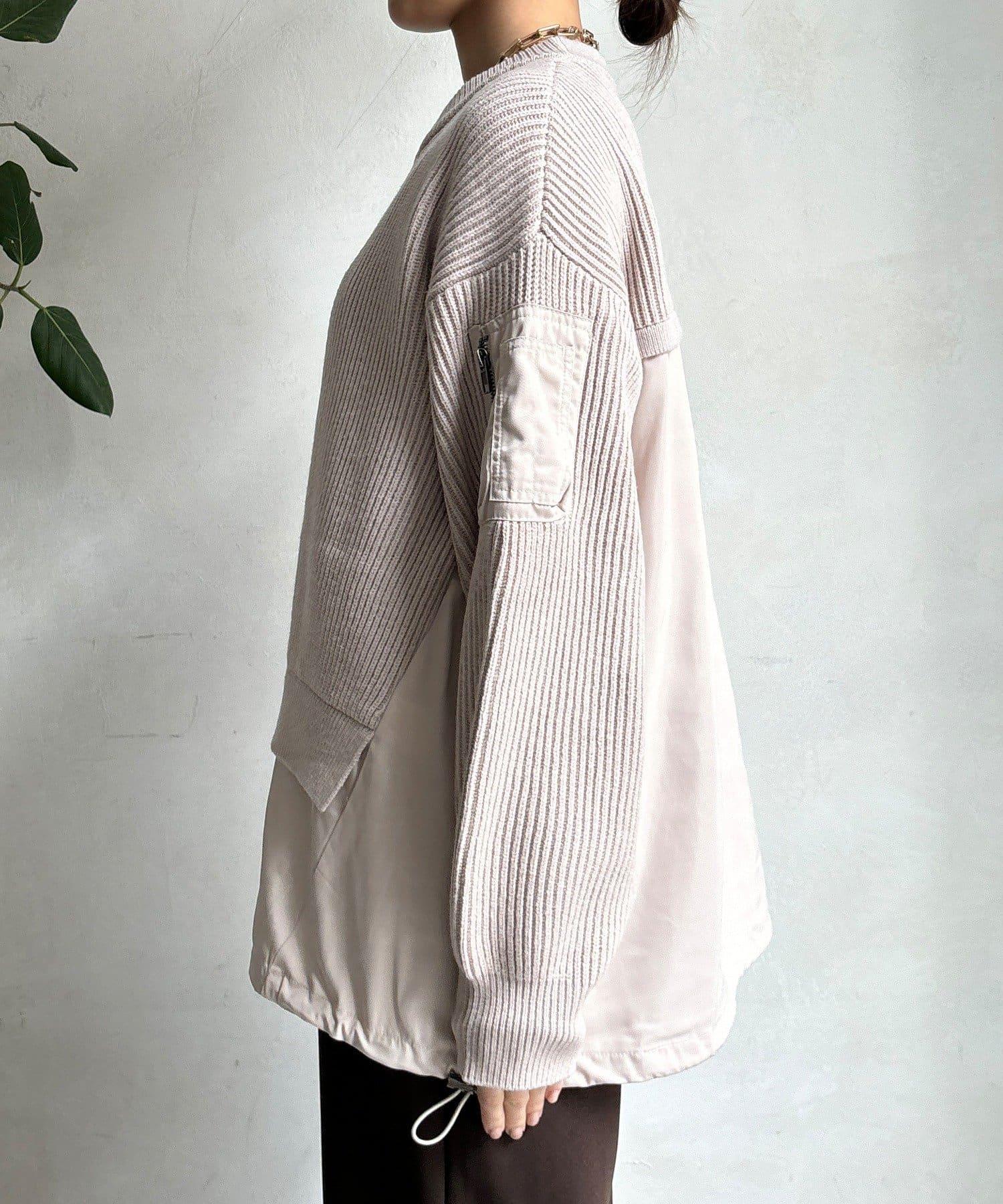 這款清新的套頭衫採用了針織和不同材質的組合,靈感來自 MA-1 夾克。