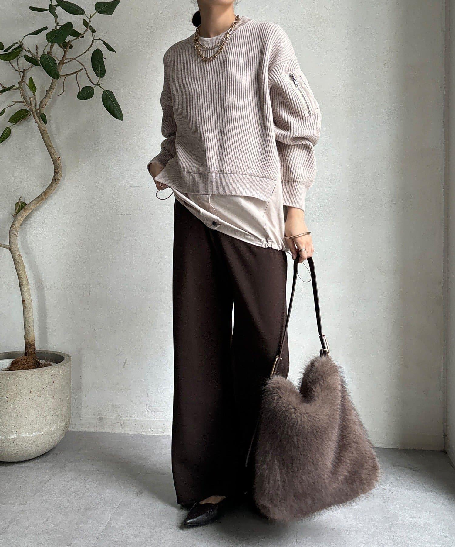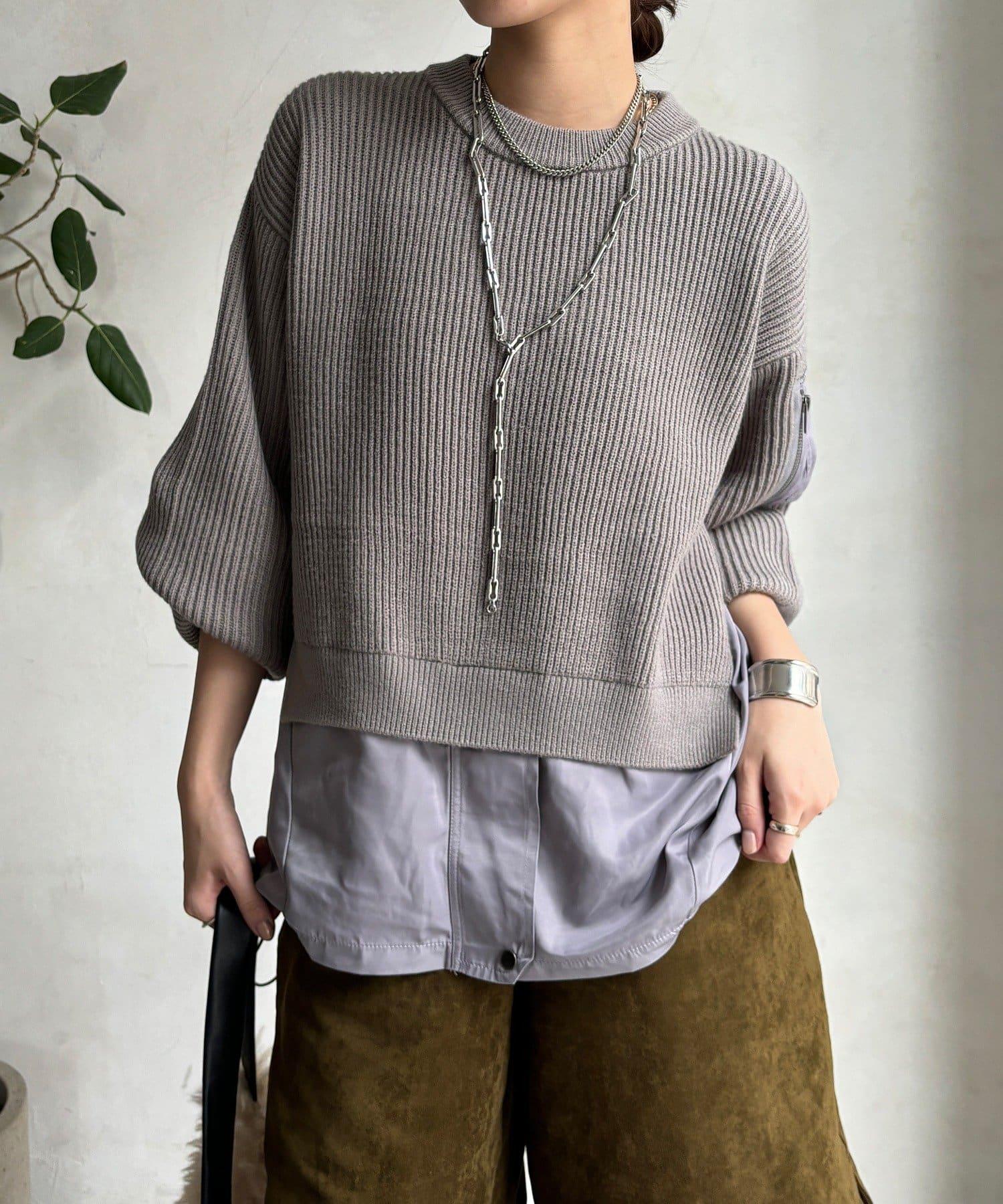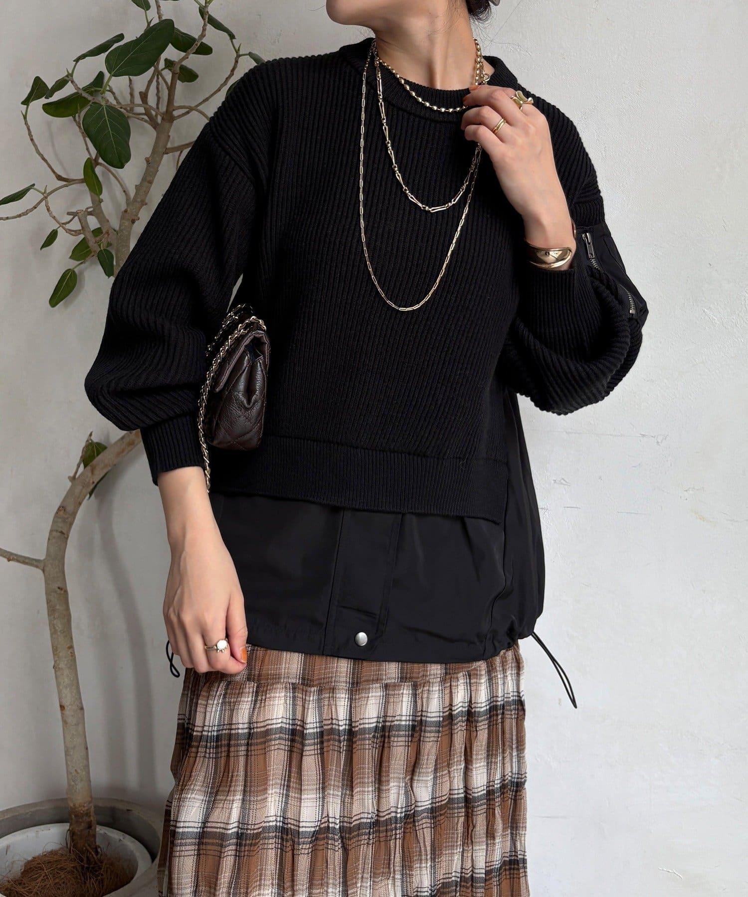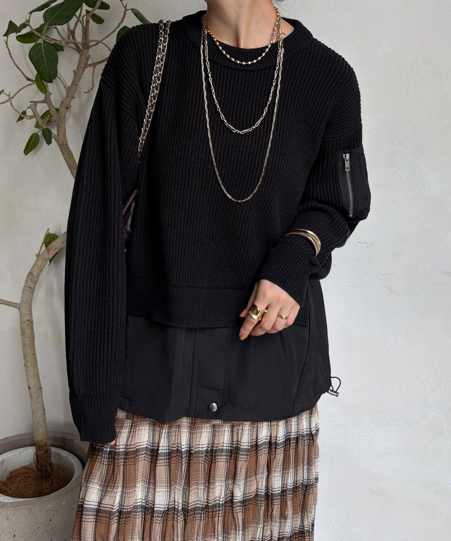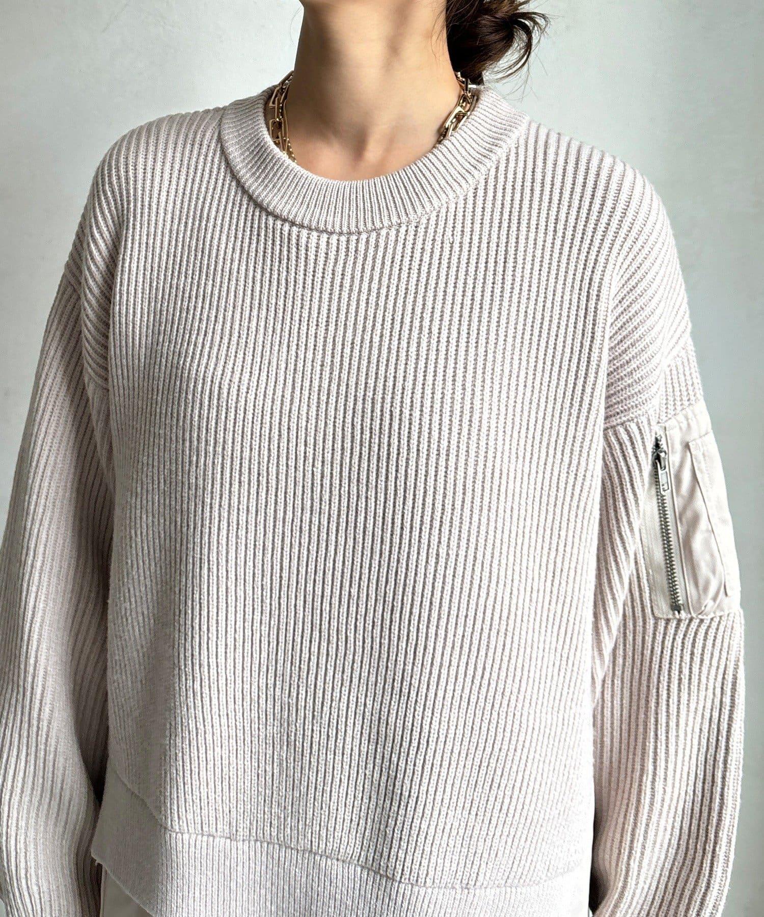 這款清新的套頭衫採用了針織和不同材質的組合,靈感來自 MA-1 夾克。