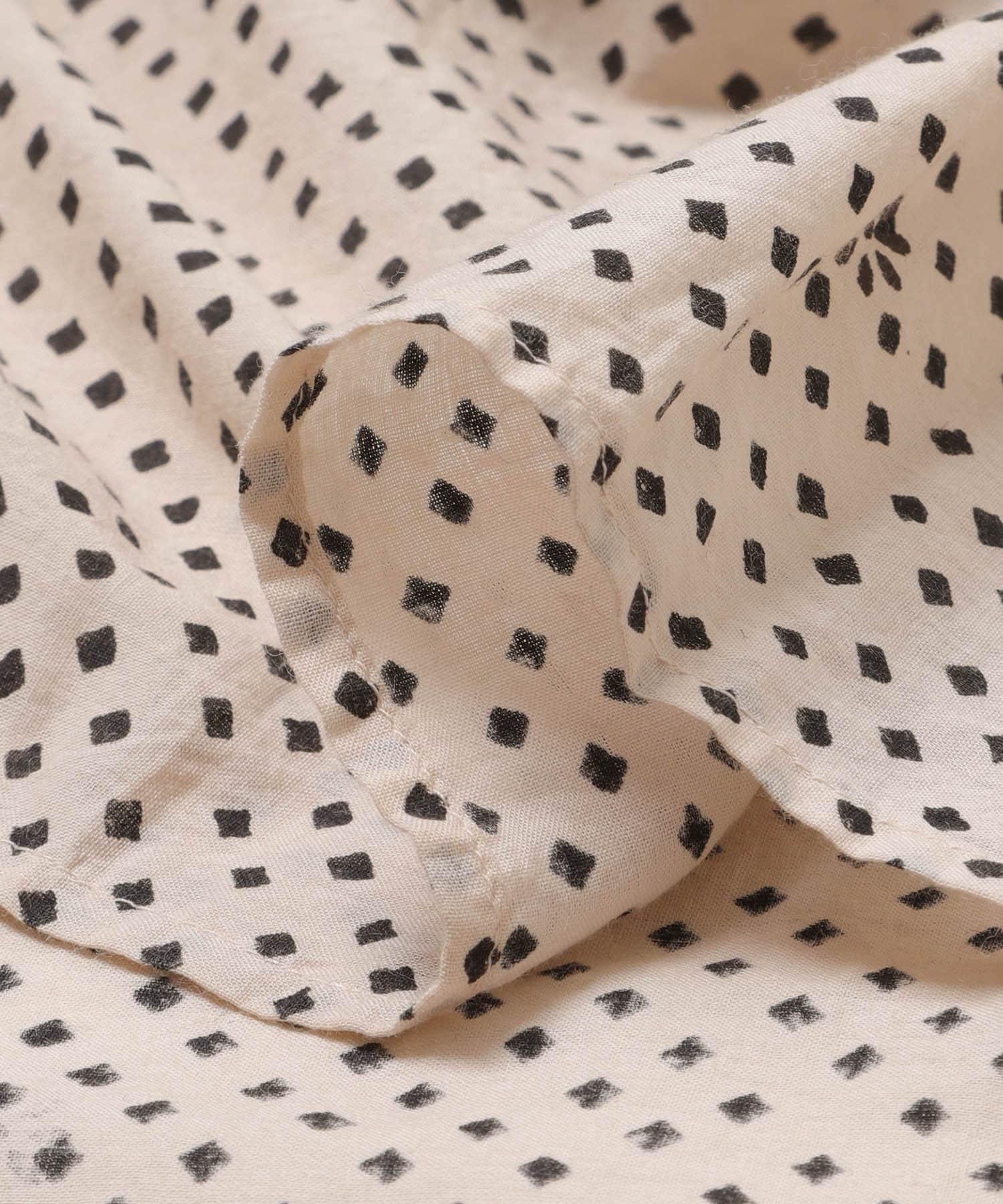 *本產品採用印度傳統印花方法,在手工雕刻的木塊上一次印製一個圖案和顏色。可以看到重疊的印花、小幅飛濺的染料和留白,這些都是手工印花的特點。請盡情享受手工印花特有的豐富色彩表現力。