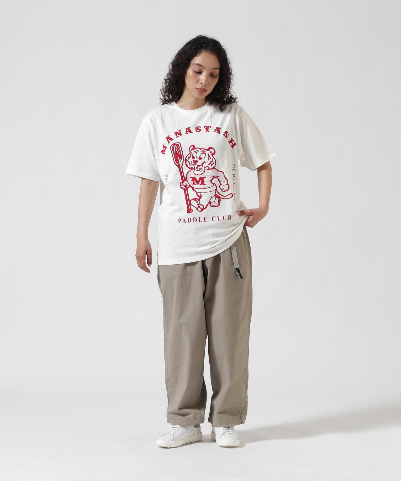 MANASTASH/HEMP TEE MPC/Hemp T-shirt・All season MANASTASH T-shirt material of 55% HEMP and 45% cotton・Hemp 具有天然的抗菌和除臭效果,由於纖維上有許多小孔,因此具有出色的吸溼和吸汗性能。獨創的麻混紡面料,特別注重舒適度、質感和強度,適合戶外穿著。圖案靈感來源於虛構的獨木舟隊[MANASTASH PADDLE CLUB]的連帽衫,採用了廣受歡迎的 MANASTASH 動物形象 - 圖案 = [LAIDBUG (