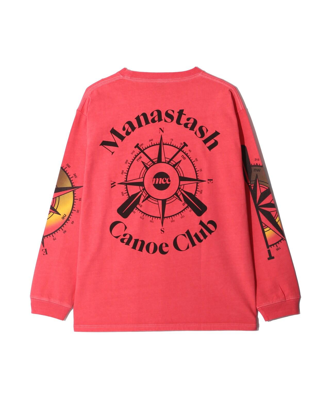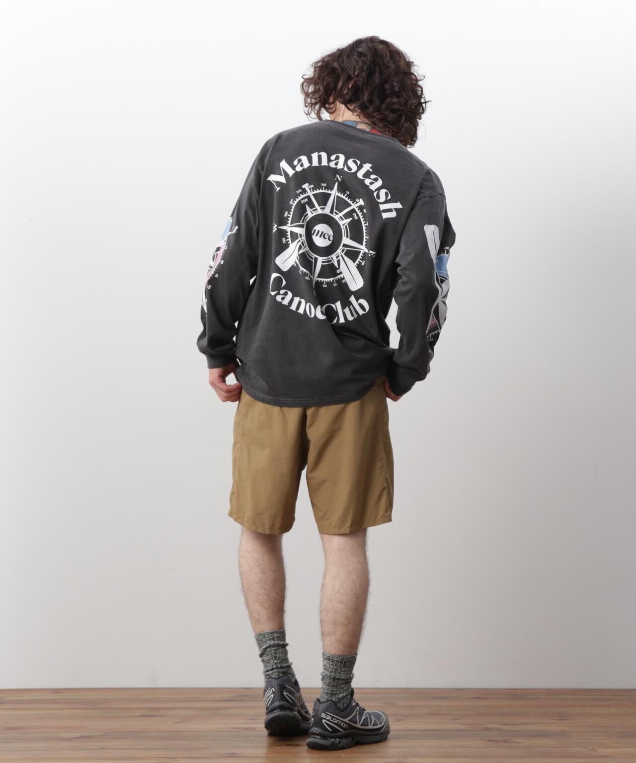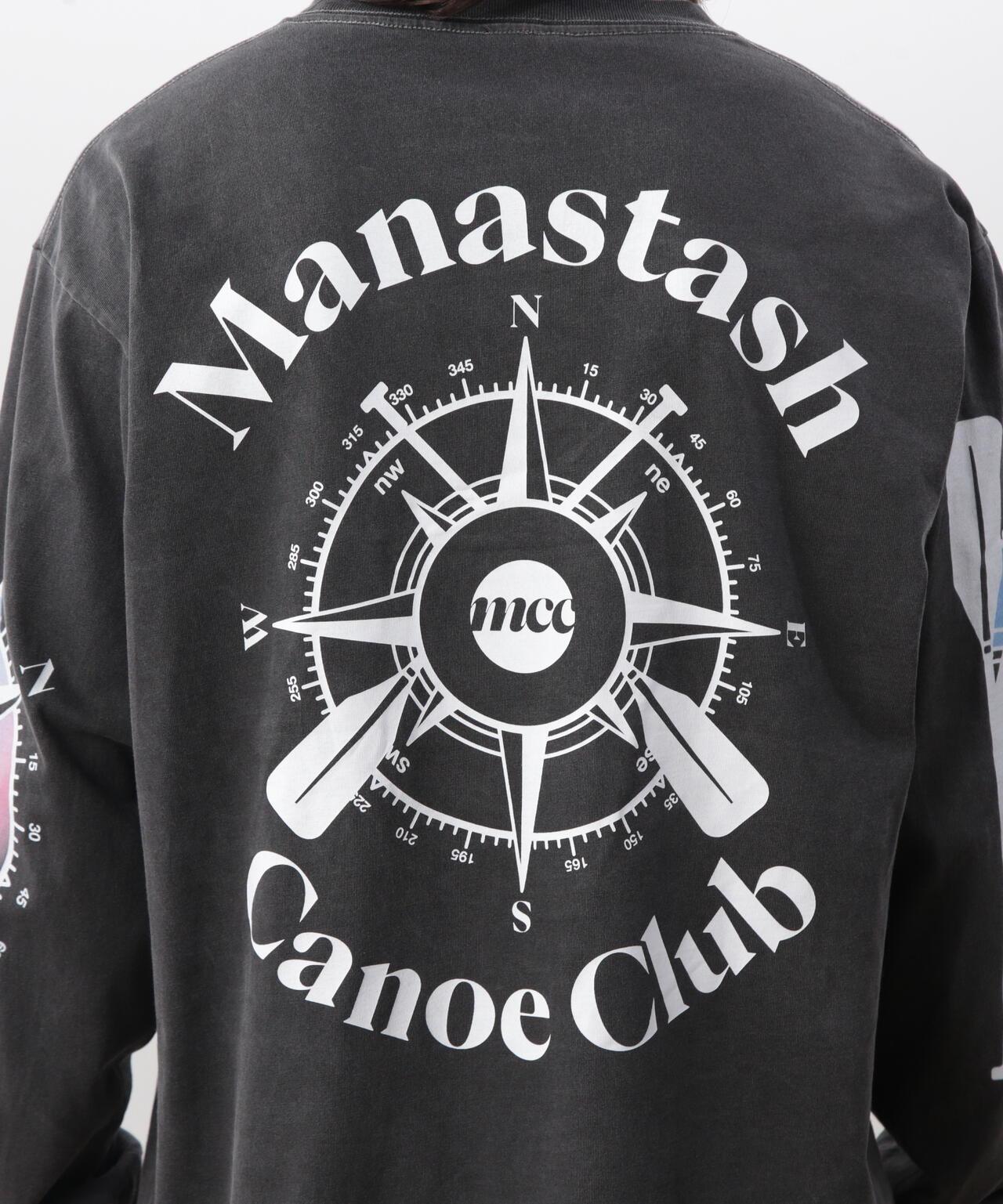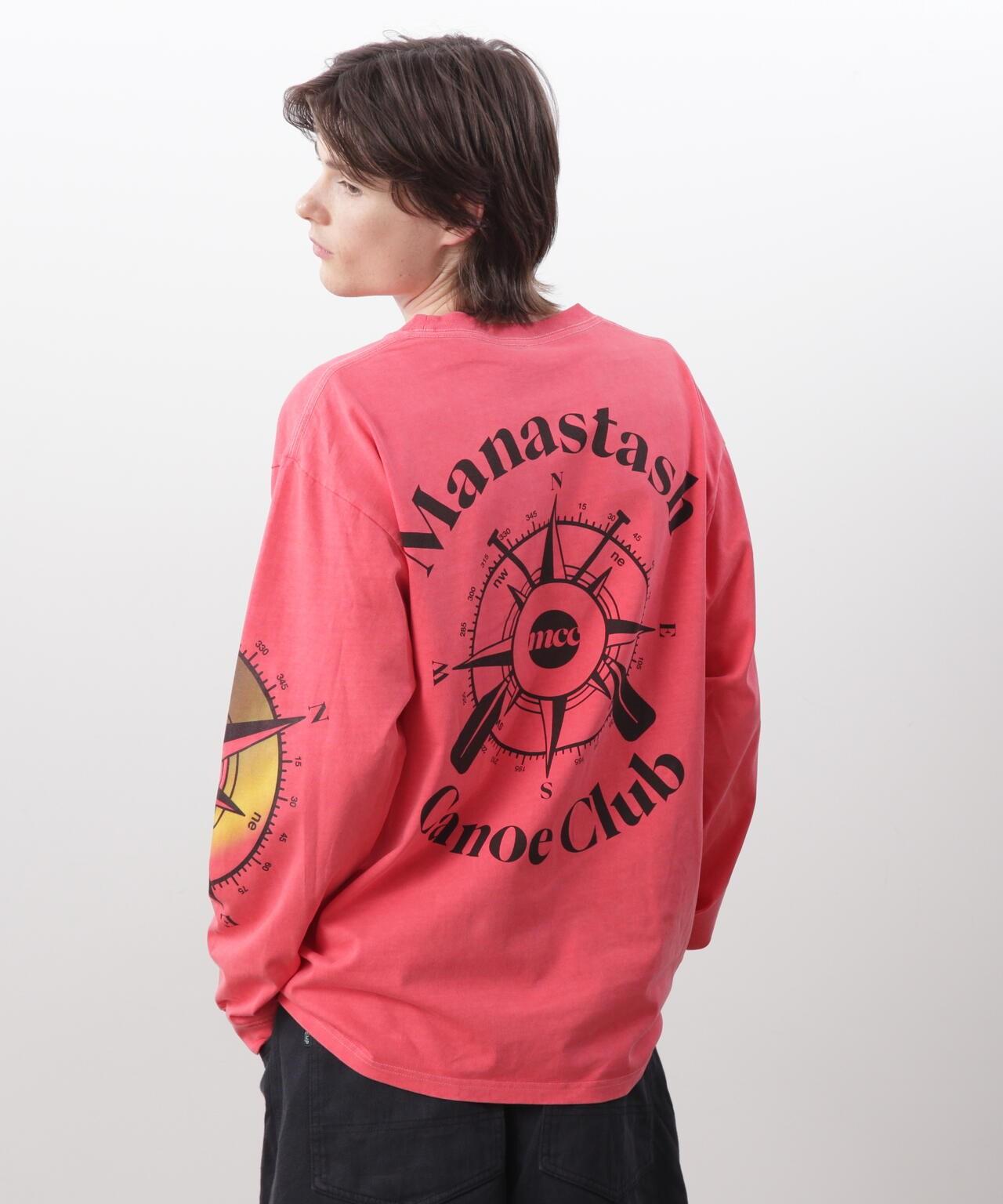 MANASTASH / MANASTASH / PUMICE L/S TEE MCC / 長 T,重磅度數填充棉 T 恤,顏料染色,使用和完成幹觸感,復古外觀和手感,精心規格的 T 恤,虛構的獨木舟俱樂部 [MANASTASHMANASTASH CANOE CLUB] T 恤,身體圖案。採用漸變印花的豪華規格和圖案 = [Shingo Mizutani (Mizutani&Co., Ltd.)]MANASTASH MANASTASH 於 1993 年在美國西雅圖創立。品牌名稱取自北美大陸西海岸自北向南延伸的卡斯卡特山脈(Cascade Mountains)。